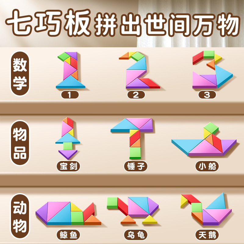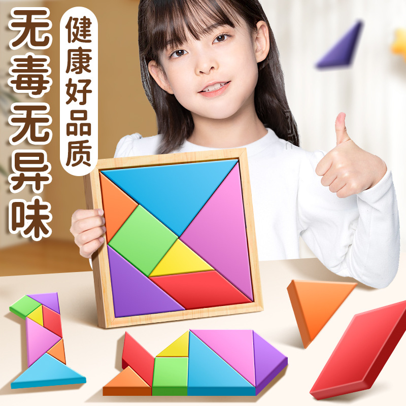 어린이 Tangram 장난감 다채로운 건물 블록 다양한 모양 기하학적 일치 크기 학생 1 학년 가르치는 원조 나무스토어 가기