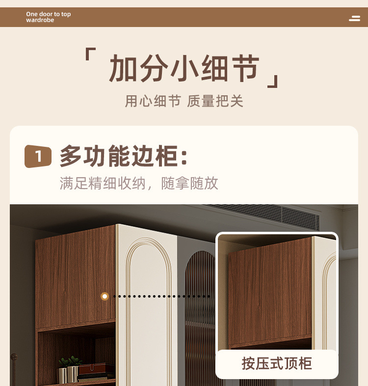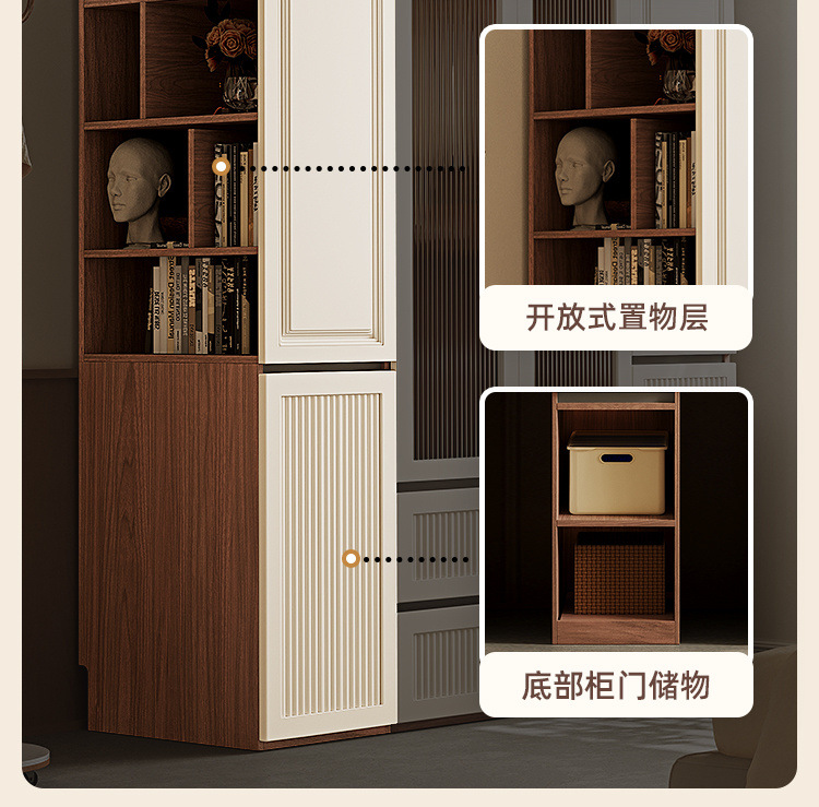 옷장 세그먼트 도어 투 탑 핸즈리스 중간 스타일 침실 보관 캐비닛 가정용 보관 옷장스토어 가기