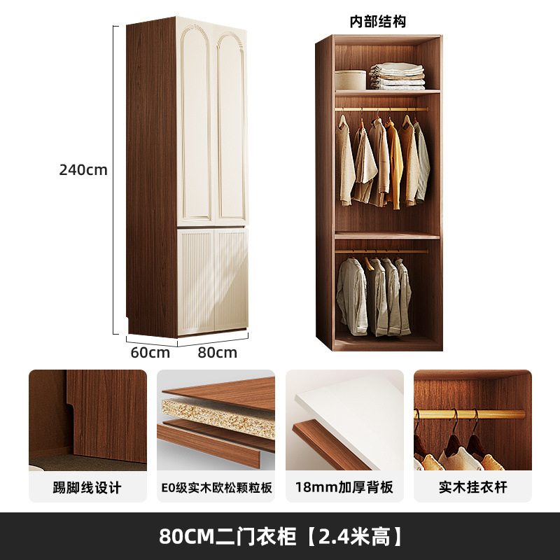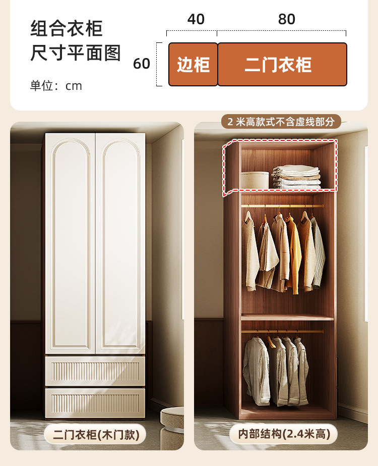 옷장 세그먼트 도어 투 탑 핸즈리스 중간 스타일 침실 보관 캐비닛 가정용 보관 옷장