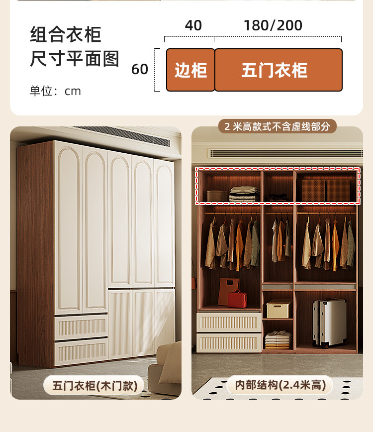 • 유리 모델 2.4m 높이-200CM 5도어 옷장
