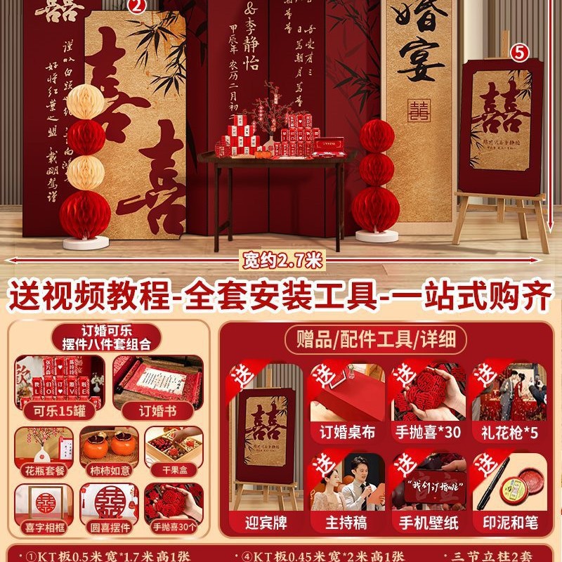 • 【⭐2.2M 키가 큰 장면】결혼식 연회 K5⭐걱정 없는 완전한 세트 - 콜라 웰컴 카드⭐꽃꽂이 풀세트