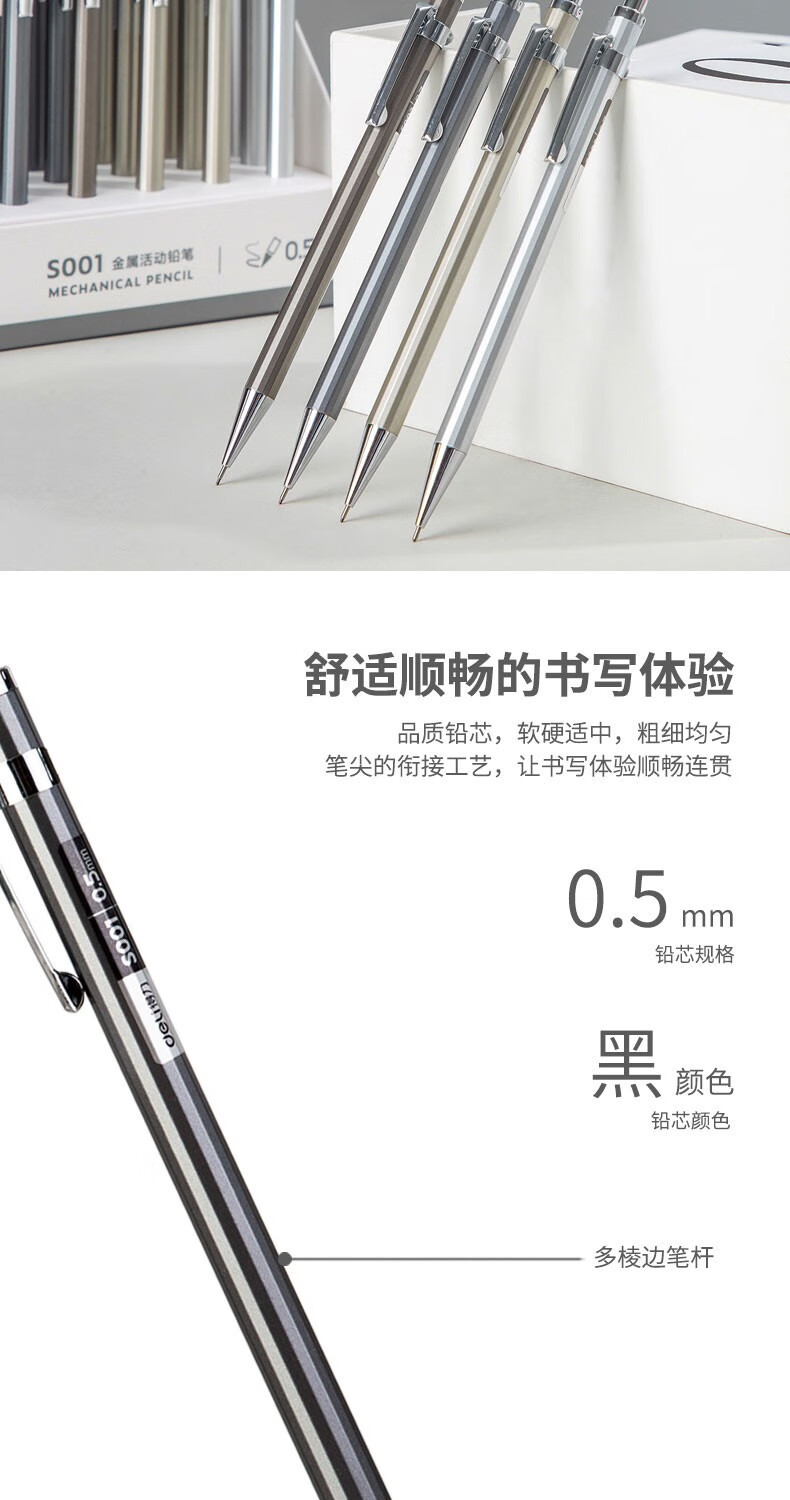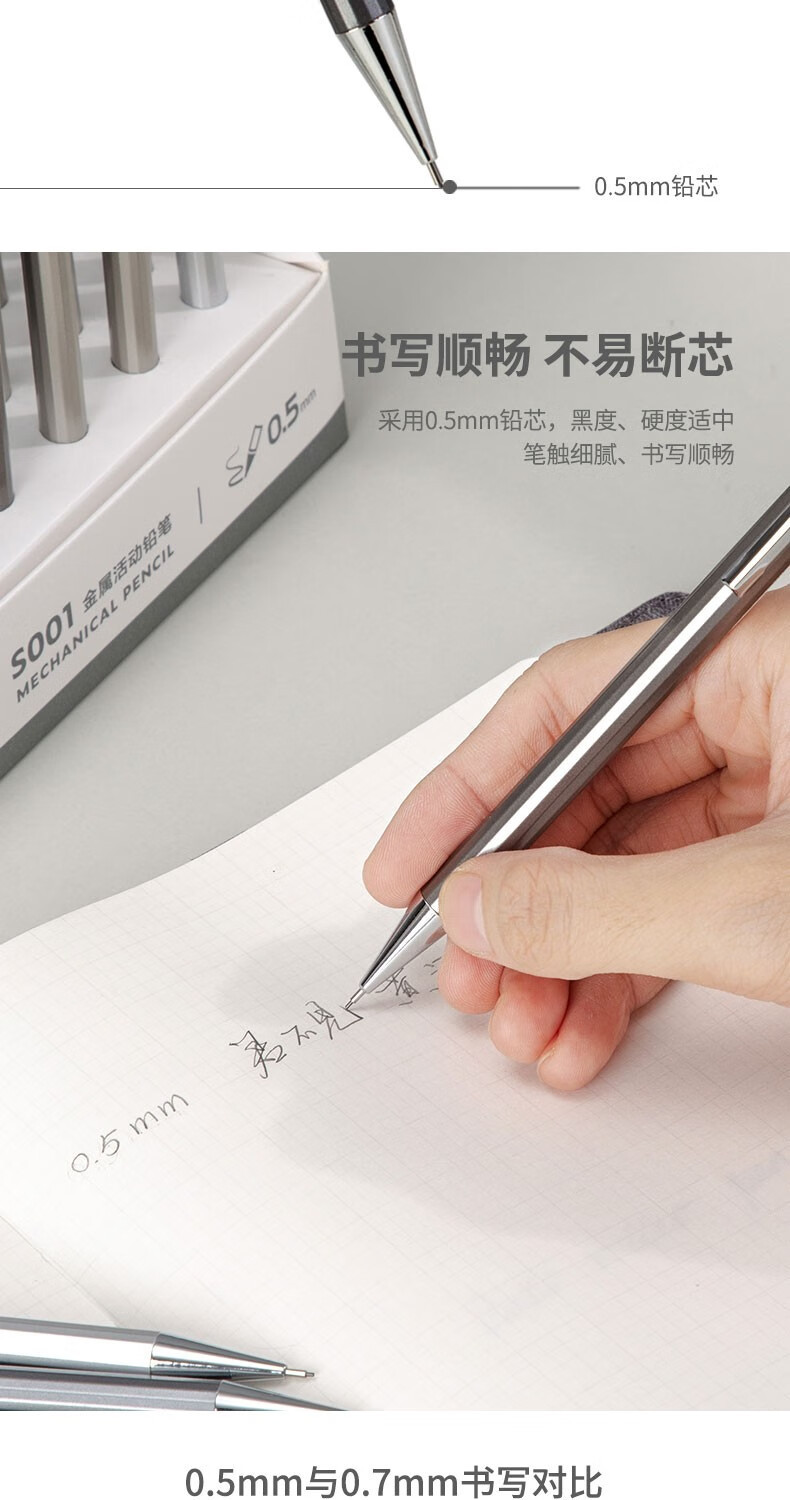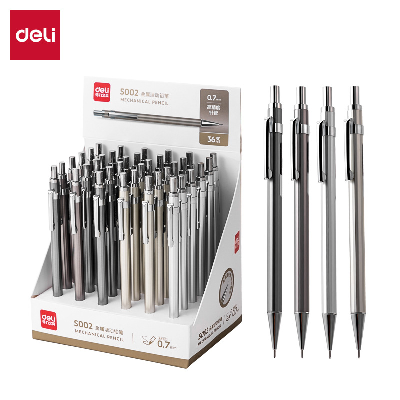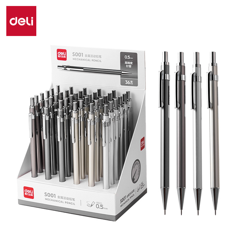 델리 메탈 샤프 펜슬 S001/S002 0.5/0.7mm 26개/박스 학생용 연필 드롭 배송