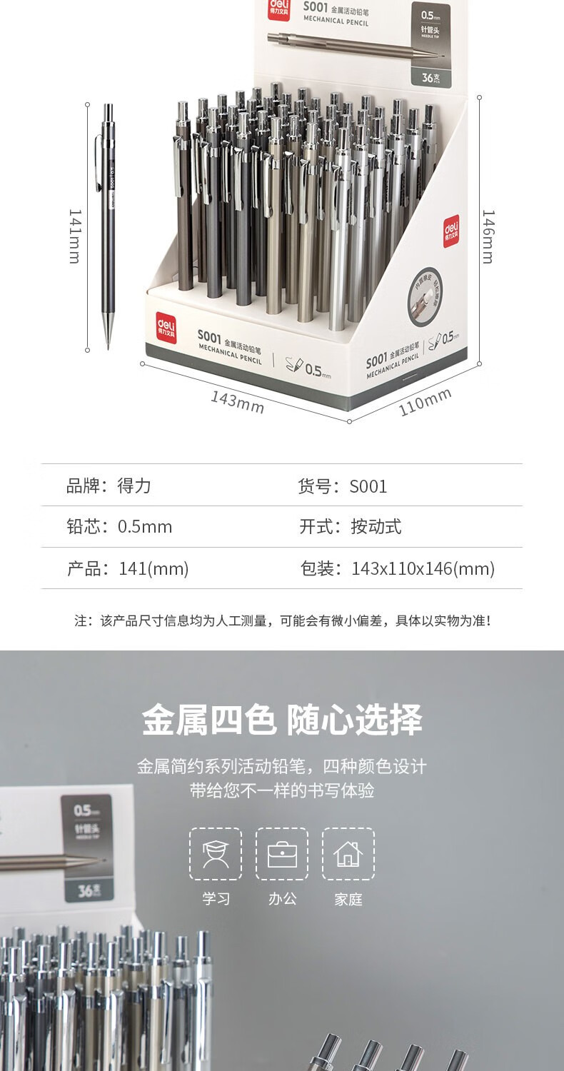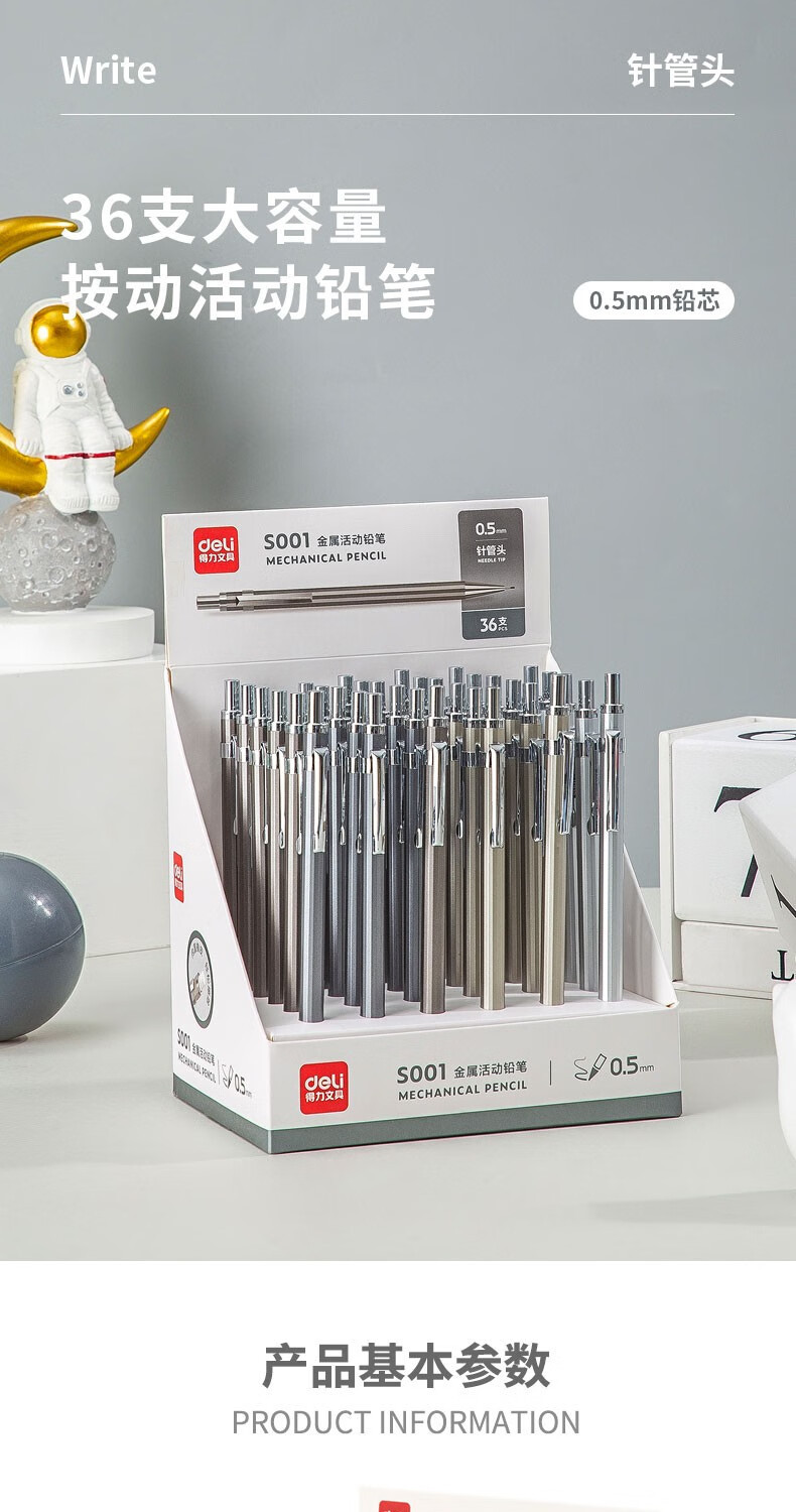 델리 메탈 샤프 펜슬 S001/S002 0.5/0.7mm 26개/박스 학생용 연필 드롭 배송스토어 가기