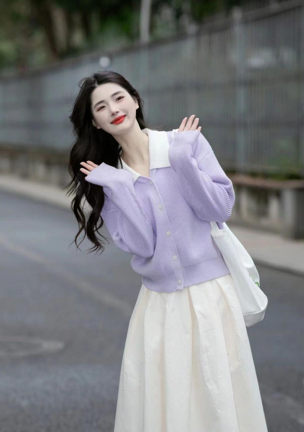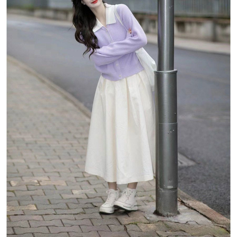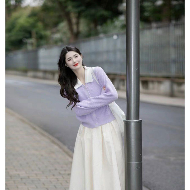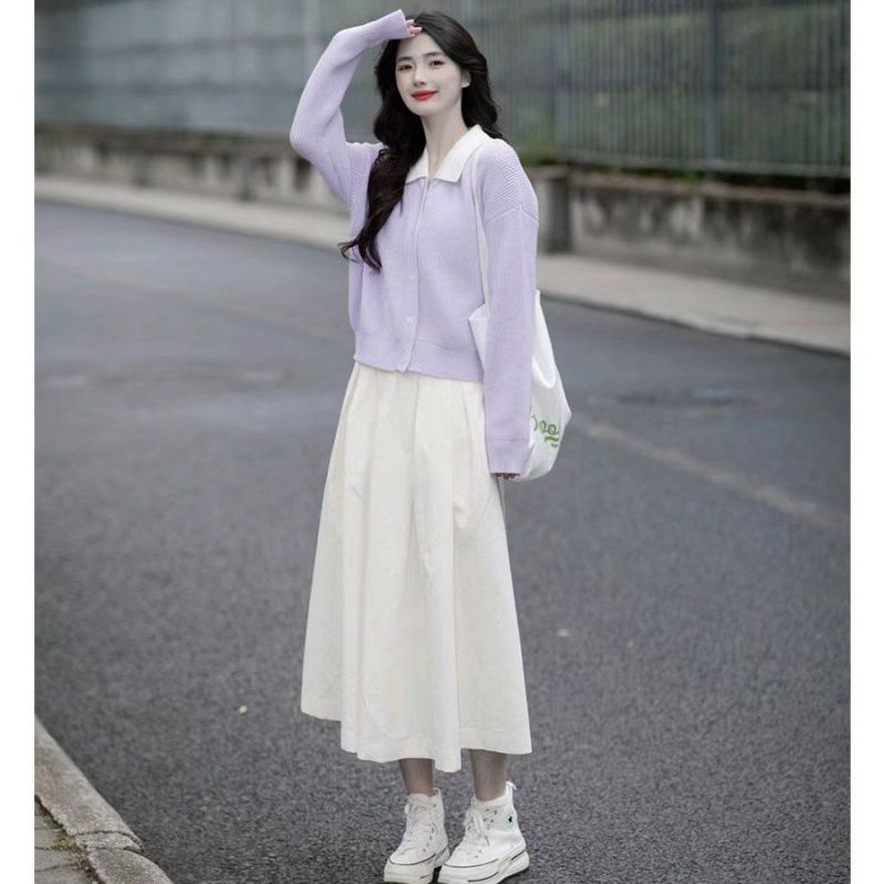 작은 봄과 가을 2025 한국 스타일의 새로운 세트 연령 감소 고급 부드러운 스웨터 투피스 원피스스토어 가기