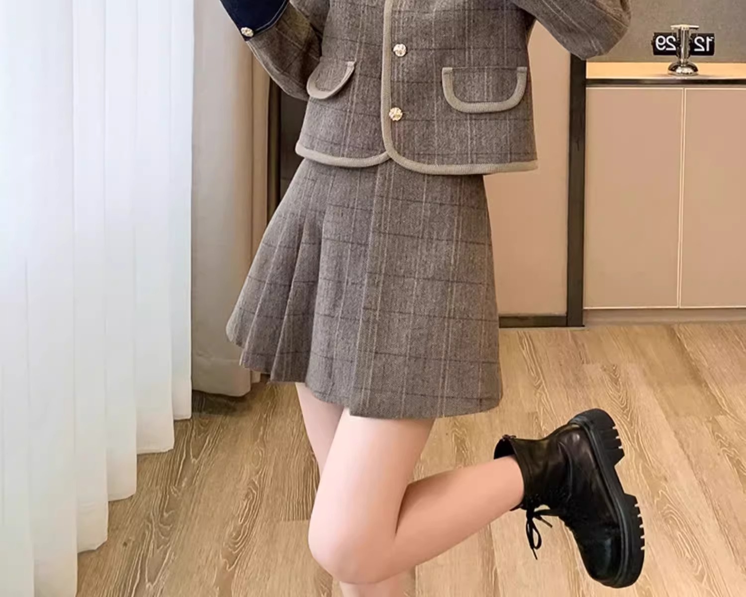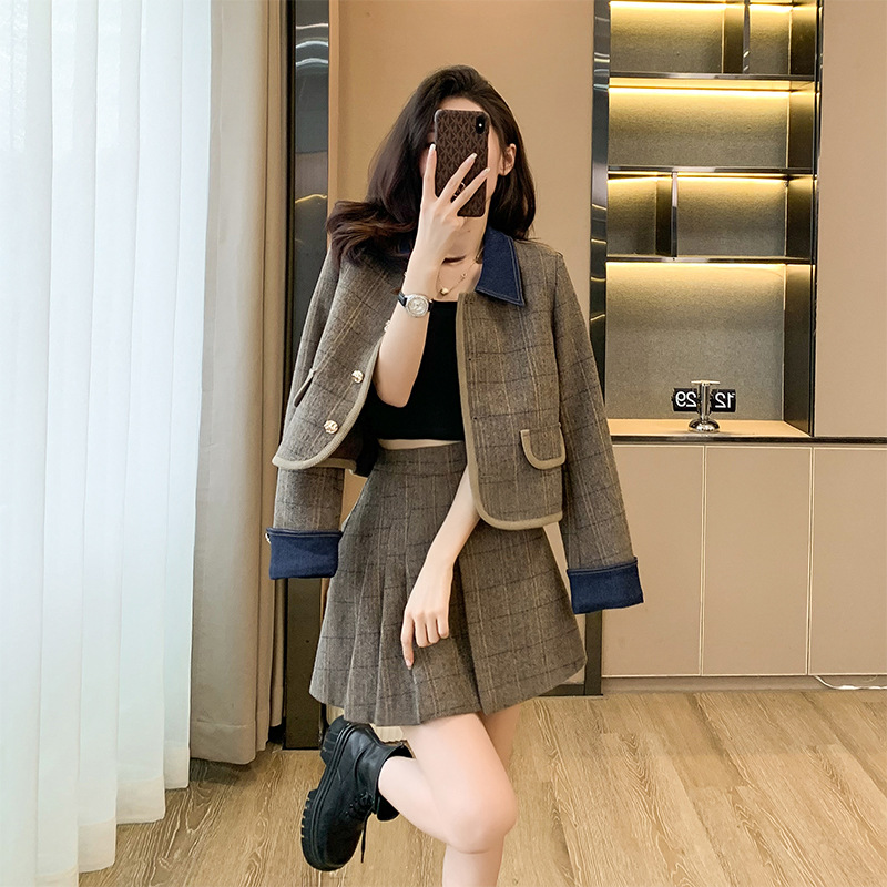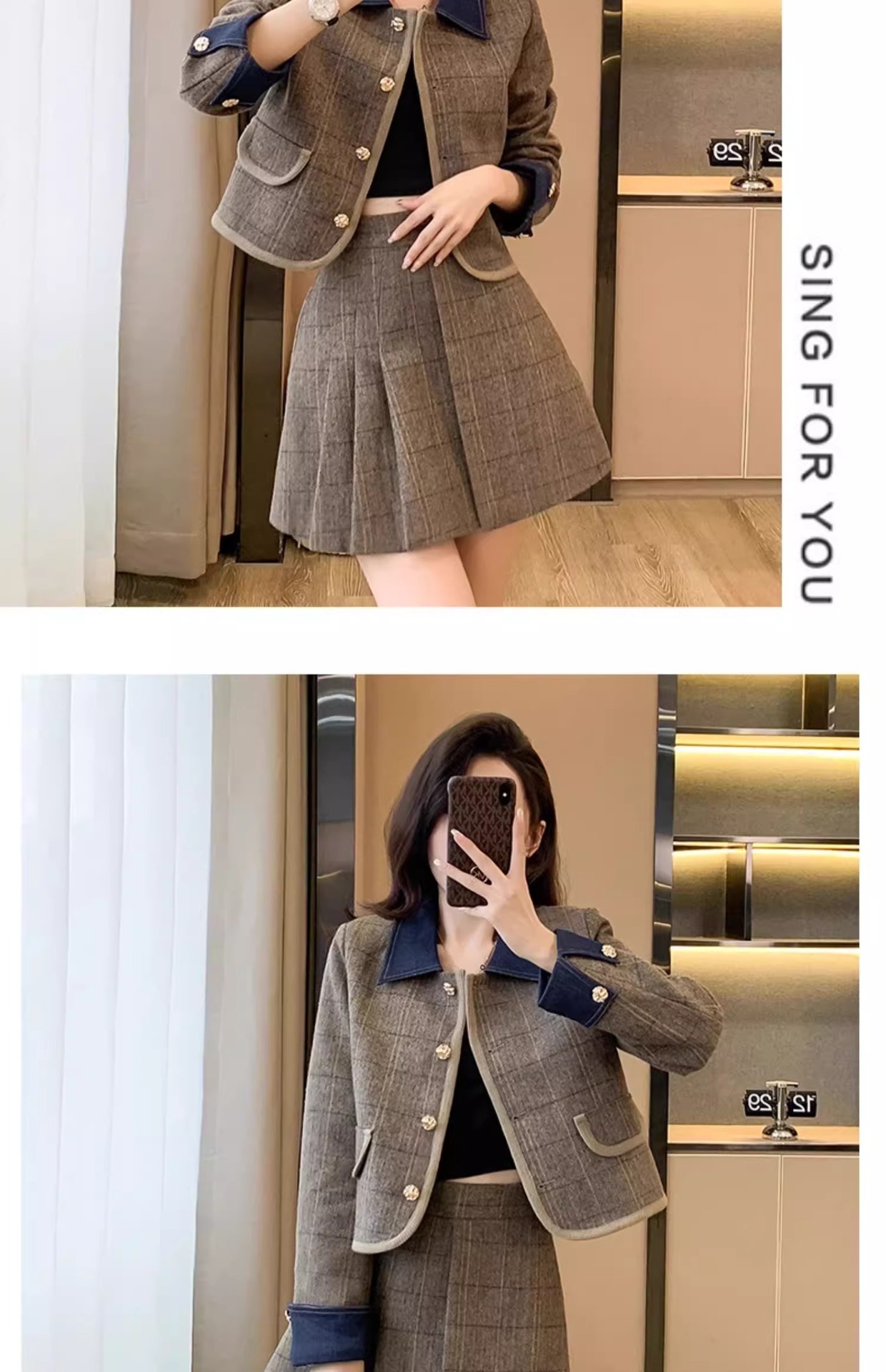 투피스 작은 샤넬 스타일 짧은 코트 투피스 아카데미 스타일 연령 감소 패션 세트 여성을위한 하이 엔드 세트 원피스 A2988스토어 가기