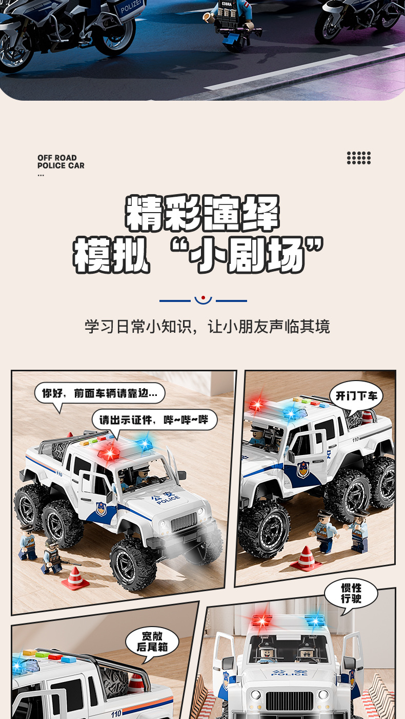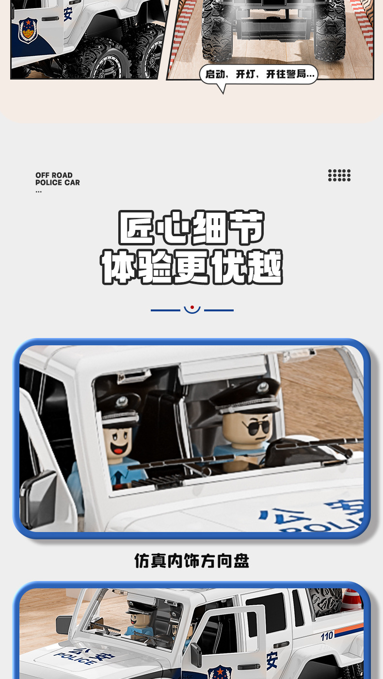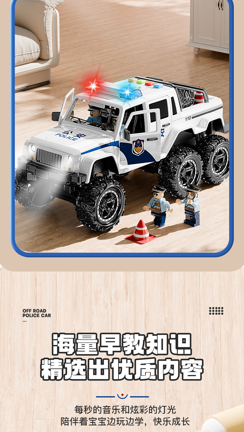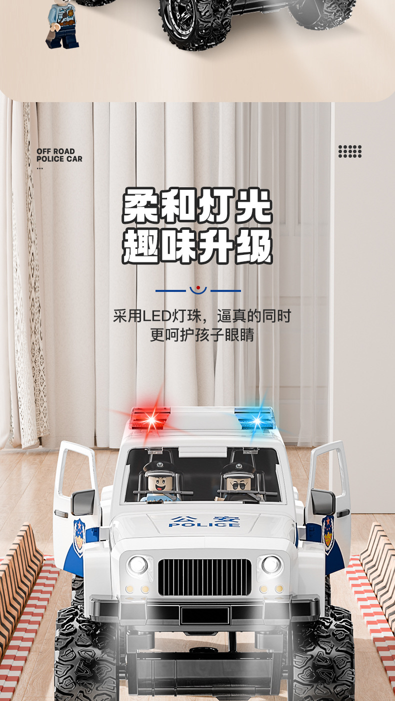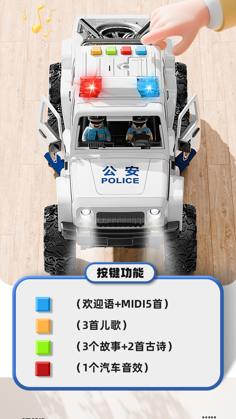 • (무료 인형 3개) 초대형 오프로드 경찰차 [소리와 빛의 이야기와 함께 문을 열 수 있음]