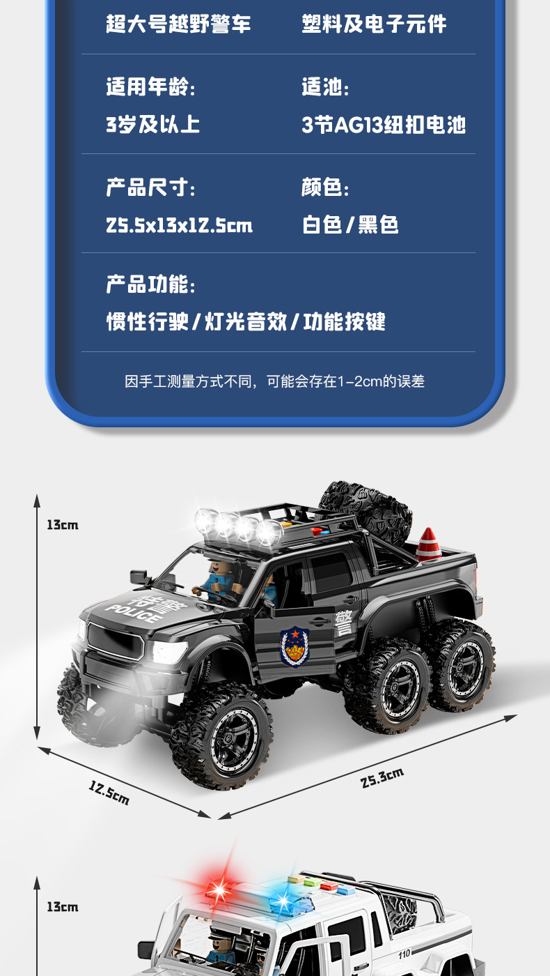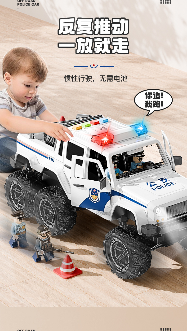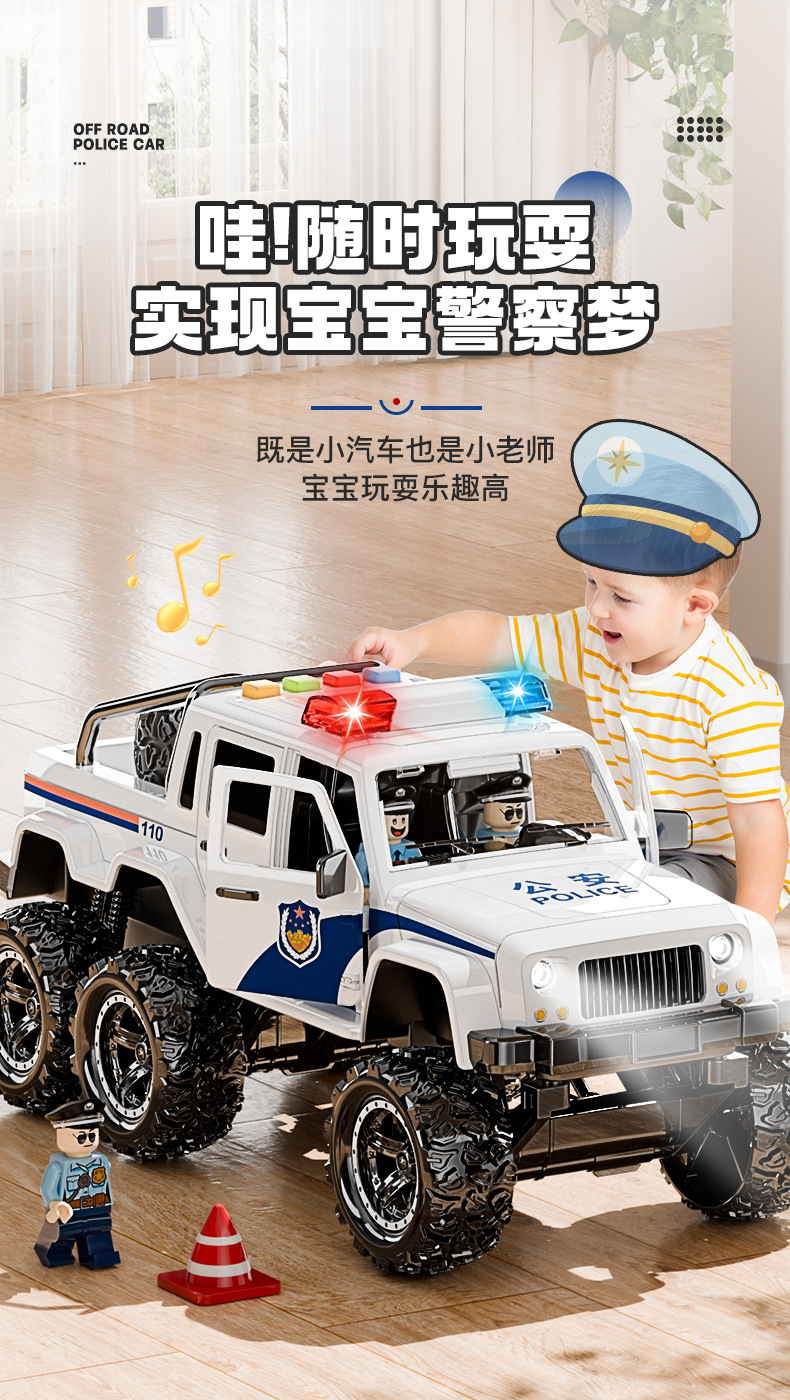 원피스 무료 배송 대형 어린이 장난감 시뮬레이션 오프로드 경찰차 공공 보안 자동차 모델 소년 1-6 세스토어 가기