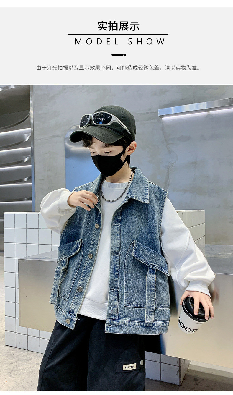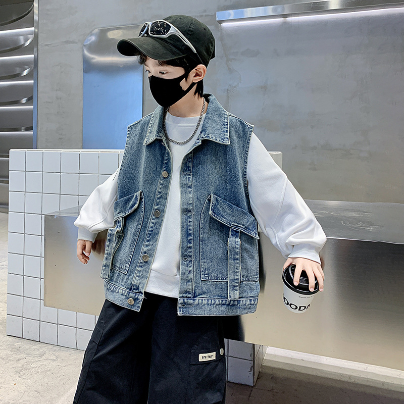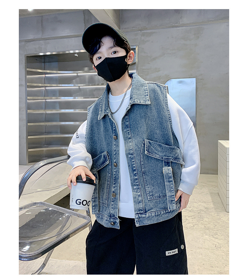 소년 데님 조끼 느슨한 민소매 재킷 2025 새로운 스타일 빅 보이 패션 캐주얼 올 매치 스트리트 패셔너블 조끼스토어 가기