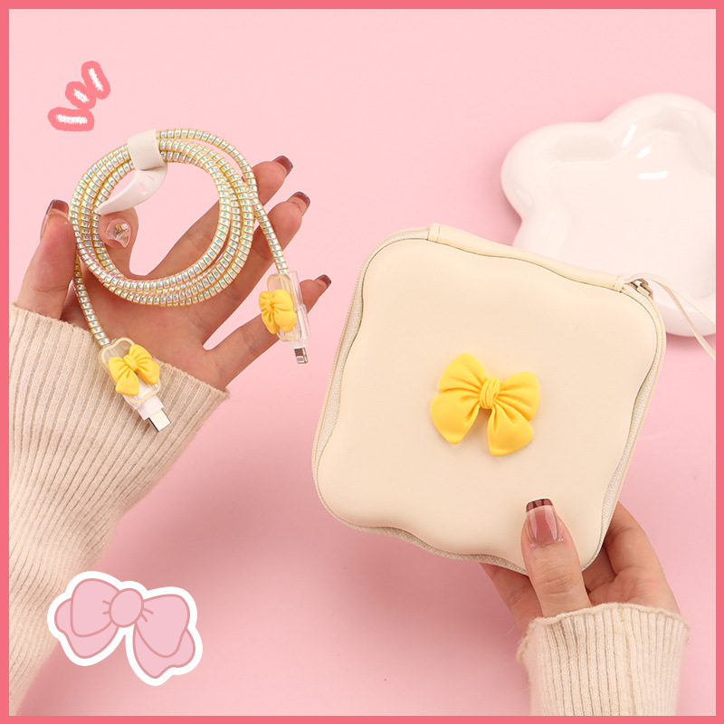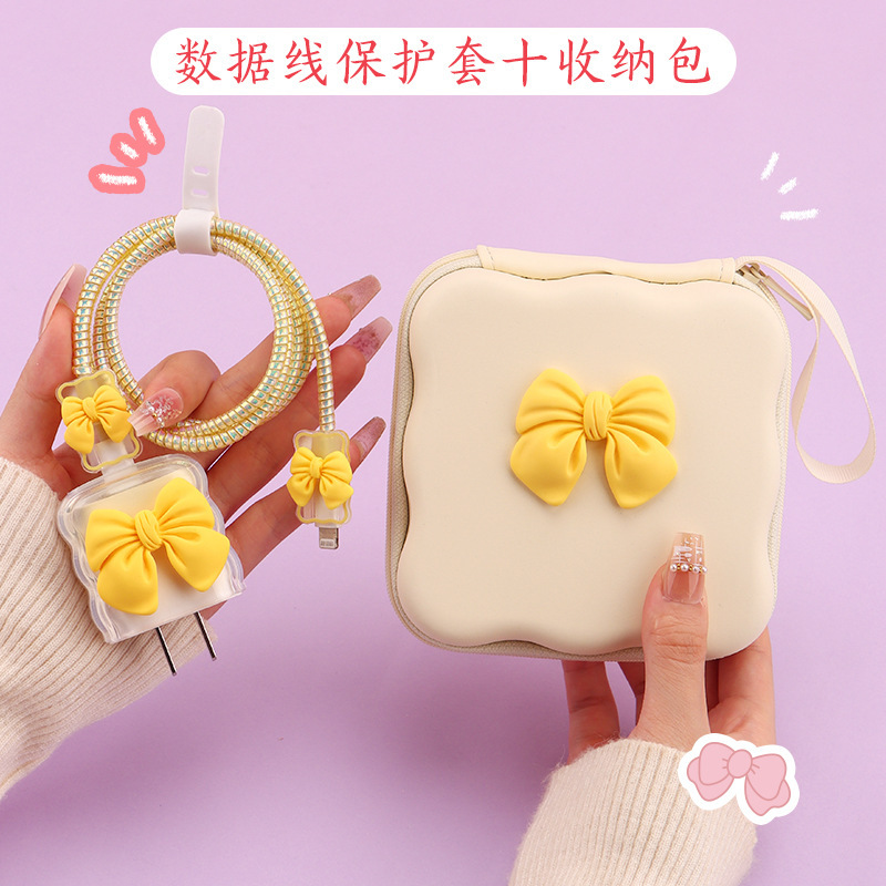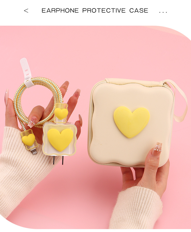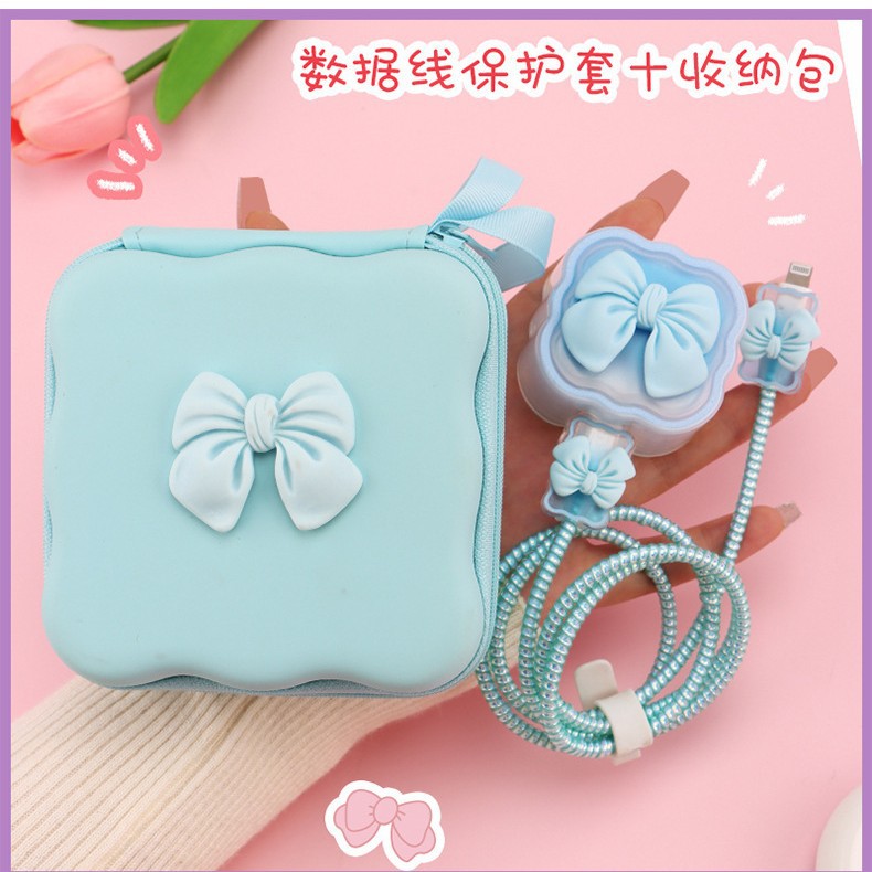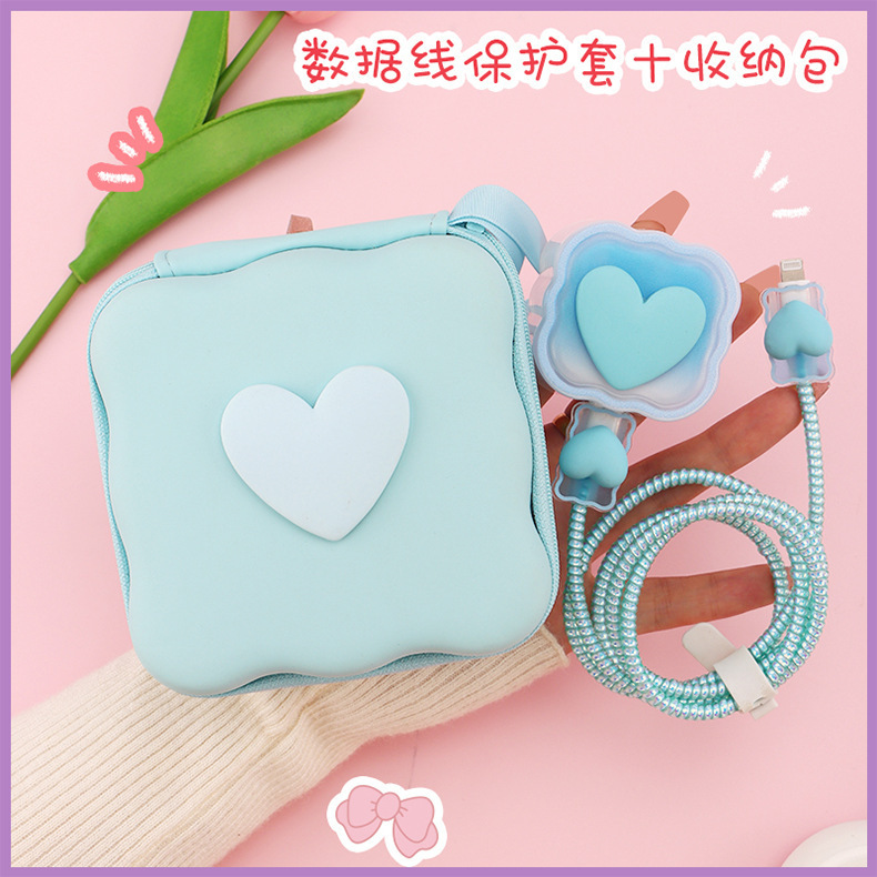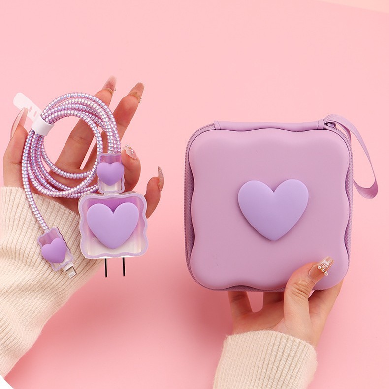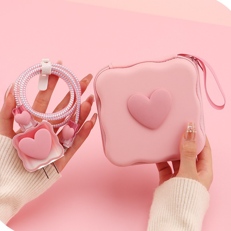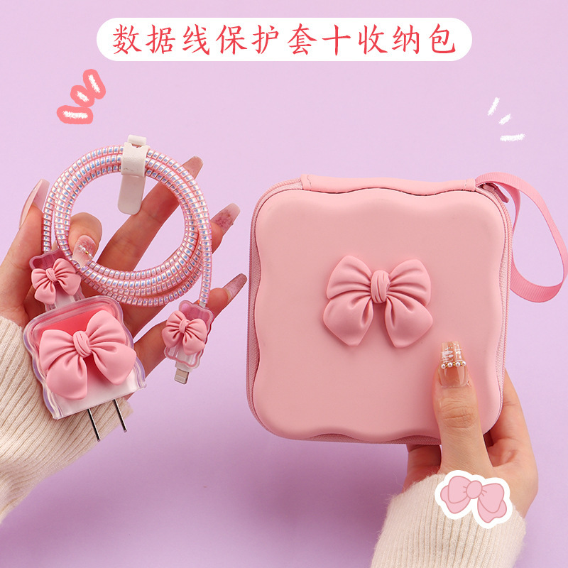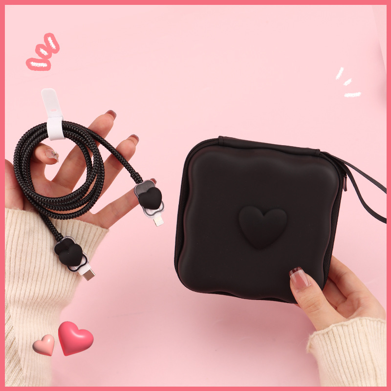 五件套包含:1个充电器套,2个数据线接口保护套,1根数据线保护绳,1个绑带,5件套包装尺寸13*15*3cm
