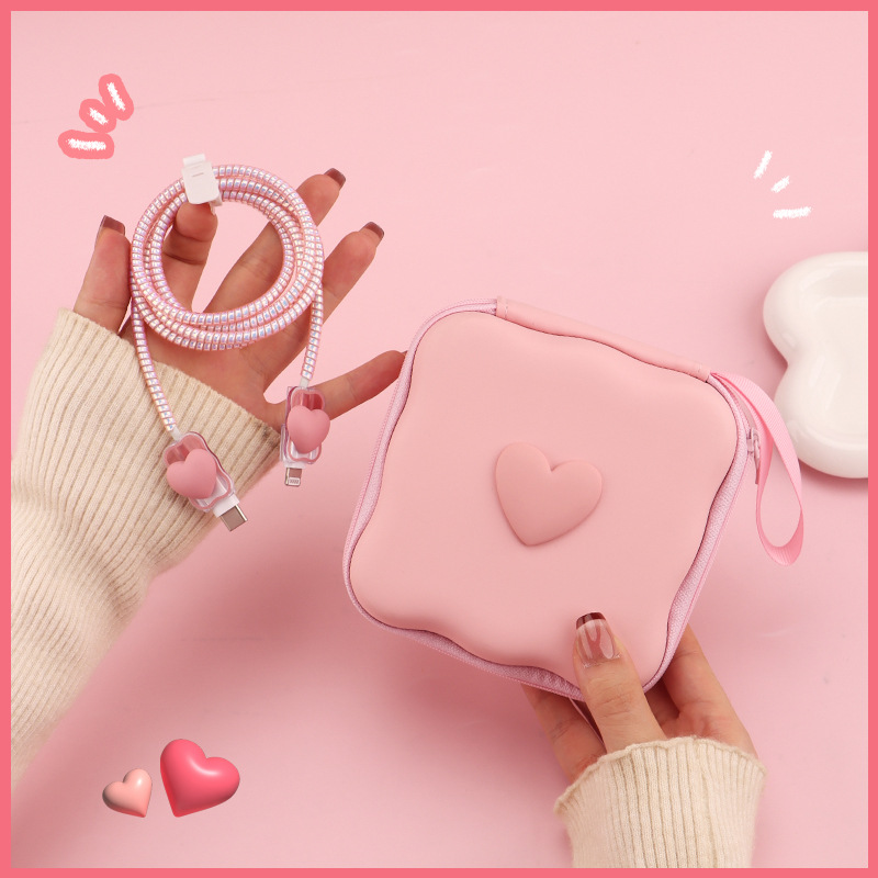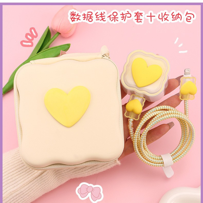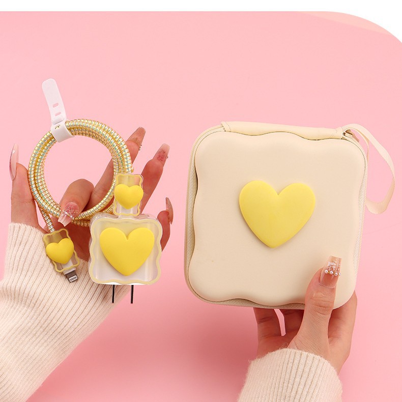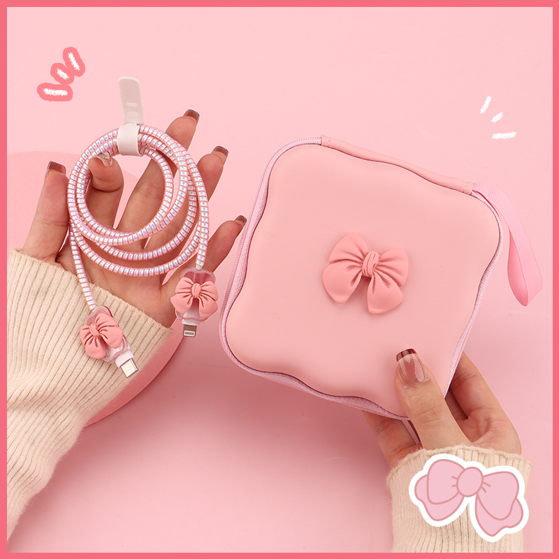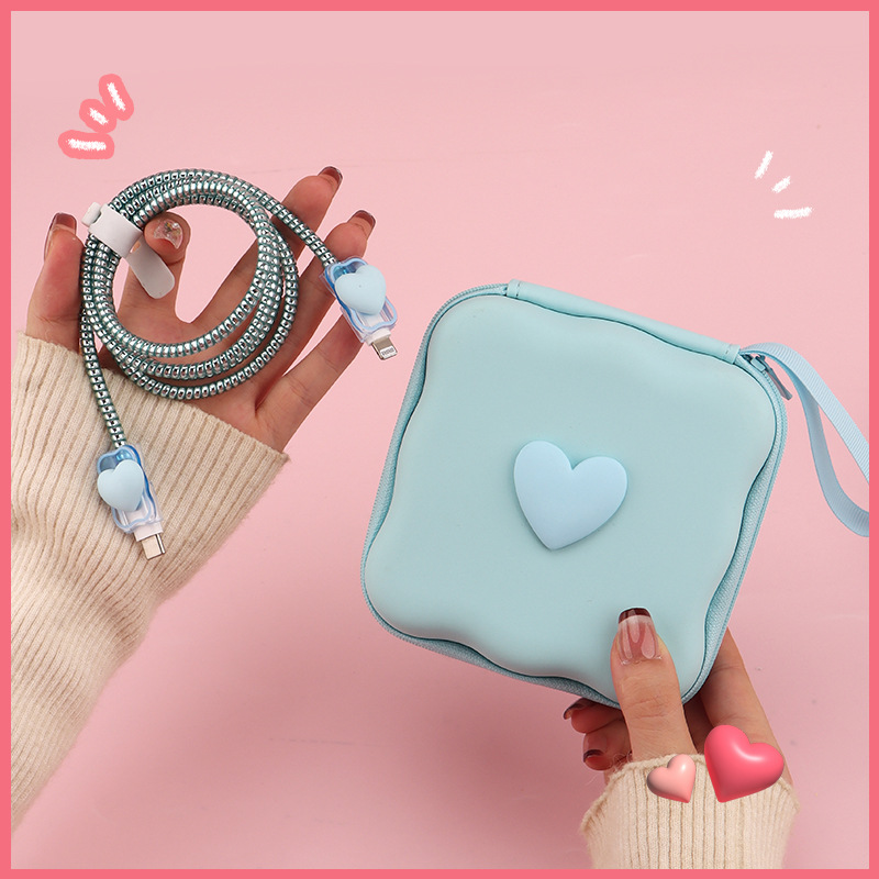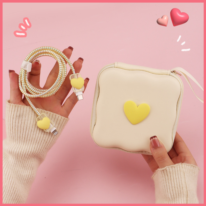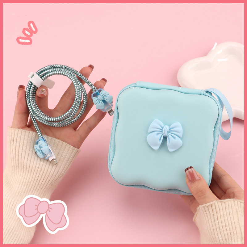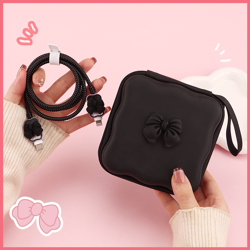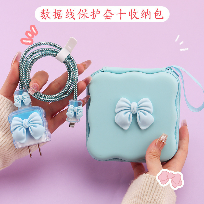 五件套包含:1个充电器套,2个数据线接口保护套,1根数据线保护绳,1个绑带,5件套包装尺寸13*15*3cm
