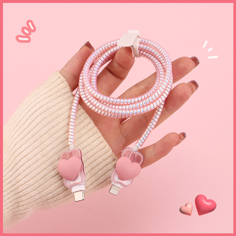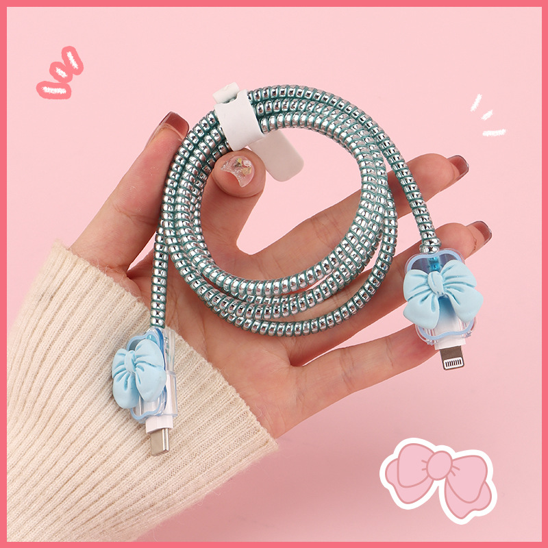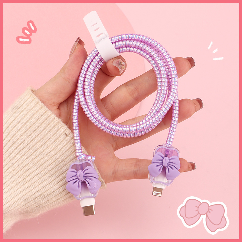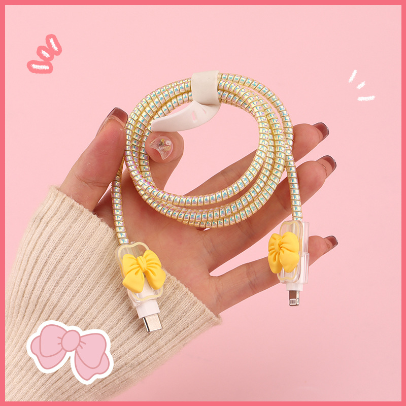 六件套包含:1个充电器套,2个数据线接口保护套,1根保护绳,