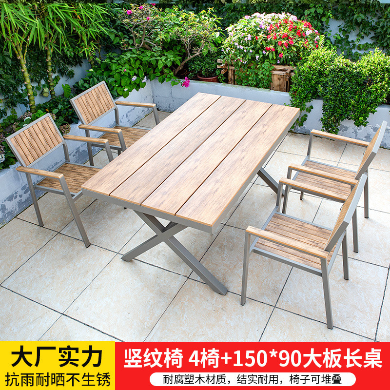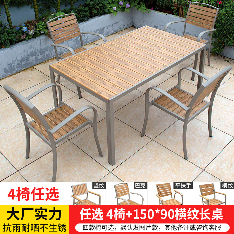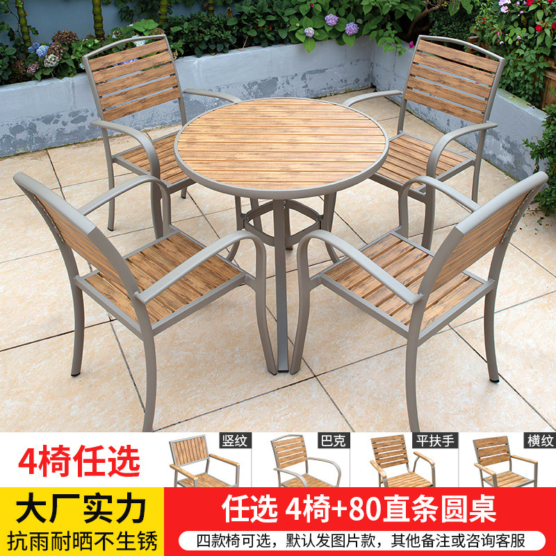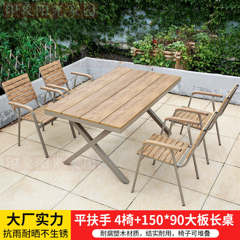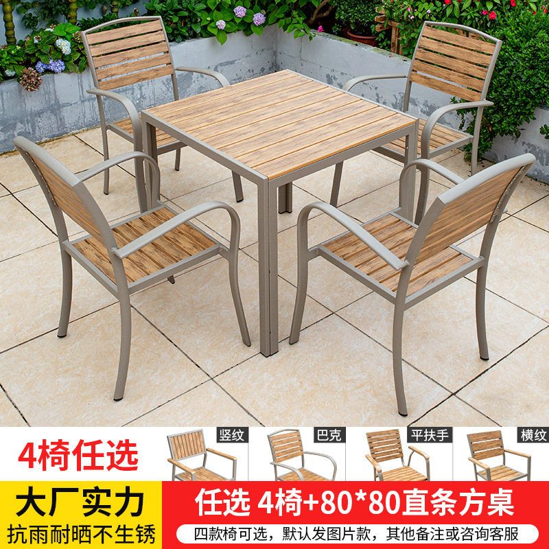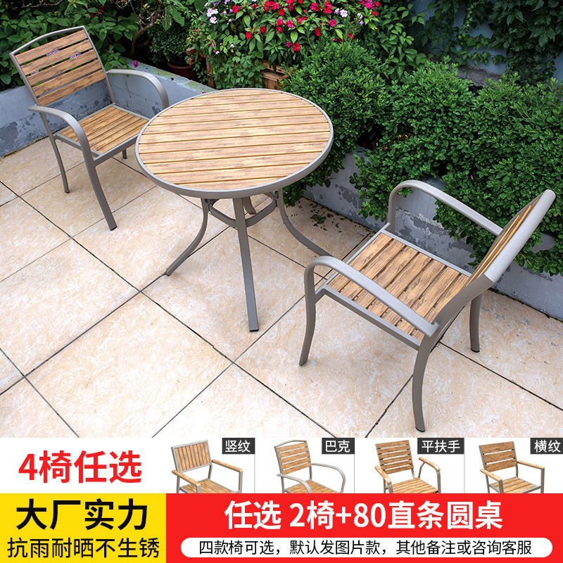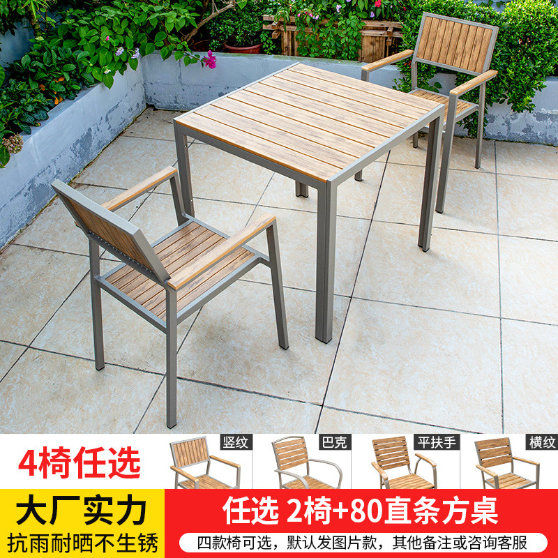 야외 플라스틱 나무 테이블 및 의자 안뜰 부식 방지 목재 방수 야외 발코니 야외 레저 정원 테이블 및 의자 조합스토어 가기