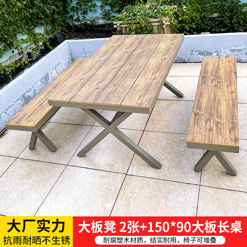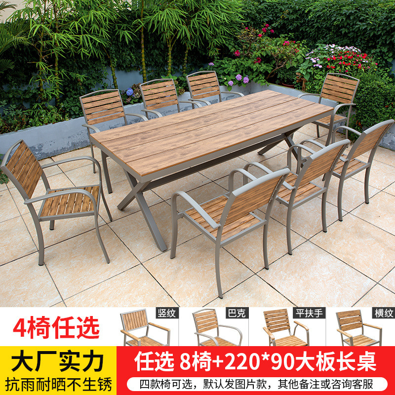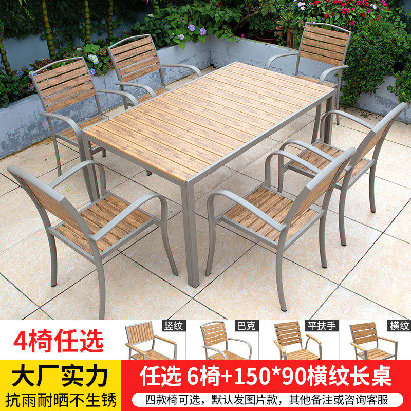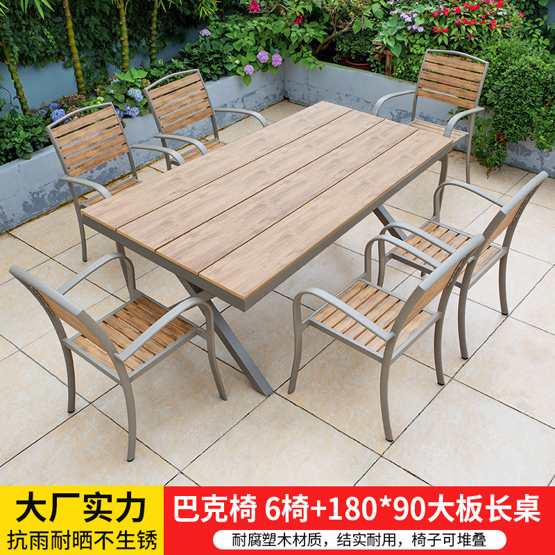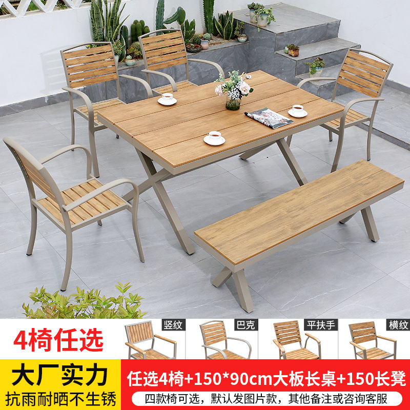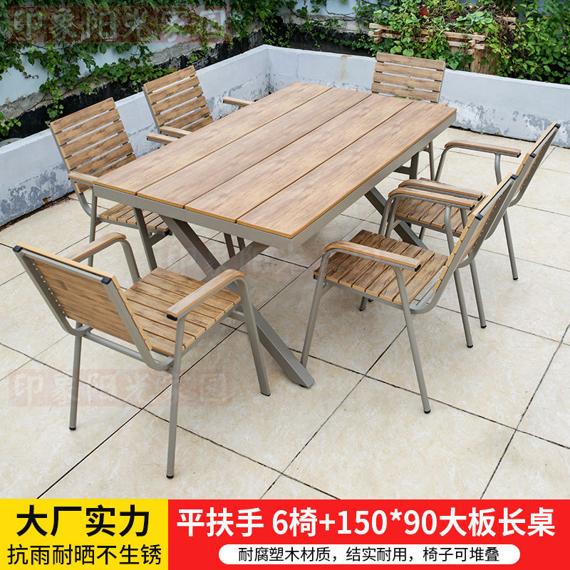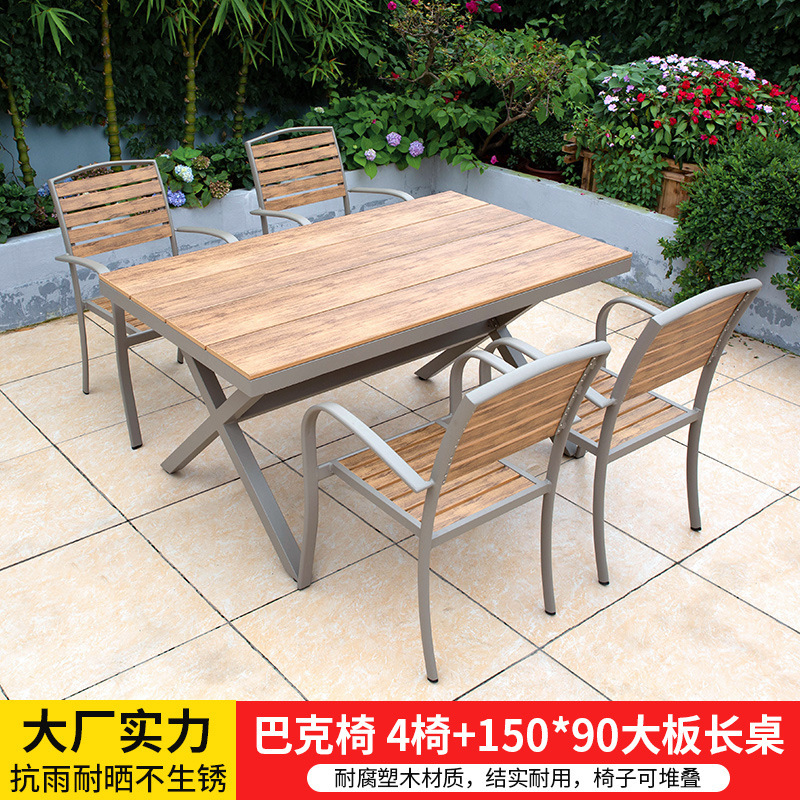 야외 플라스틱 나무 테이블 및 의자 안뜰 부식 방지 목재 방수 야외 발코니 야외 레저 정원 테이블 및 의자 조합스토어 가기