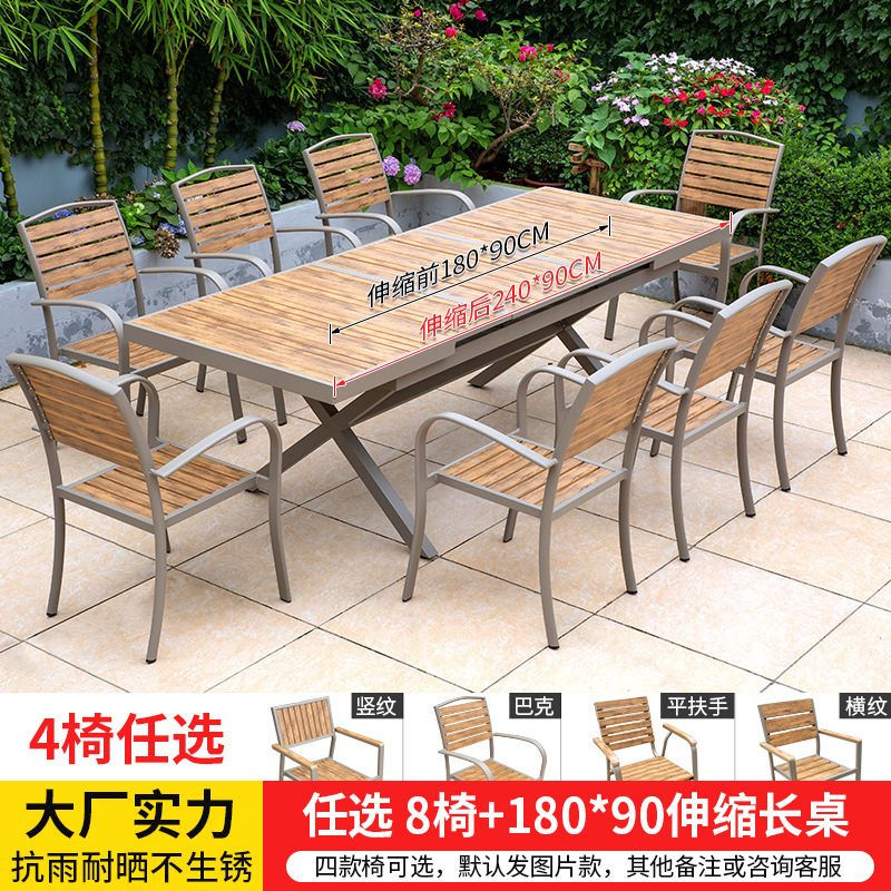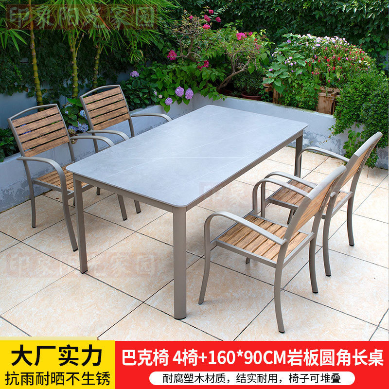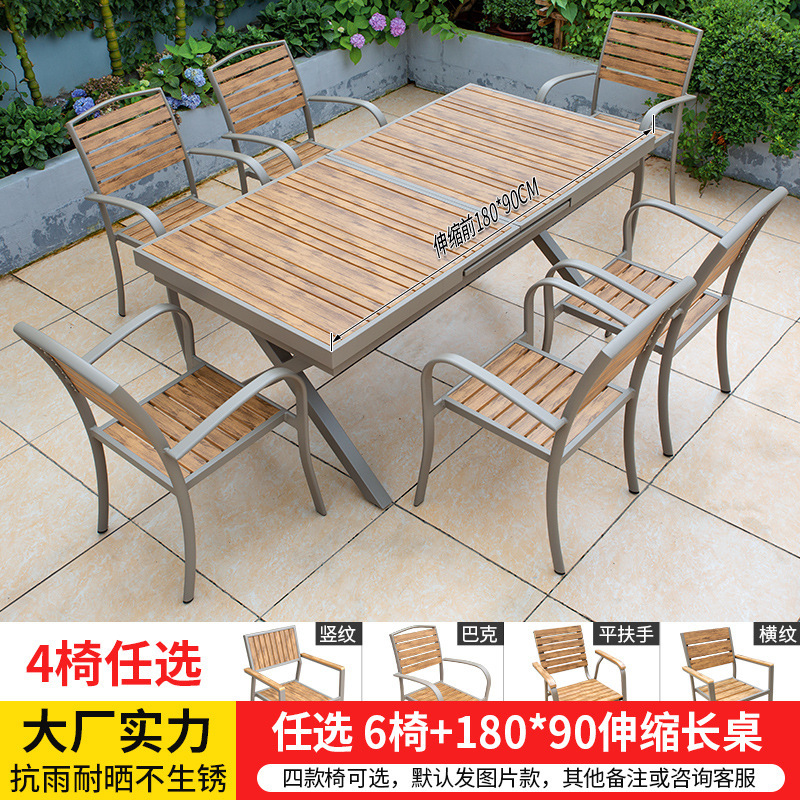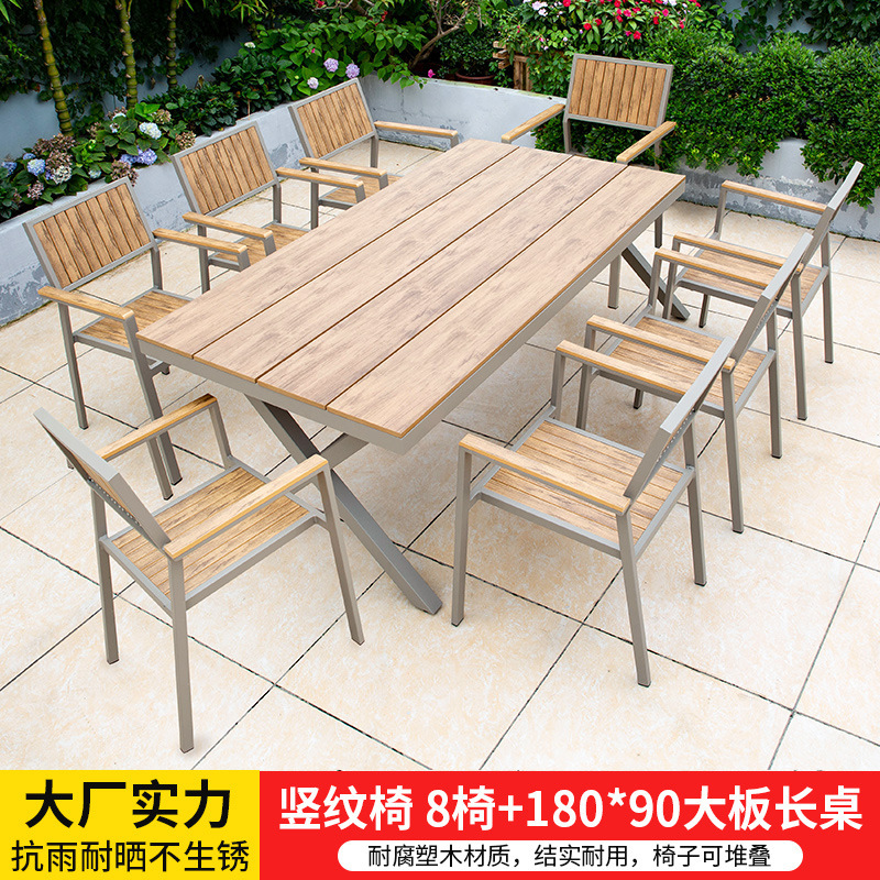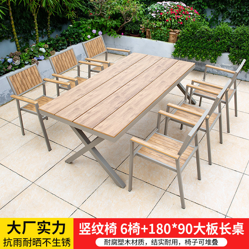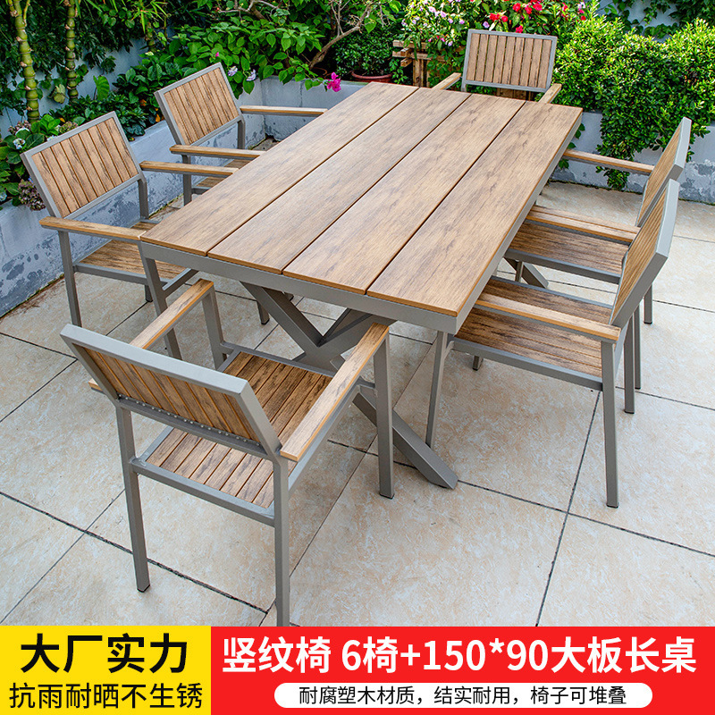 야외 플라스틱 나무 테이블 및 의자 안뜰 부식 방지 목재 방수 야외 발코니 야외 레저 정원 테이블 및 의자 조합