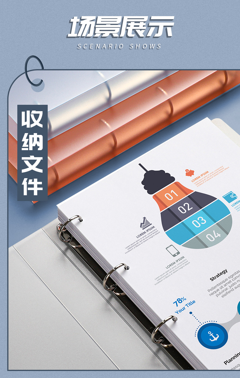 구멍을 뚫은 학생들을위한 4 개의 구멍 a4 종이 대용량 케이스 4 개의 책 클립 시험지 용 바인더 5 폴더스토어 가기