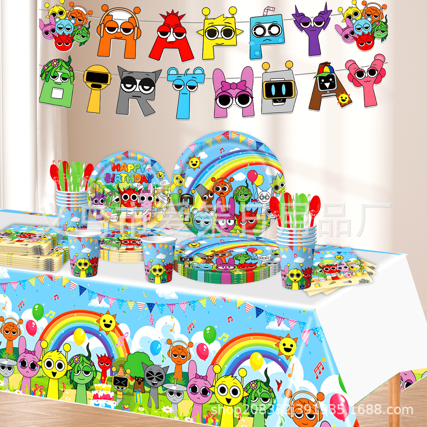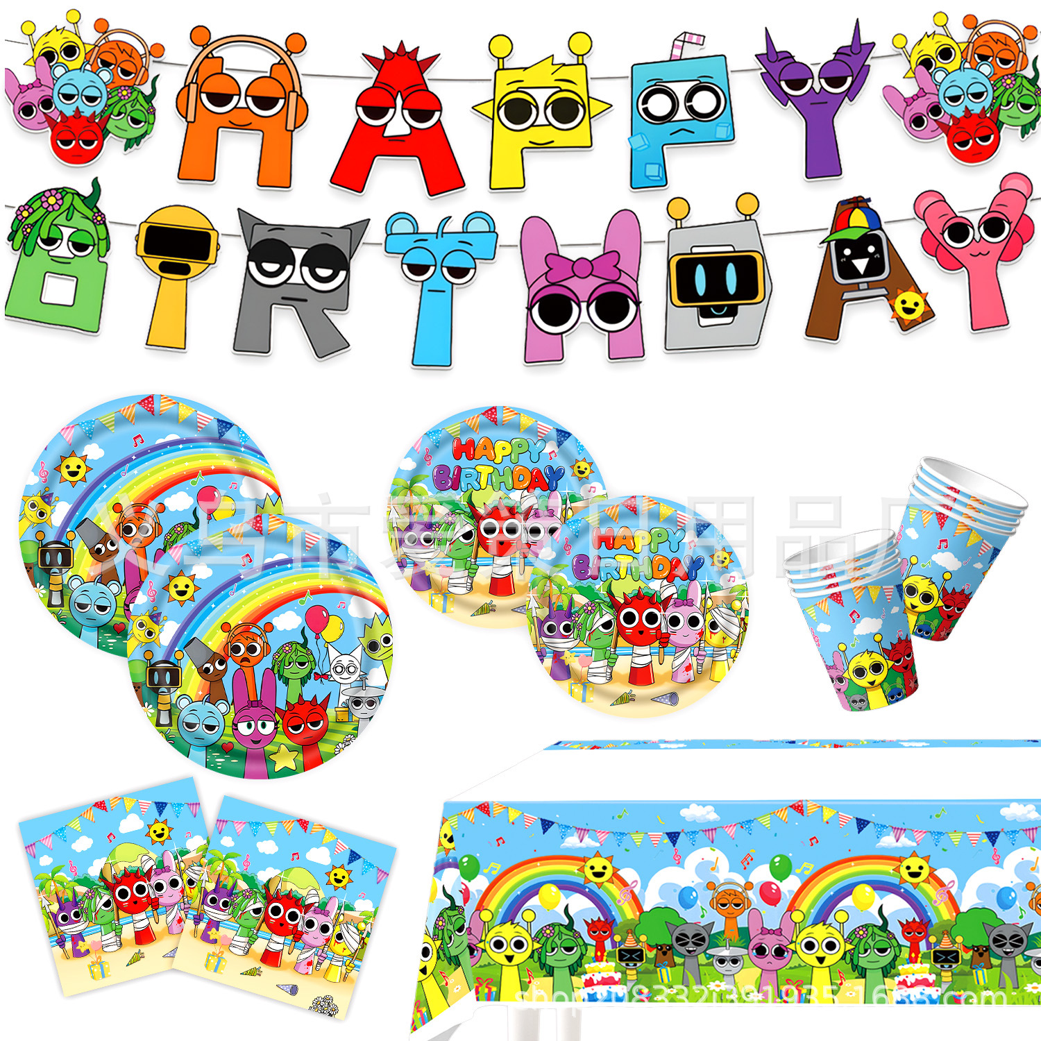 국경 리듬 상자 생일 축하 테마 만화 어린이 파티 용품 식기 생일 장식 종이 트레이 배너