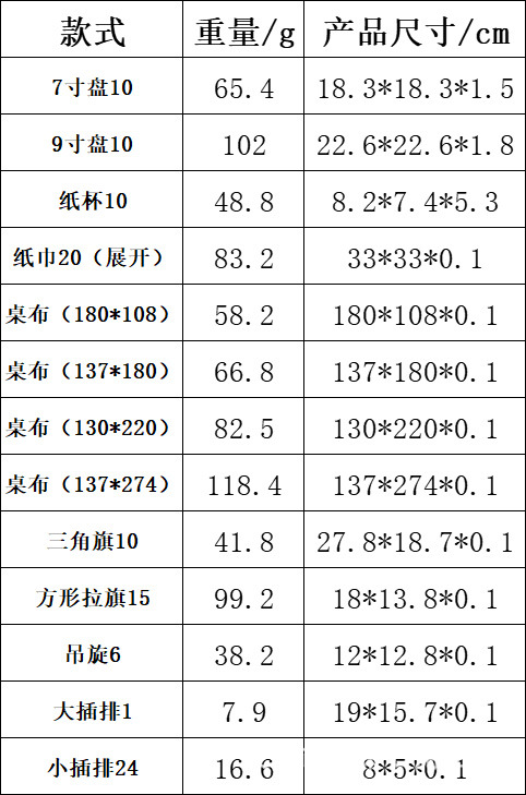 • 세트- 7inch + 9inch + 종이컵+티슈+식탁보+플래그-66개