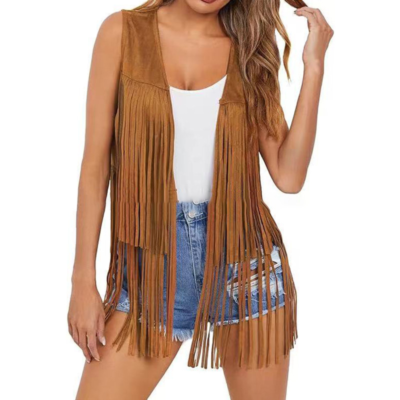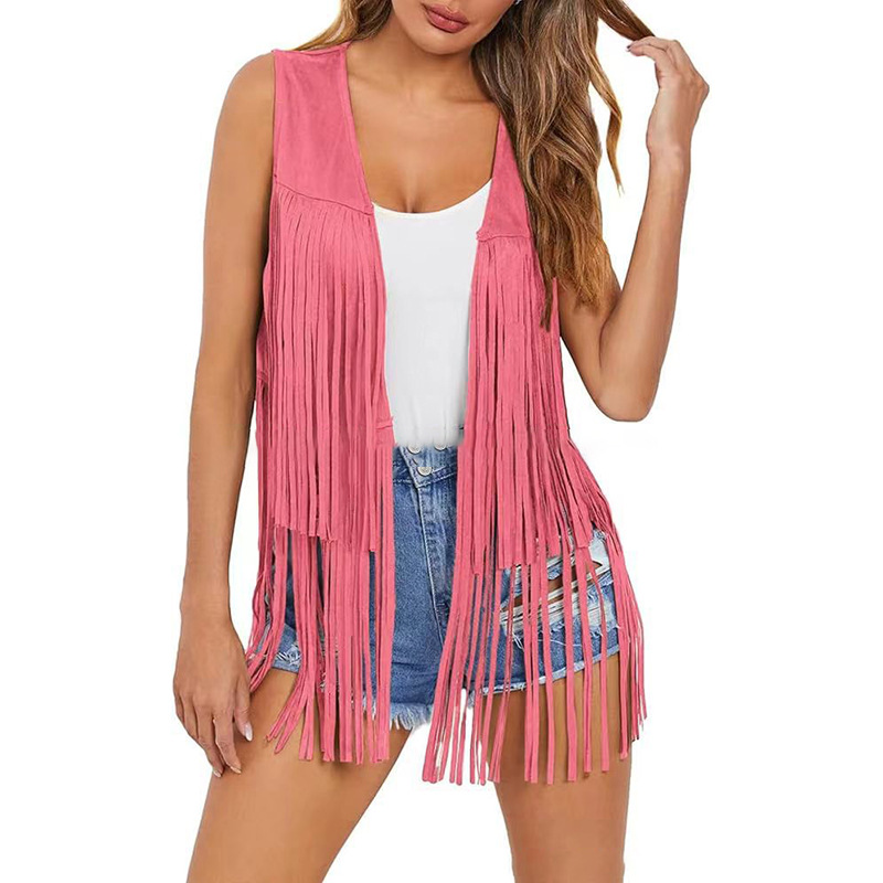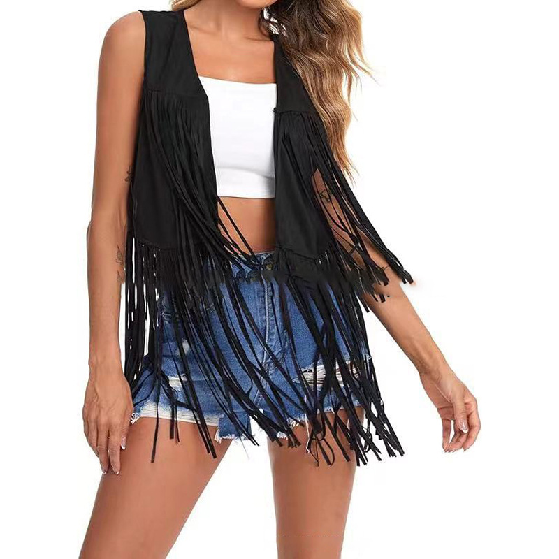 2025 새로운 유럽과 미국의 봄과 여름 패션 얇은 술 조끼 여성 유럽 역 스웨이드 맞춤형 짧은 스타일