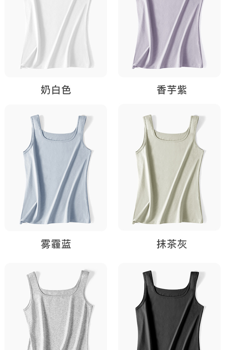 봄과 여름 코튼 카미 솔 새로운 스타일 스퀘어 칼라 조끼 여성의 얇은 슬림 핏 내부 민소매 외신베이스 셔츠스토어 가기