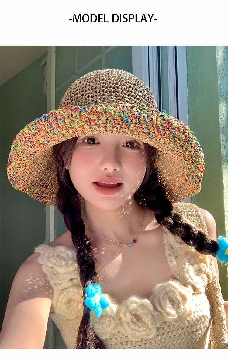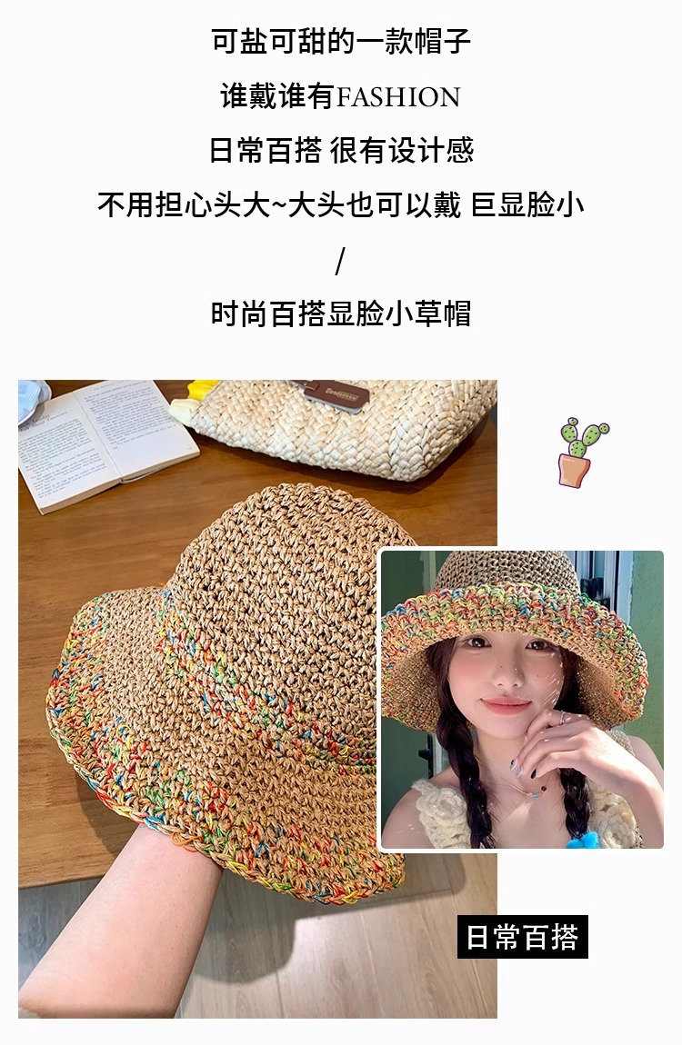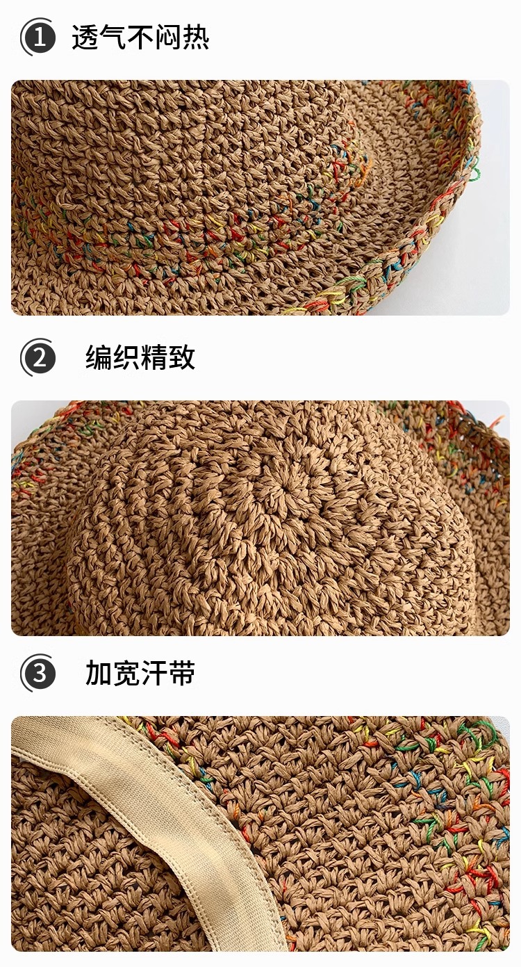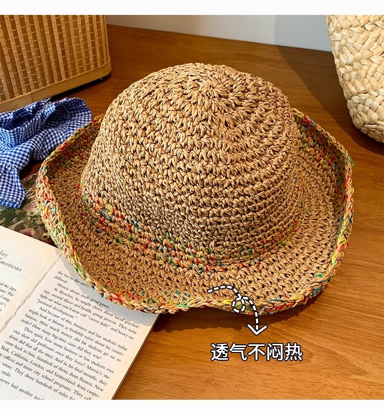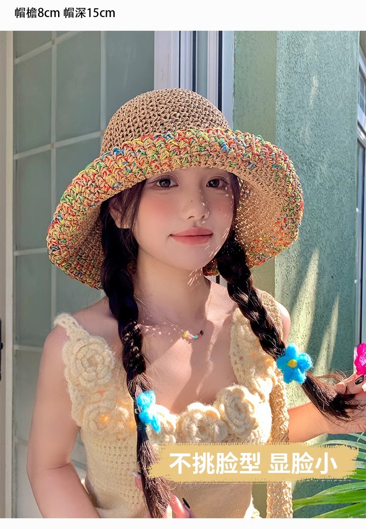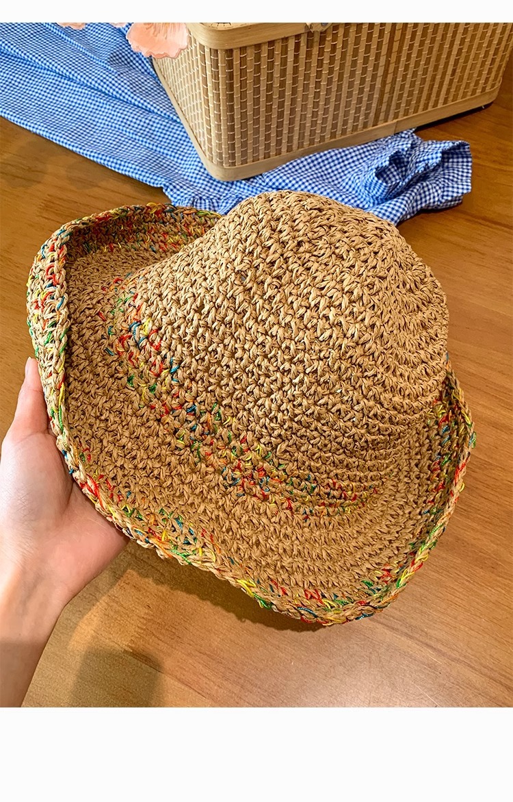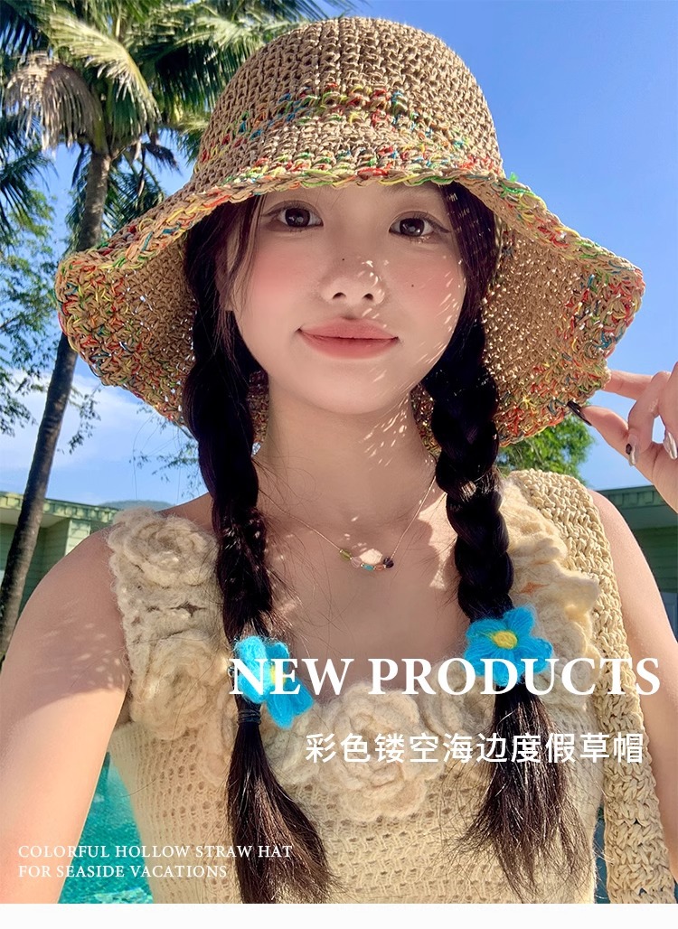 컬러 할로우 큰 모자 밀짚 모자 여성의 2025 년 봄 새로운 차양 선 스크린 모자 해변 휴일 태양 모자스토어 가기