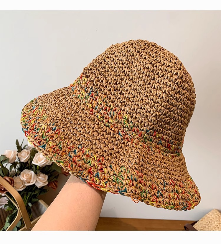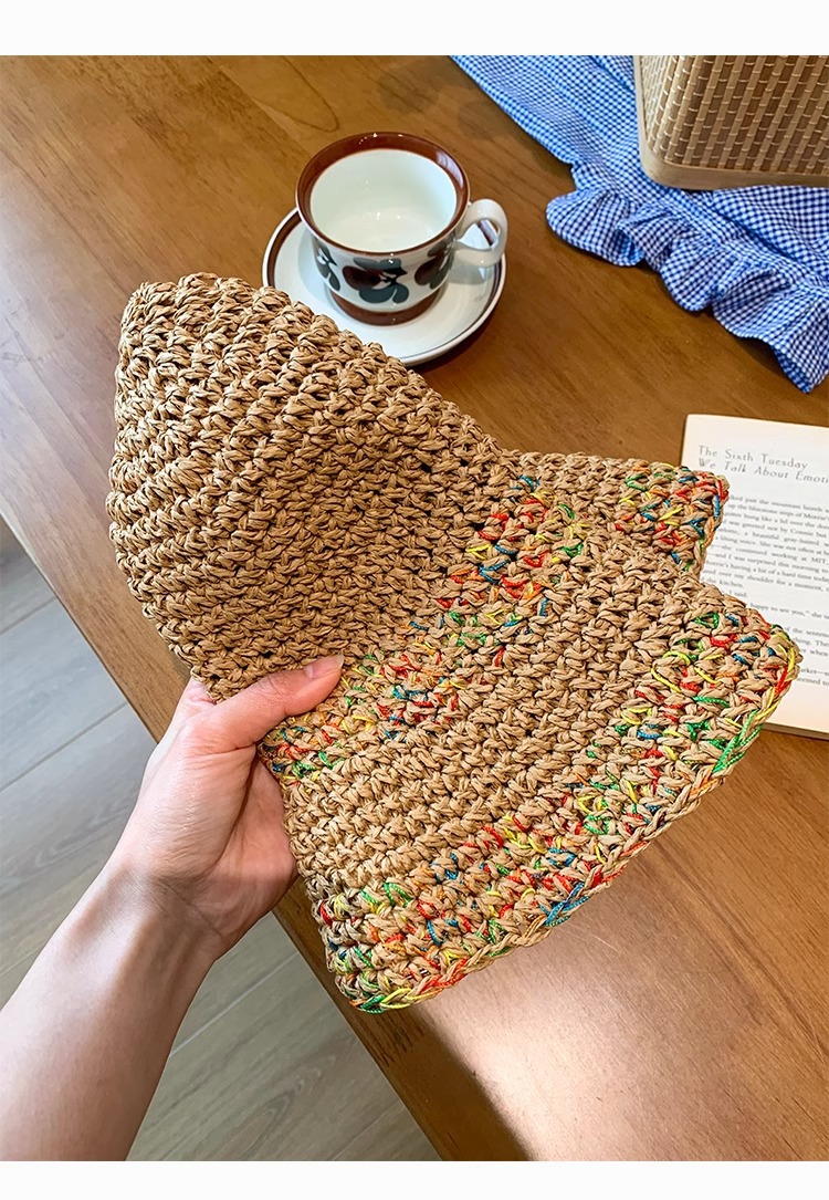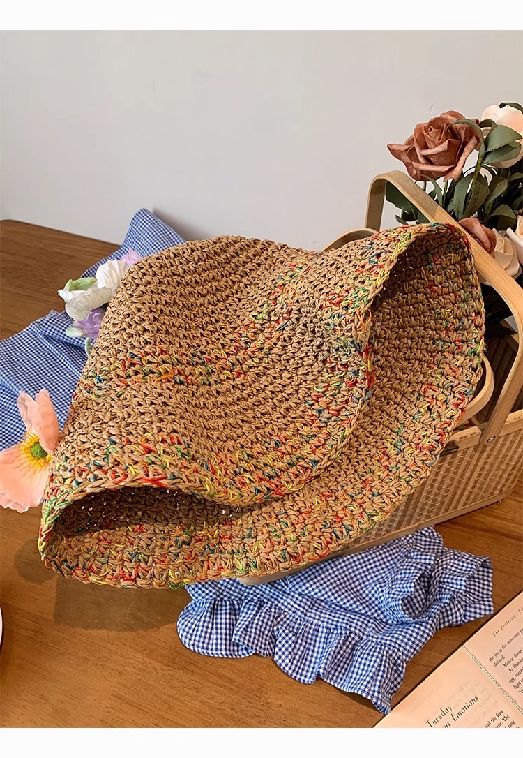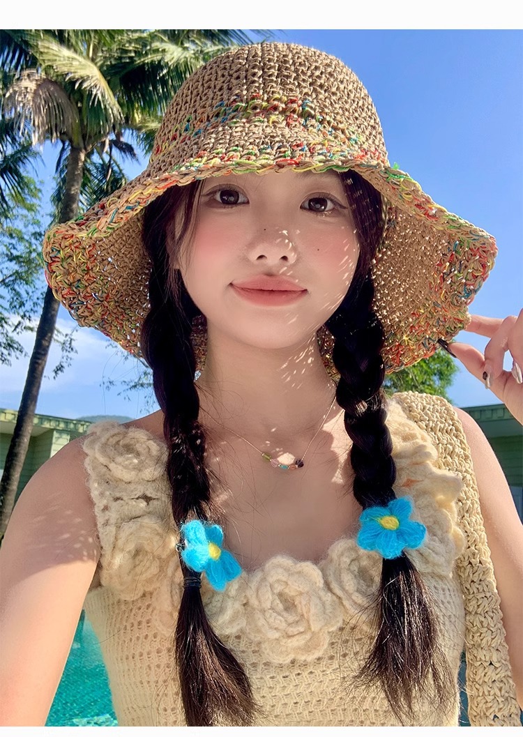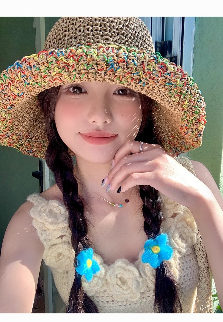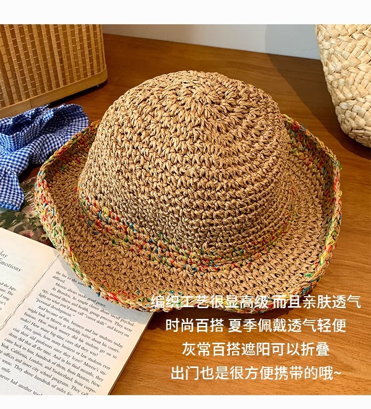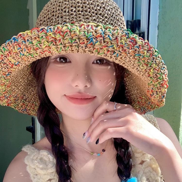 컬러 할로우 큰 모자 밀짚 모자 여성의 2025 년 봄 새로운 차양 선 스크린 모자 해변 휴일 태양 모자스토어 가기