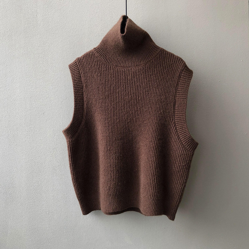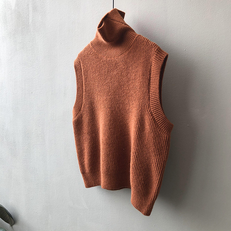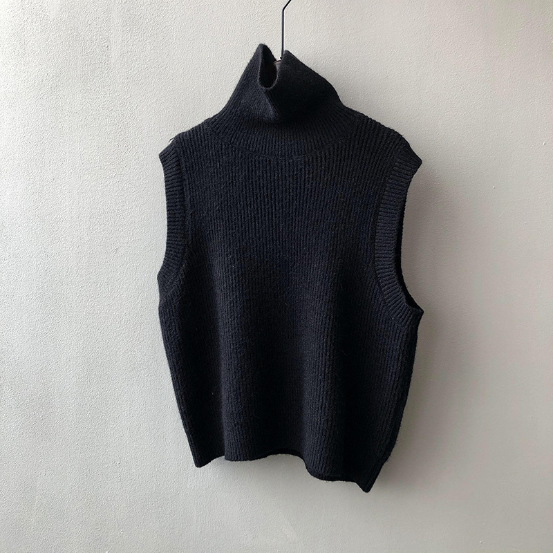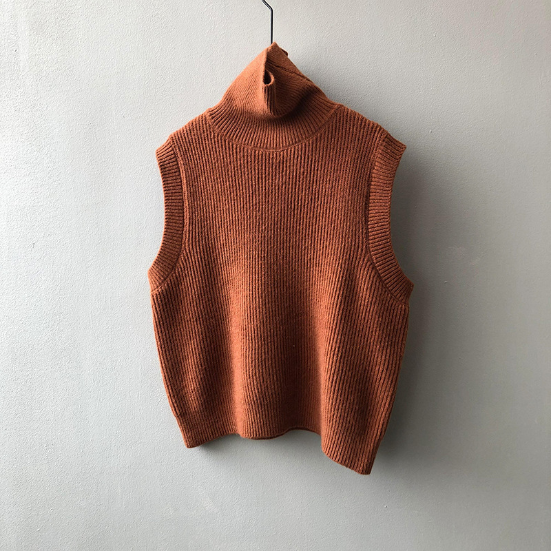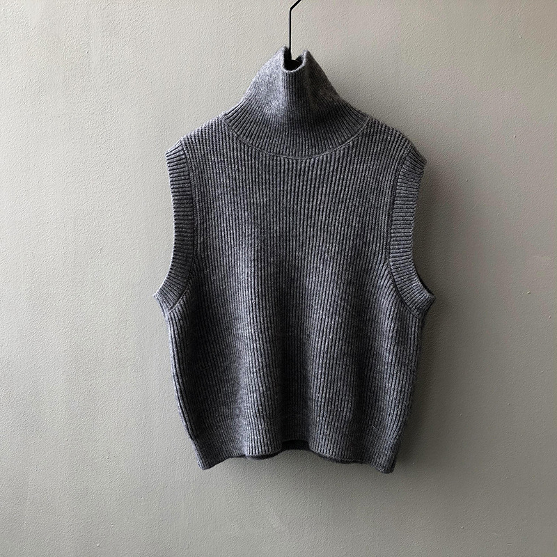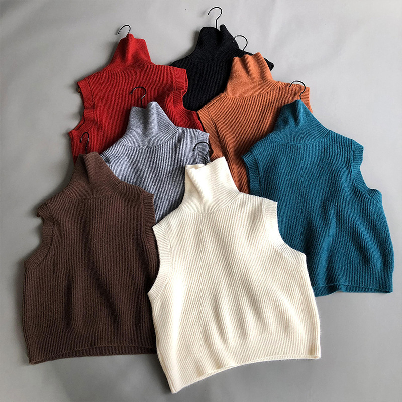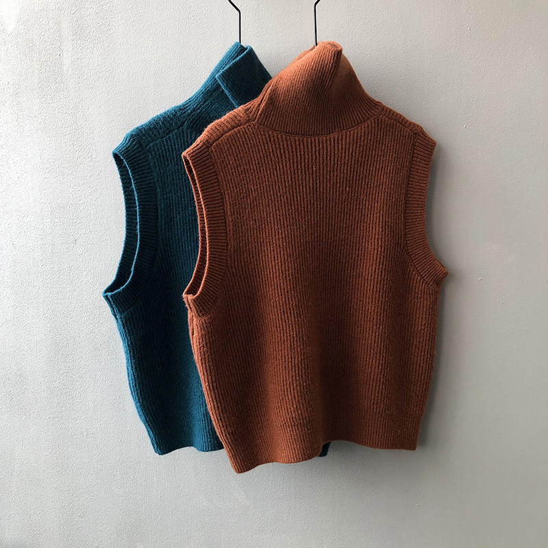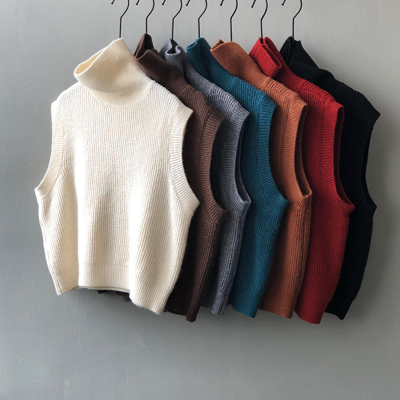 봄과 가을 새로운 국경 여성 니트 조끼 하이 넥 솔리드 컬러 웨이스트 코트 민소매 스웨터 재킷스토어 가기
