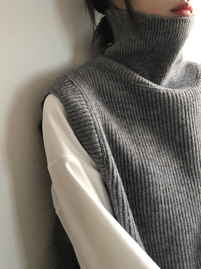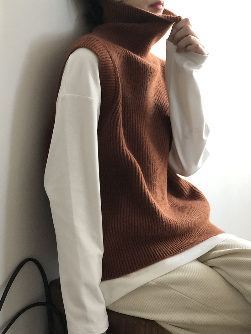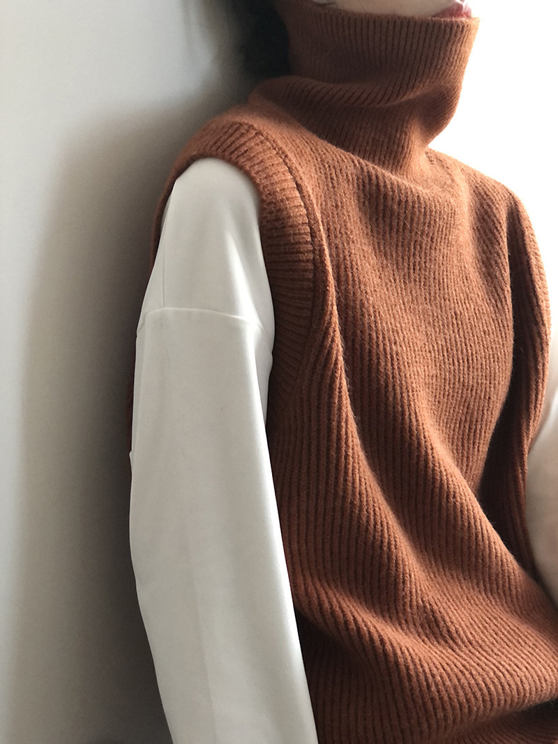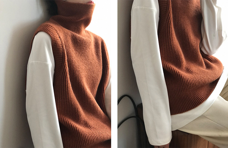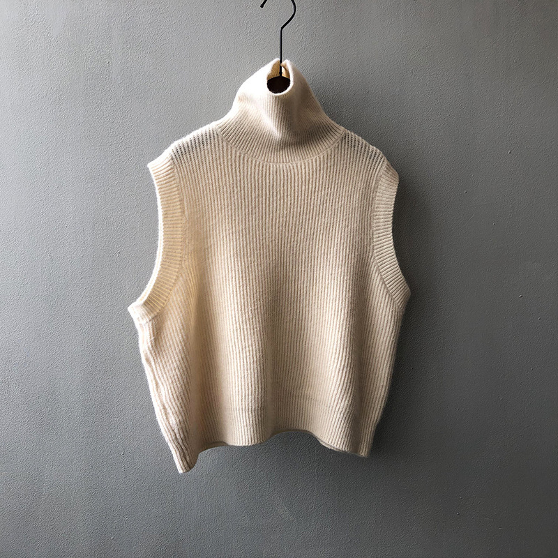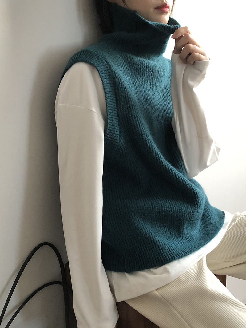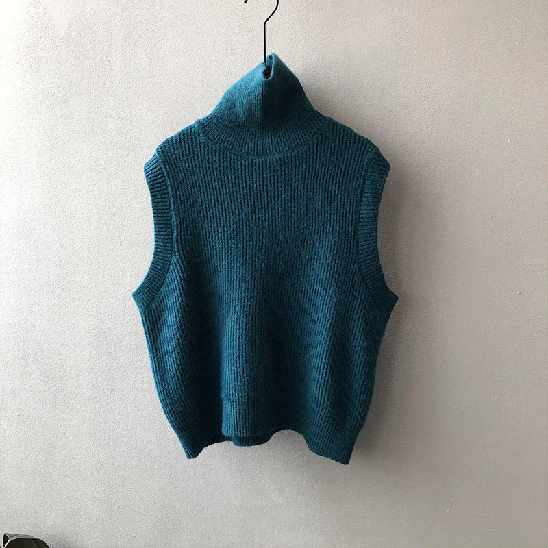 봄과 가을 새로운 국경 여성 니트 조끼 하이 넥 솔리드 컬러 웨이스트 코트 민소매 스웨터 재킷스토어 가기