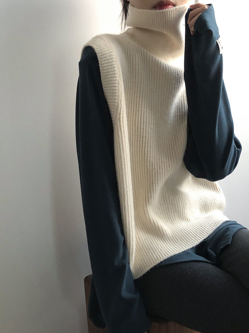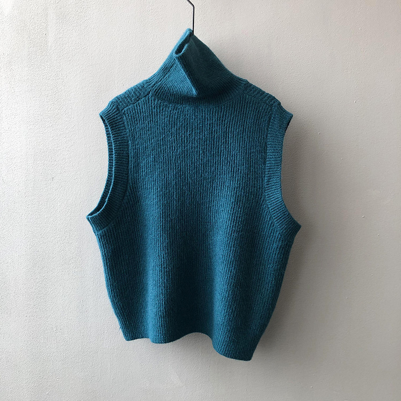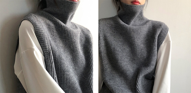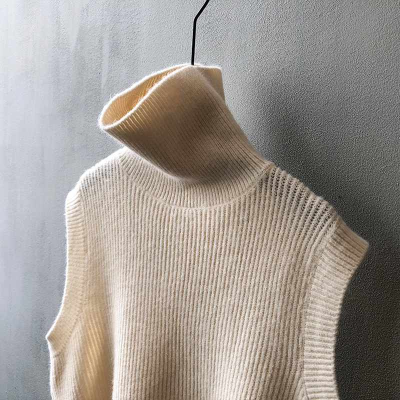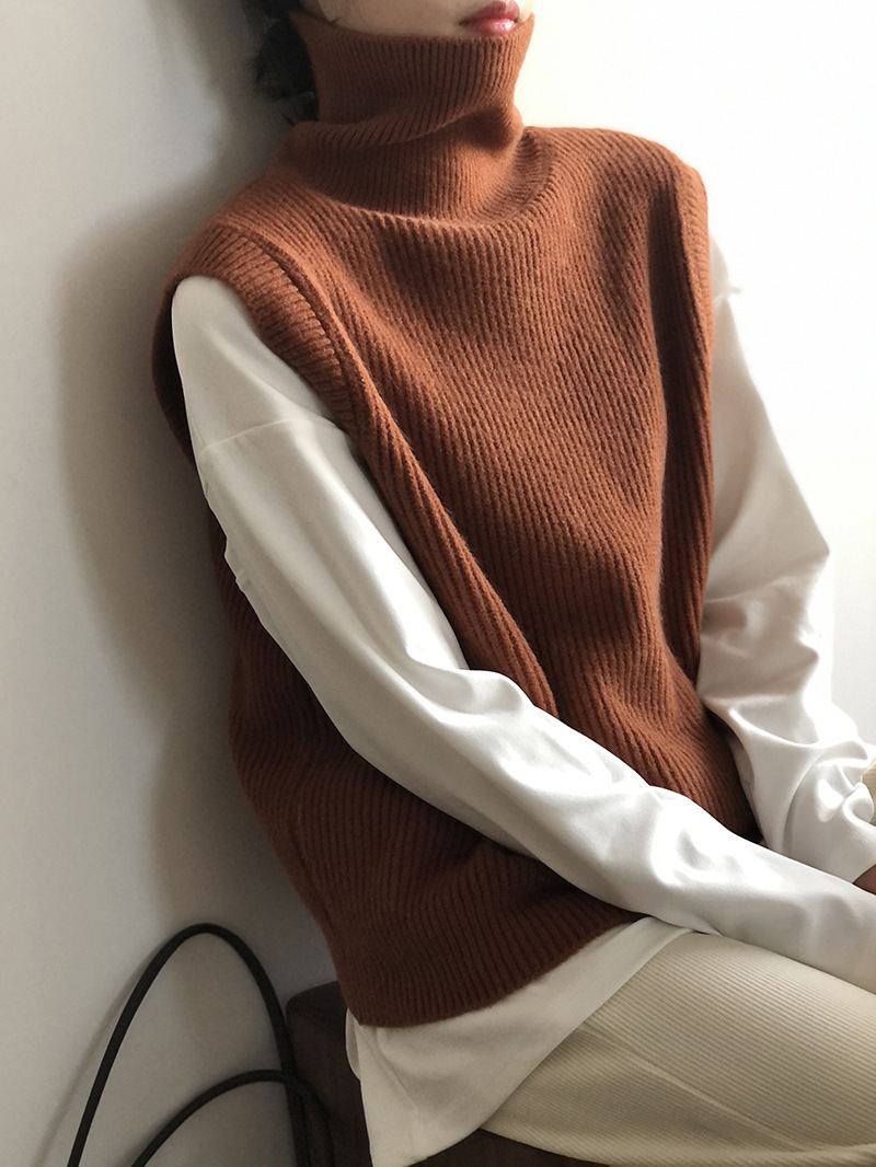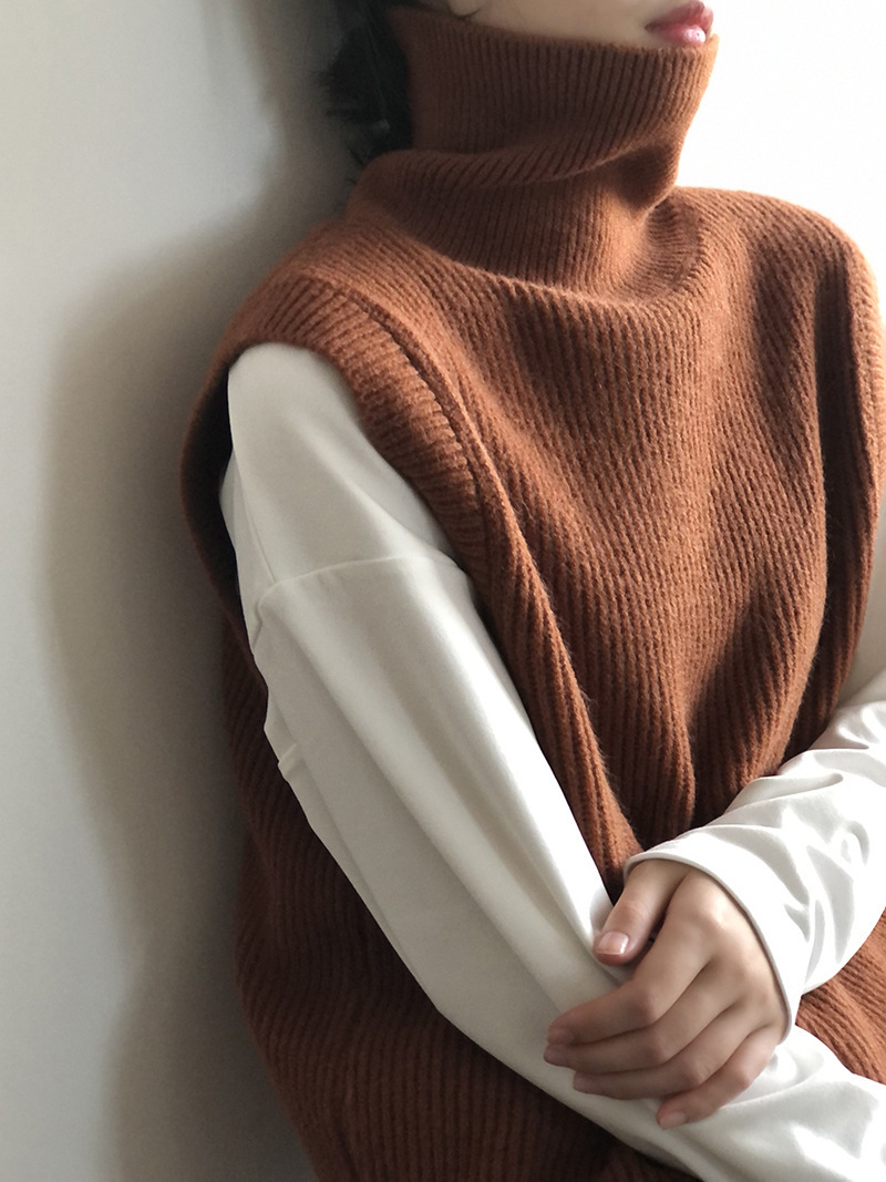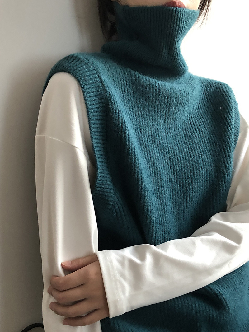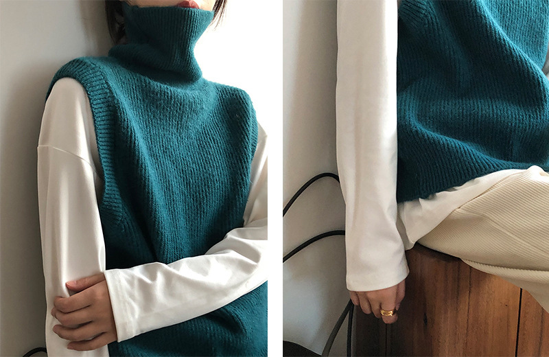 봄과 가을 새로운 국경 여성 니트 조끼 하이 넥 솔리드 컬러 웨이스트 코트 민소매 스웨터 재킷스토어 가기