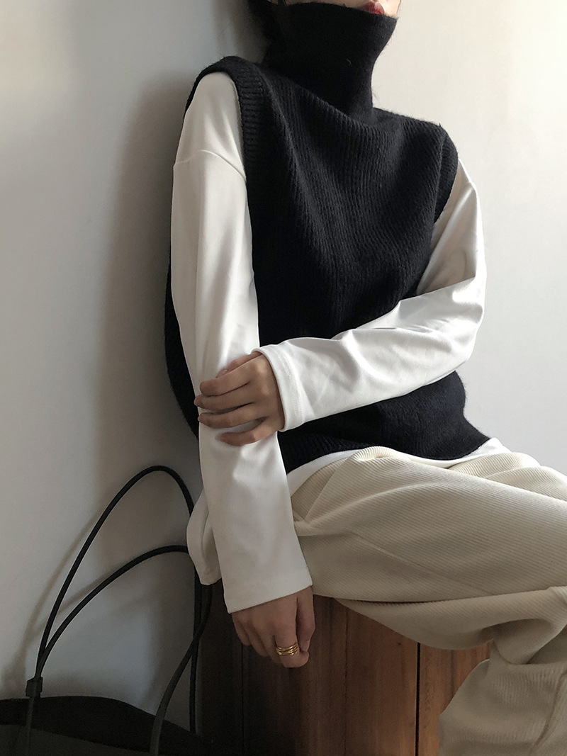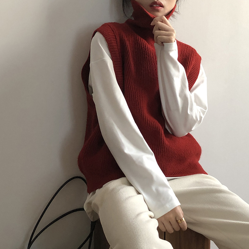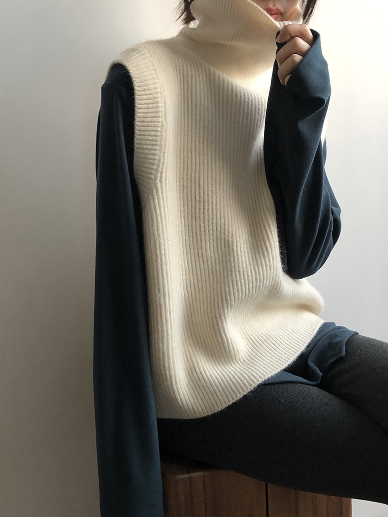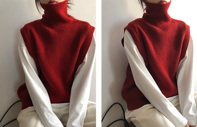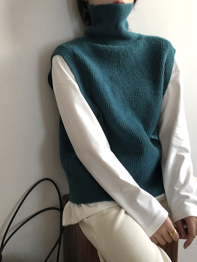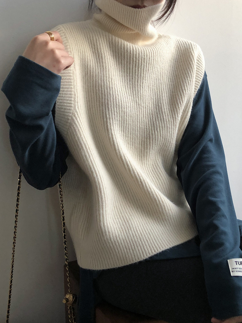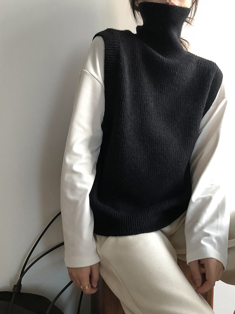 봄과 가을 새로운 국경 여성 니트 조끼 하이 넥 솔리드 컬러 웨이스트 코트 민소매 스웨터 재킷스토어 가기