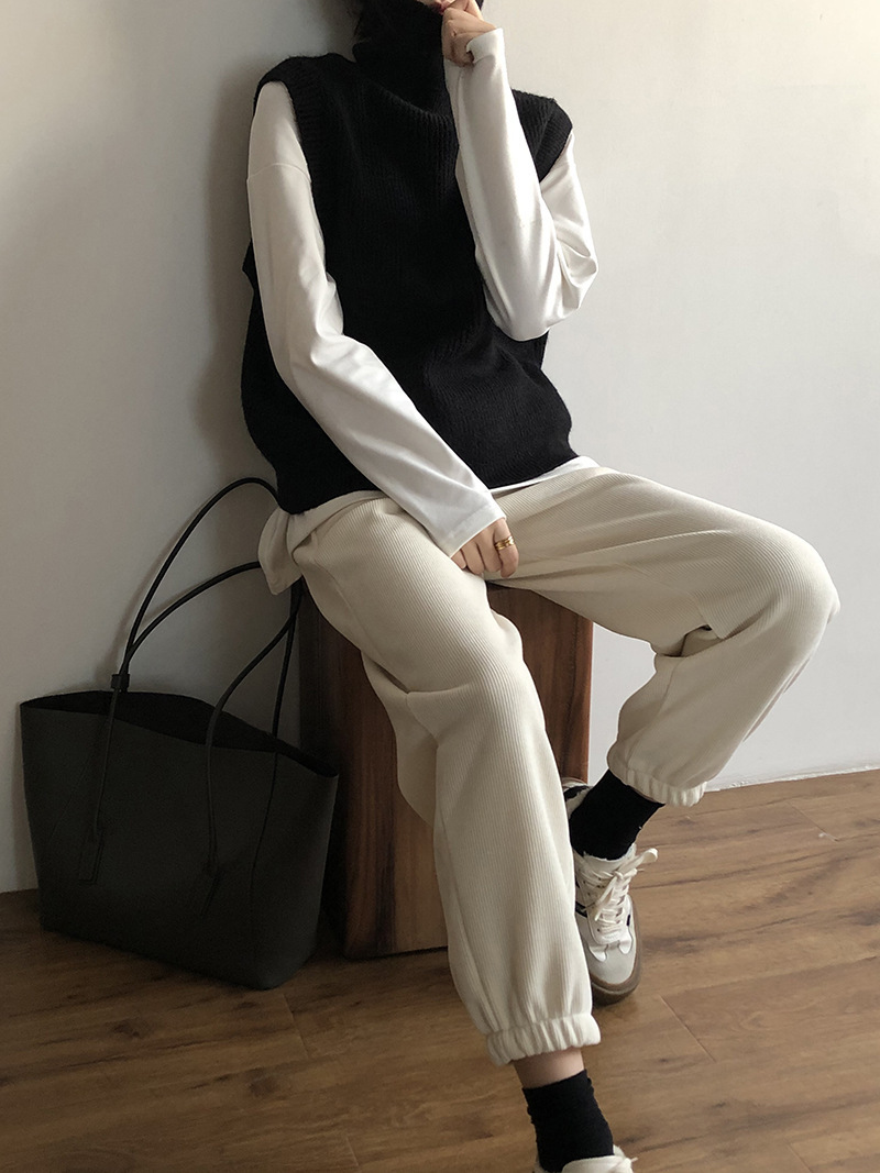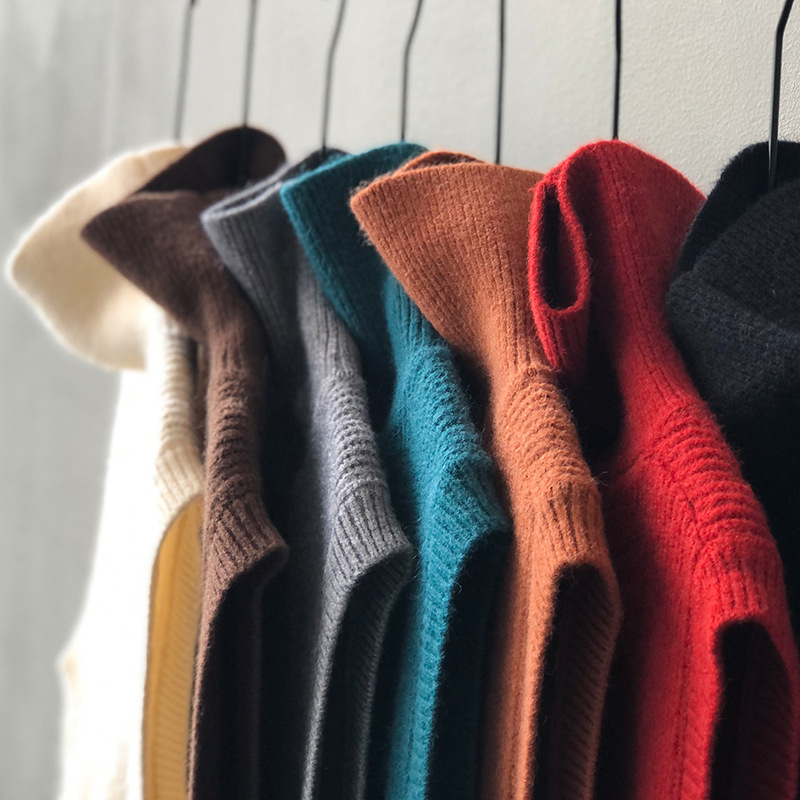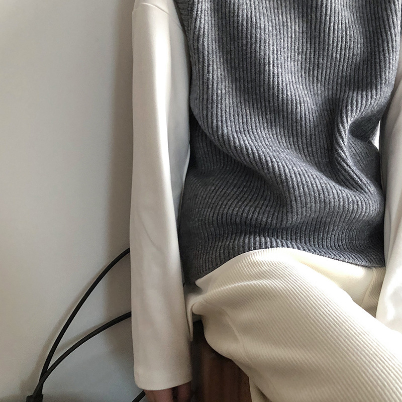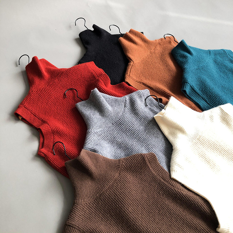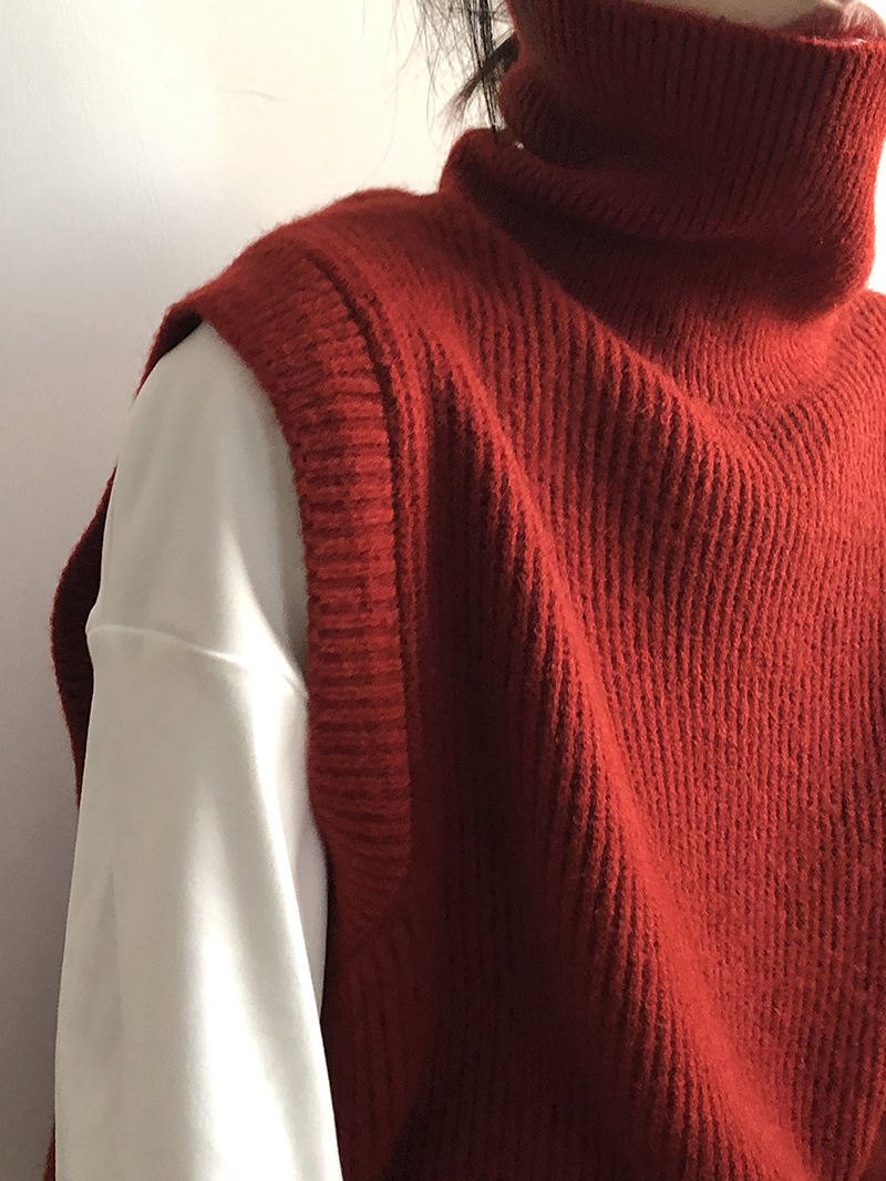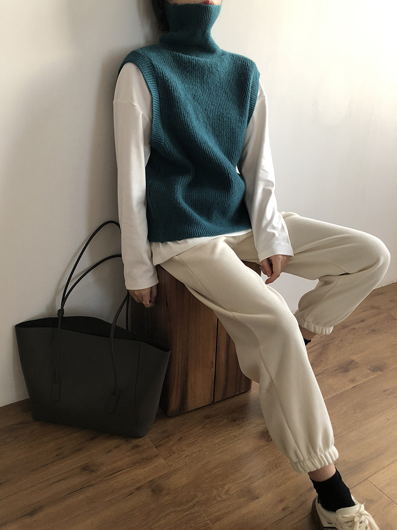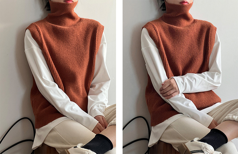 봄과 가을 새로운 국경 여성 니트 조끼 하이 넥 솔리드 컬러 웨이스트 코트 민소매 스웨터 재킷스토어 가기