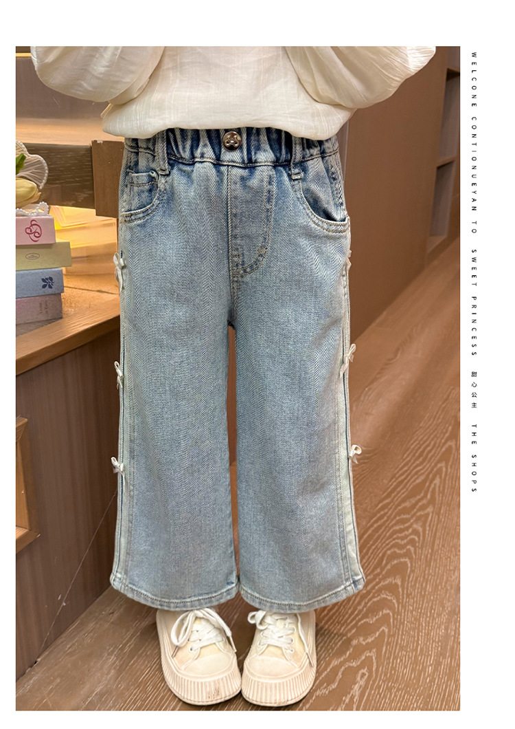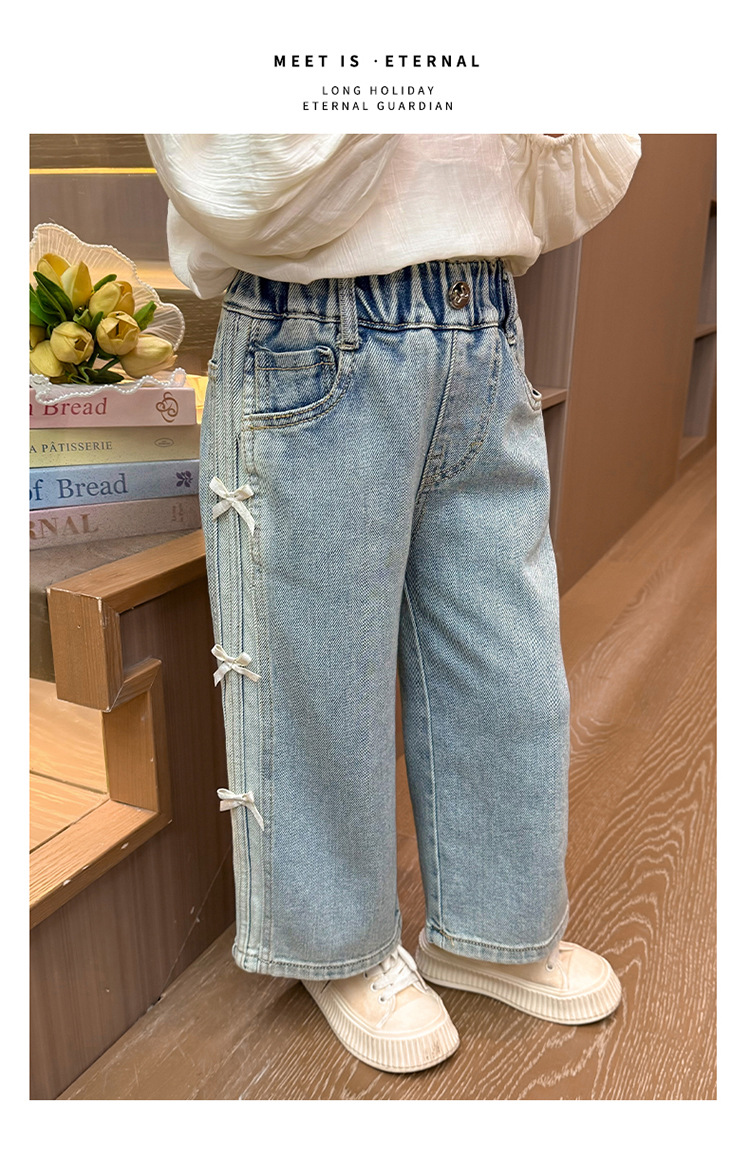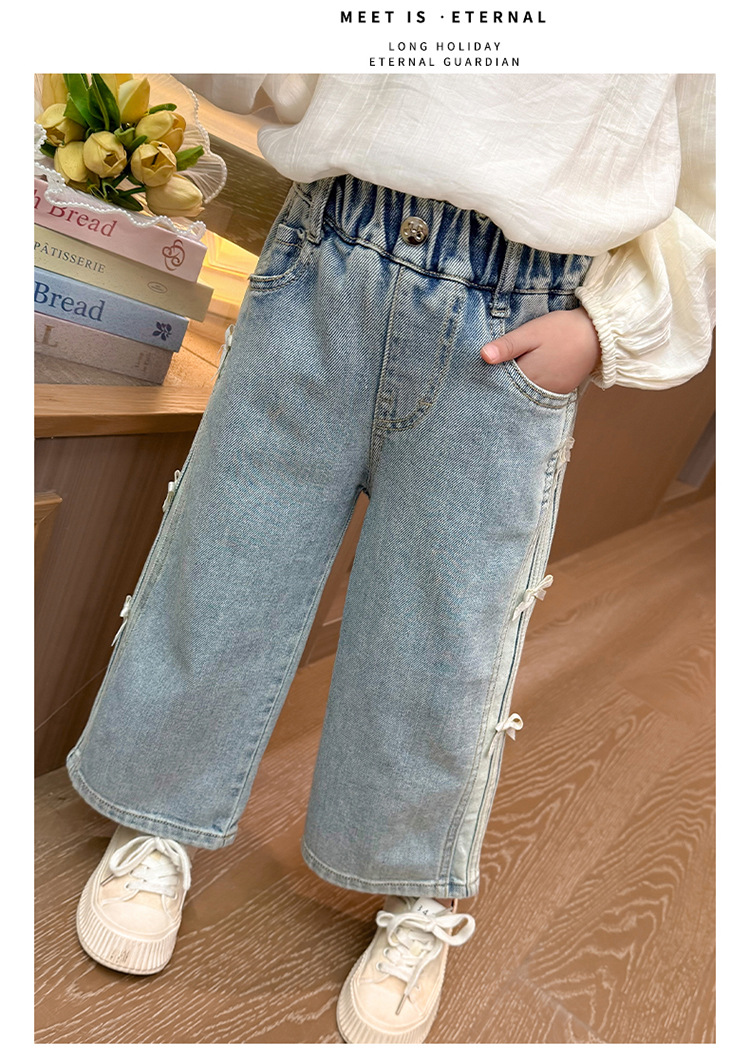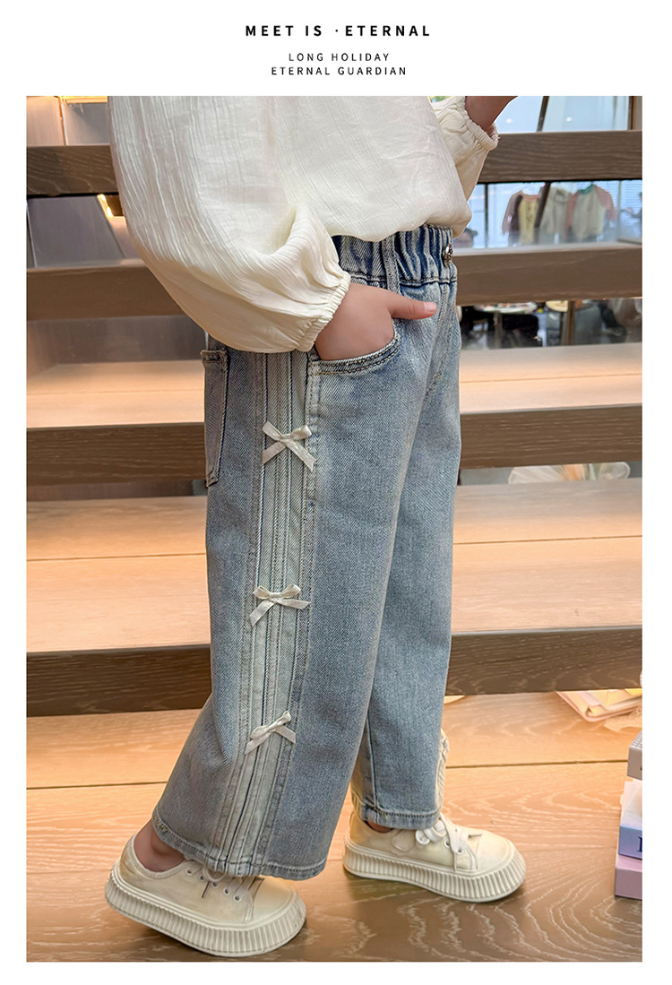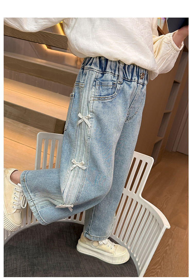소녀 청바지 봄과 가을 2025 새로운 어린이 봄 아기 스트레이트 다리 바지 봄 활 넓은 다리 바지스토어 가기