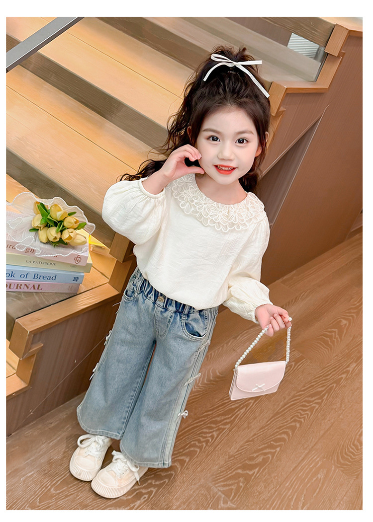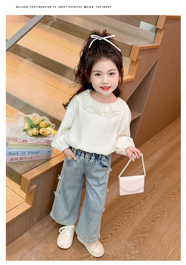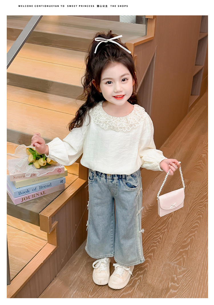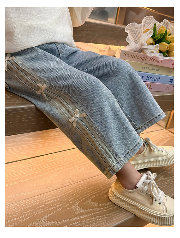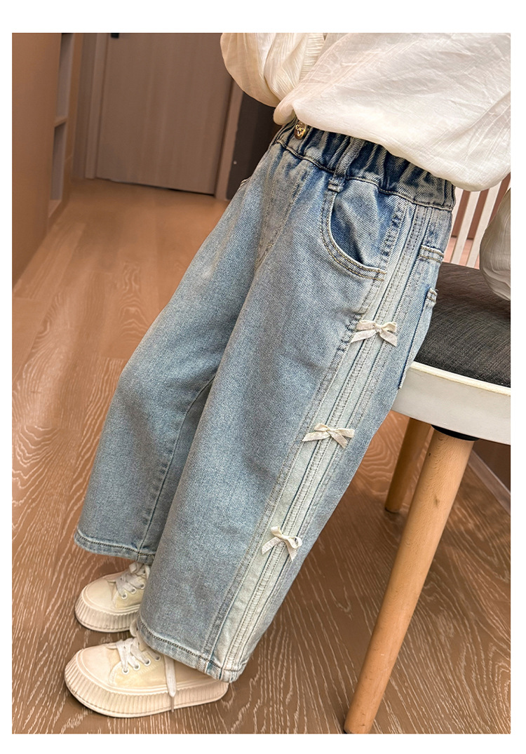 소녀 청바지 봄과 가을 2025 새로운 어린이 봄 아기 스트레이트 다리 바지 봄 활 넓은 다리 바지스토어 가기