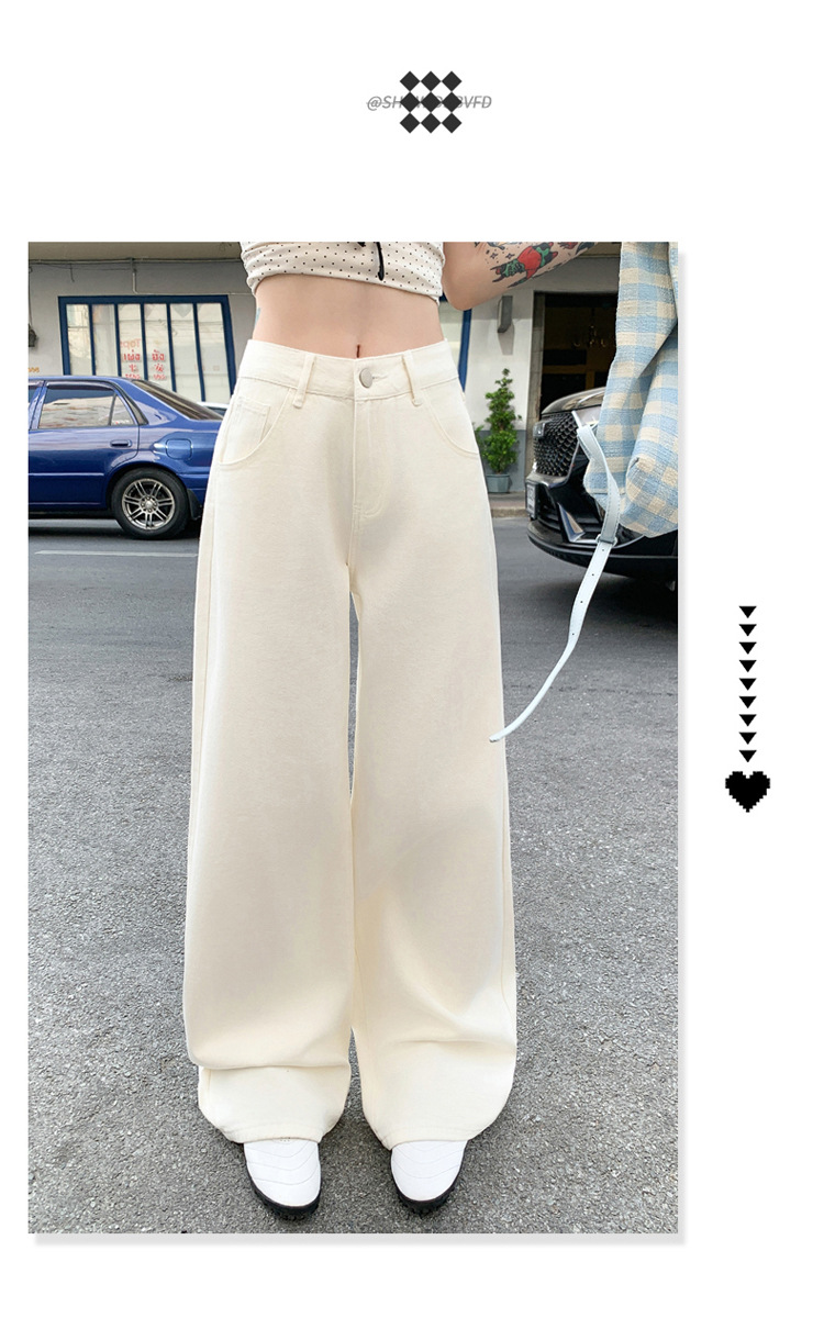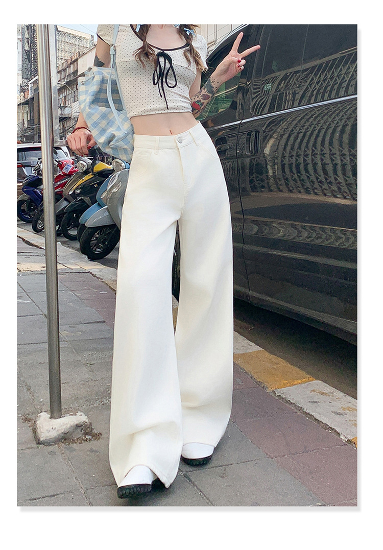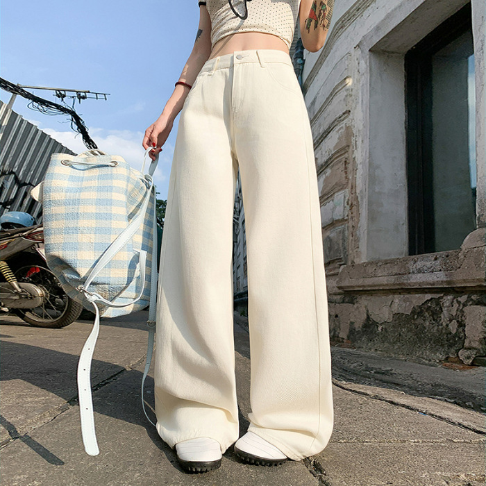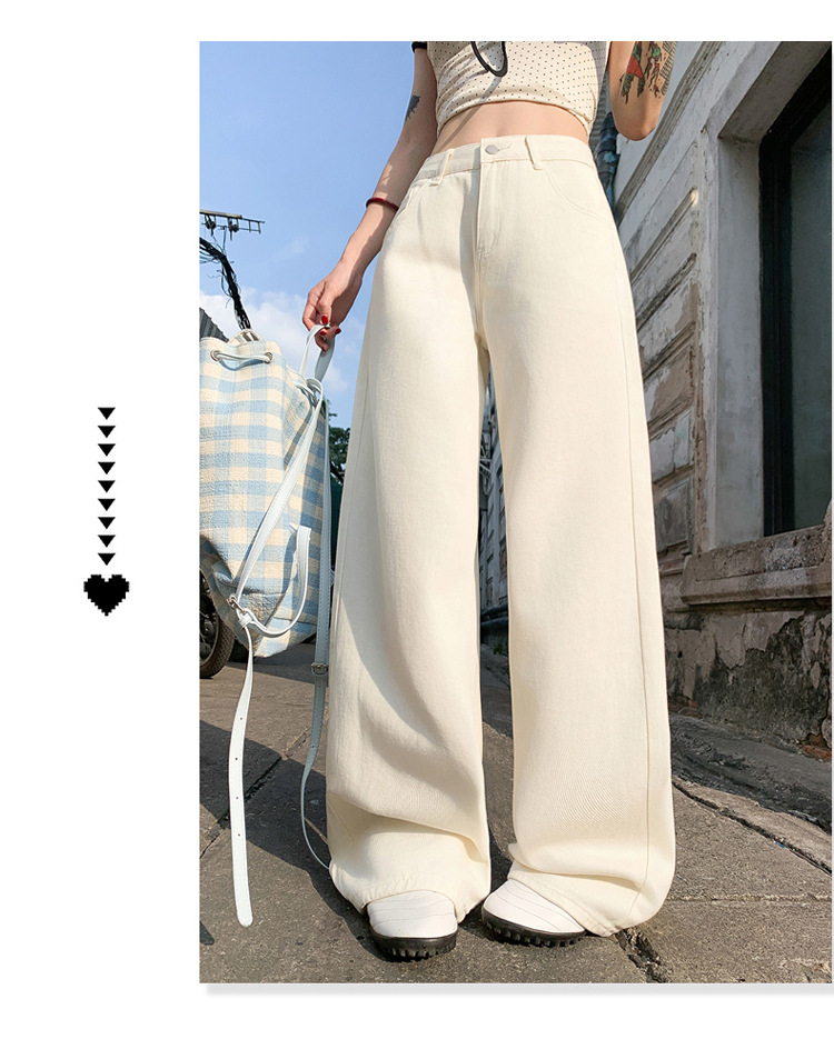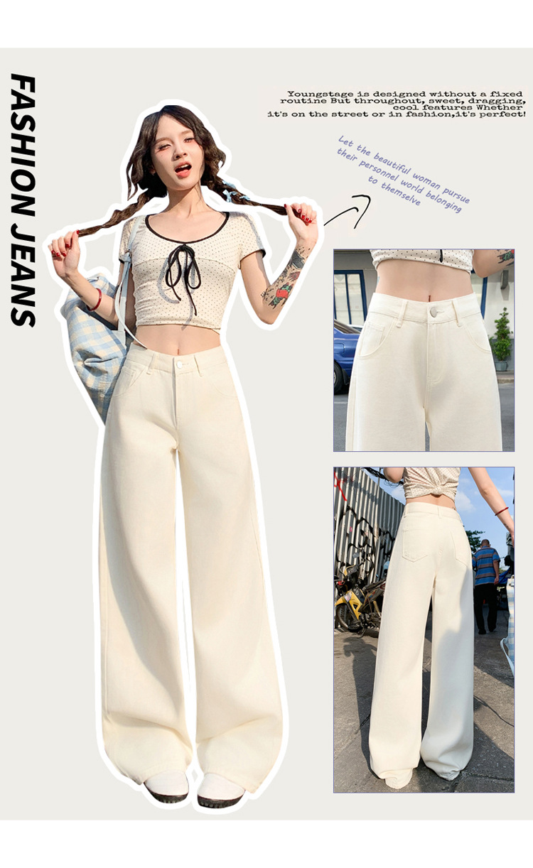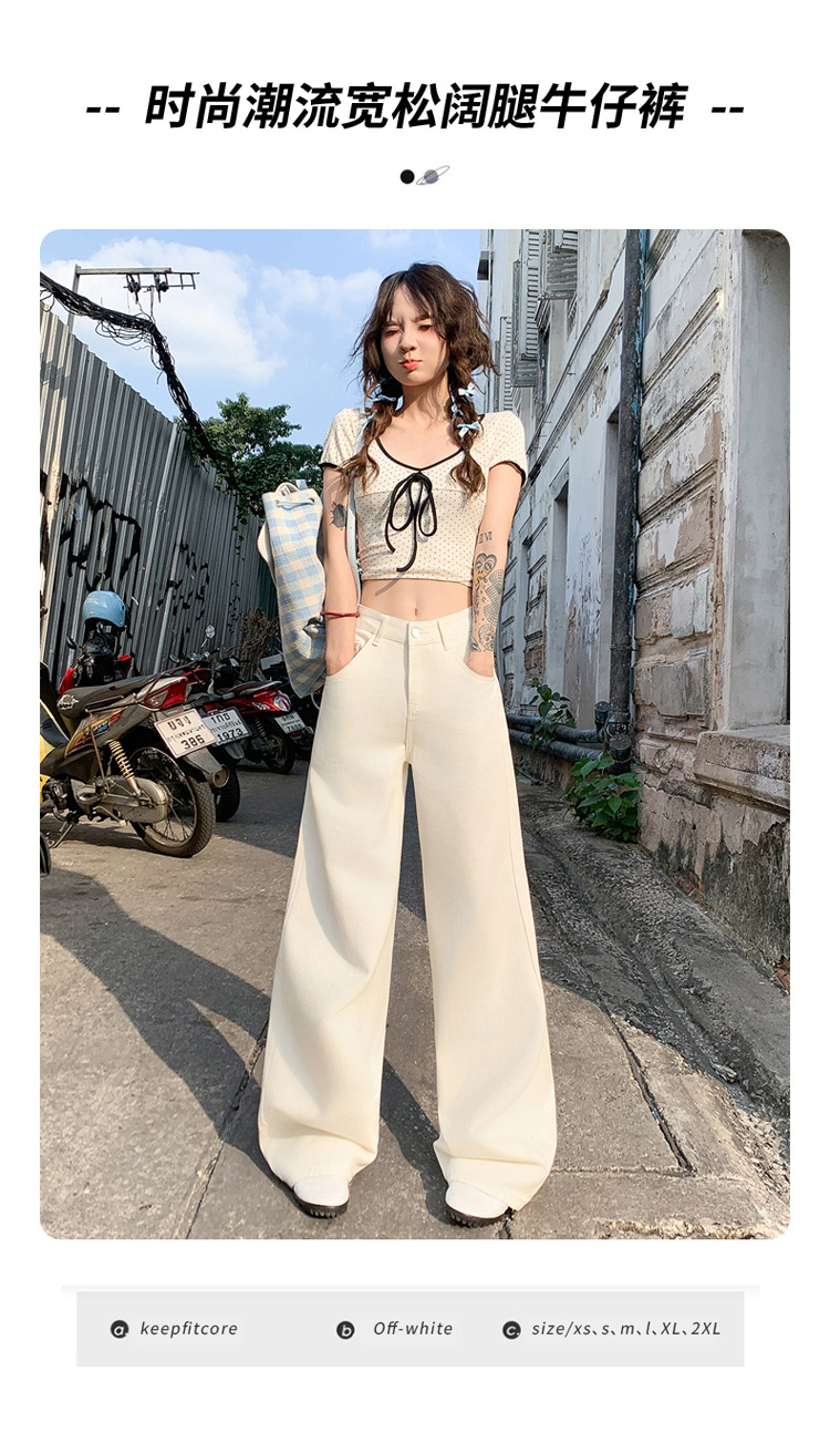 미국 캐주얼 하이 허리 라이스 화이트 와이드 다리 청바지 여성의 봄과 여름 2025 새로운 루즈 딥 스트레이트 팬츠스토어 가기