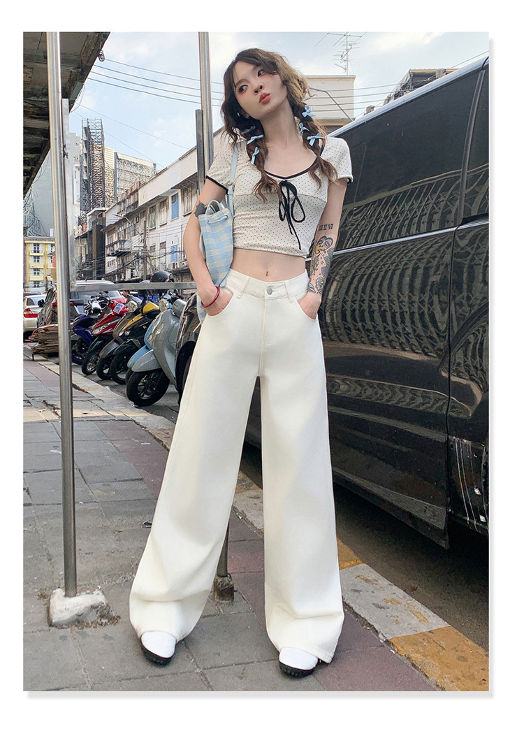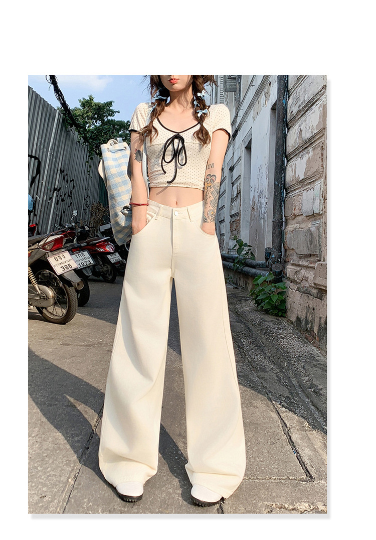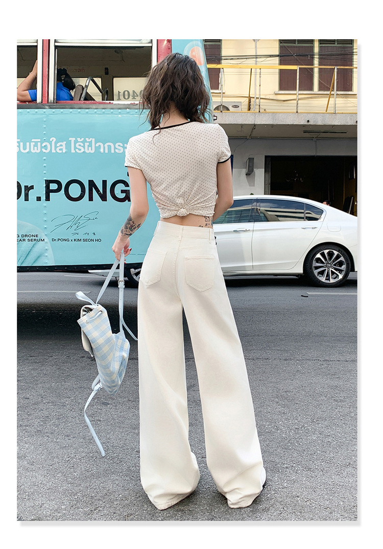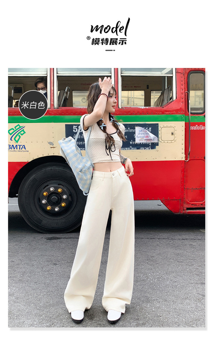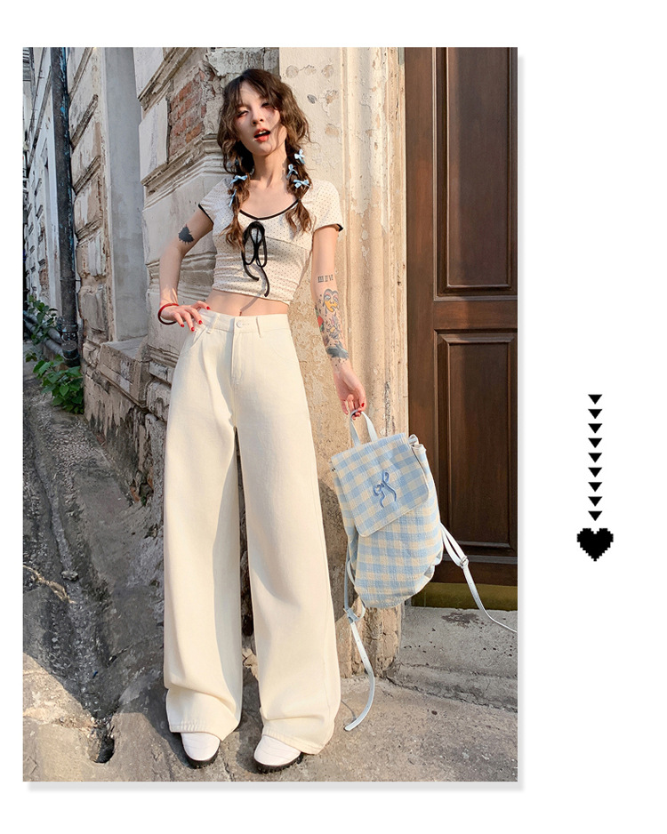 미국 캐주얼 하이 허리 라이스 화이트 와이드 다리 청바지 여성의 봄과 여름 2025 새로운 루즈 딥 스트레이트 팬츠스토어 가기