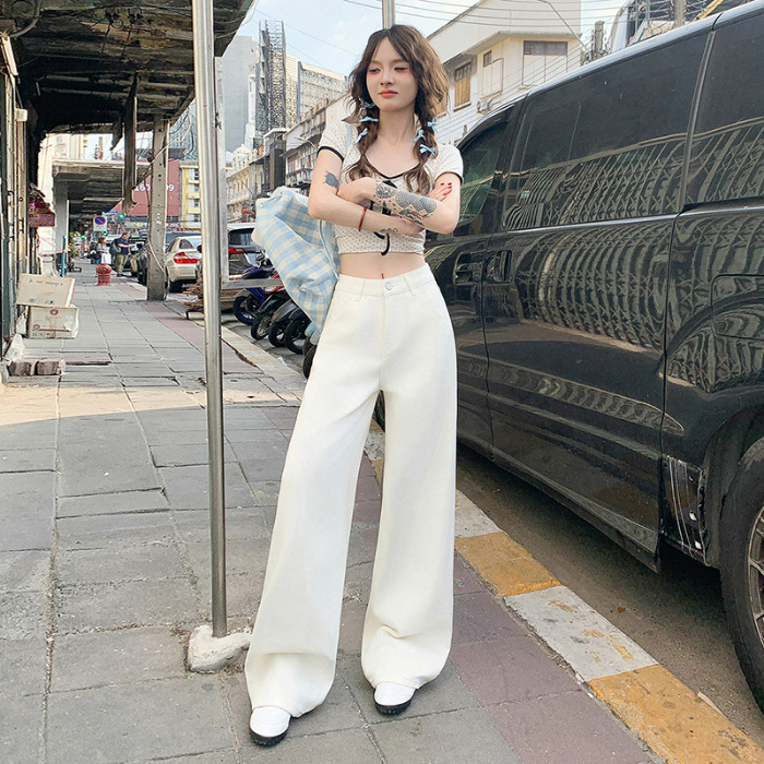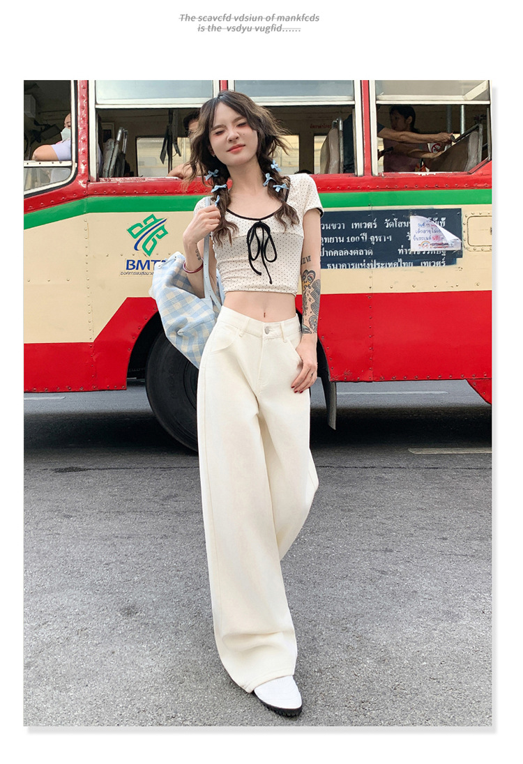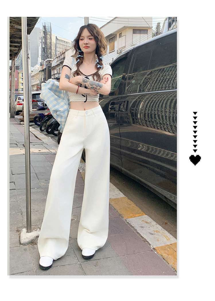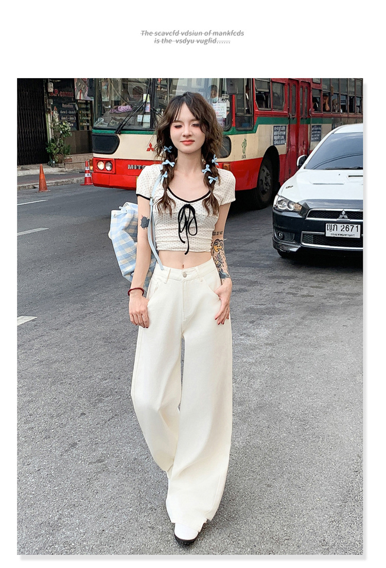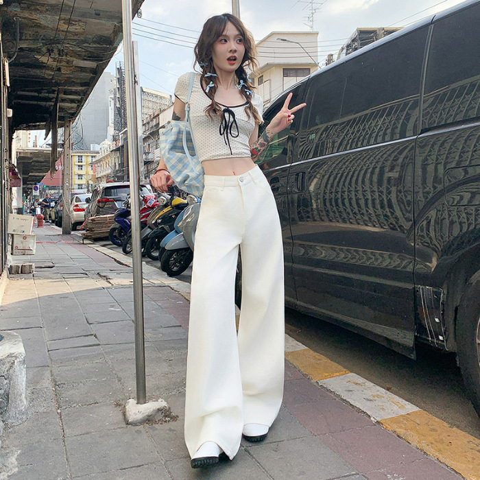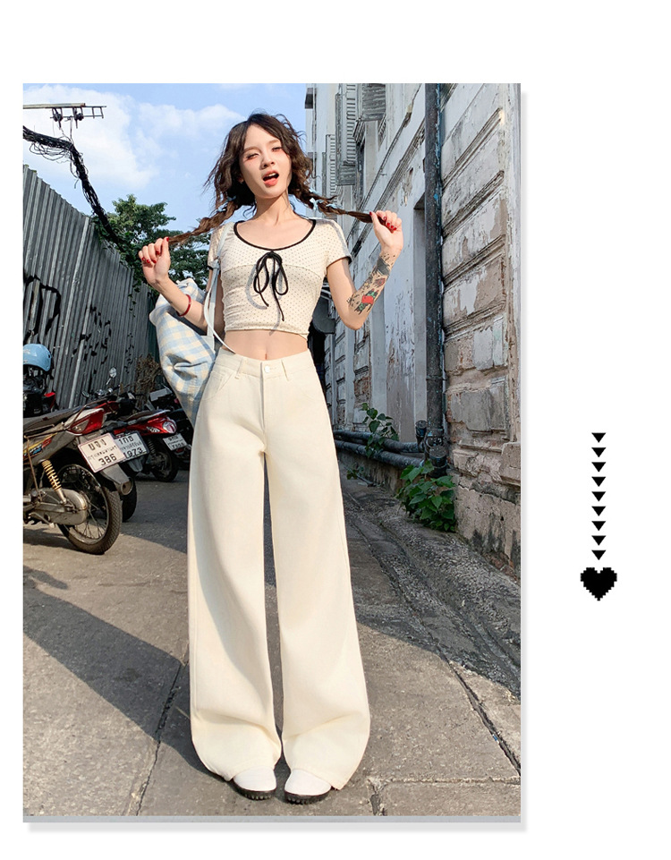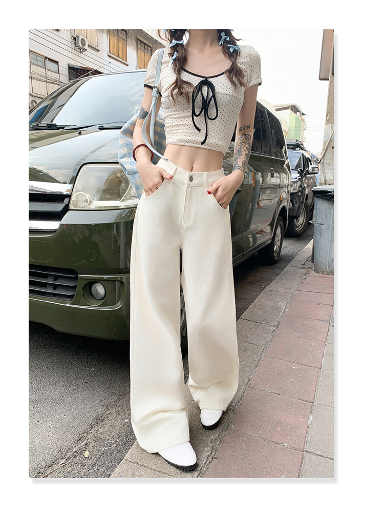 미국 캐주얼 하이 허리 라이스 화이트 와이드 다리 청바지 여성의 봄과 여름 2025 새로운 루즈 딥 스트레이트 팬츠스토어 가기