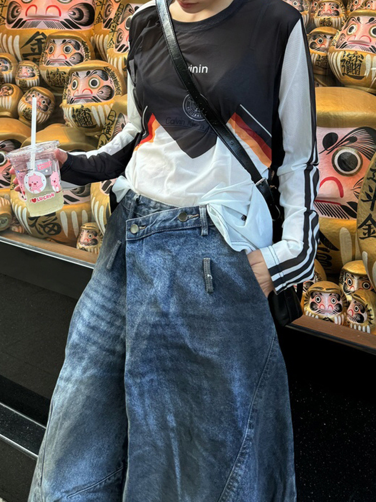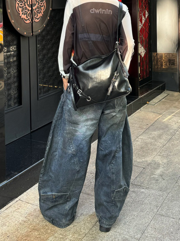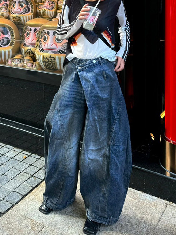 아메리칸 스타일 하이 스트리트 디자인 센스 반전 허리 청바지 남성 2025 년 봄과 가을 새로운 복고풍 오래 된 걸레 바지스토어 가기