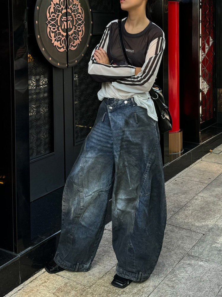 아메리칸 스타일 하이 스트리트 디자인 센스 반전 허리 청바지 남성 2025 년 봄과 가을 새로운 복고풍 오래 된 걸레 바지