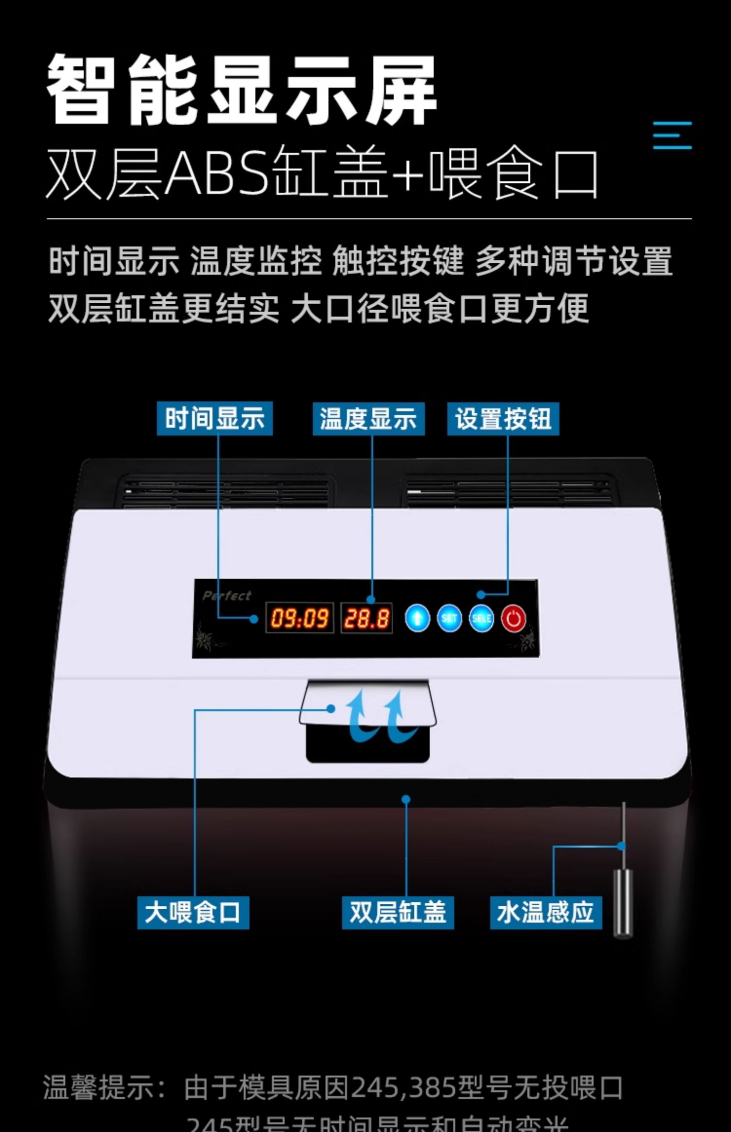 • 465 디럭스 버전 + 온도 표시 가열 및 항온 + 타이머 7색 조명 + 먹이주기 포트 + 무료 선물 패키지