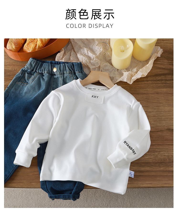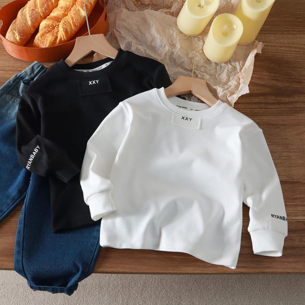 어린이 속옷 봄과 가을베이스 새로운 스타일 아기 싱글 탑 큰 어린이 둥근 목 긴 소매 가을 옷 소년 소녀 티셔츠스토어 가기