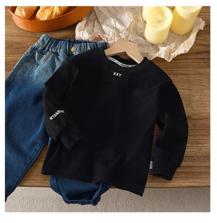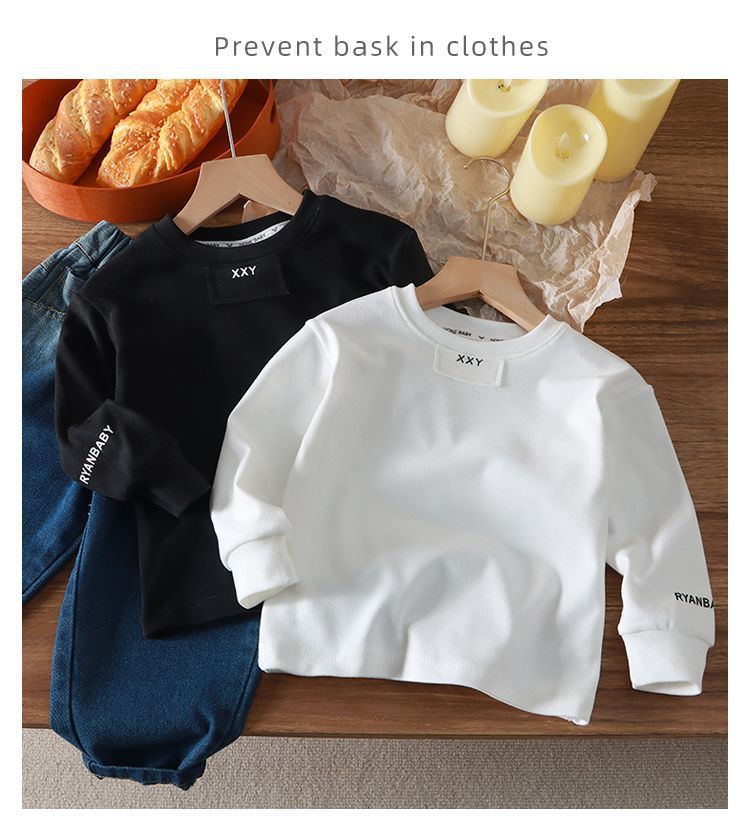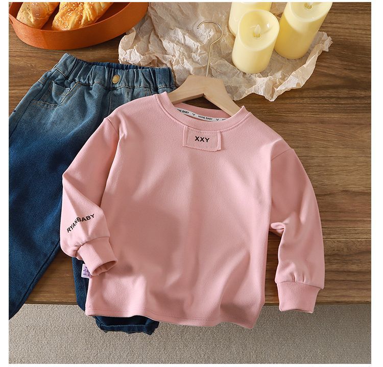 어린이 속옷 봄과 가을베이스 새로운 스타일 아기 싱글 탑 큰 어린이 둥근 목 긴 소매 가을 옷 소년 소녀 티셔츠