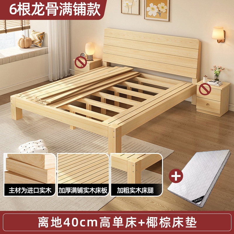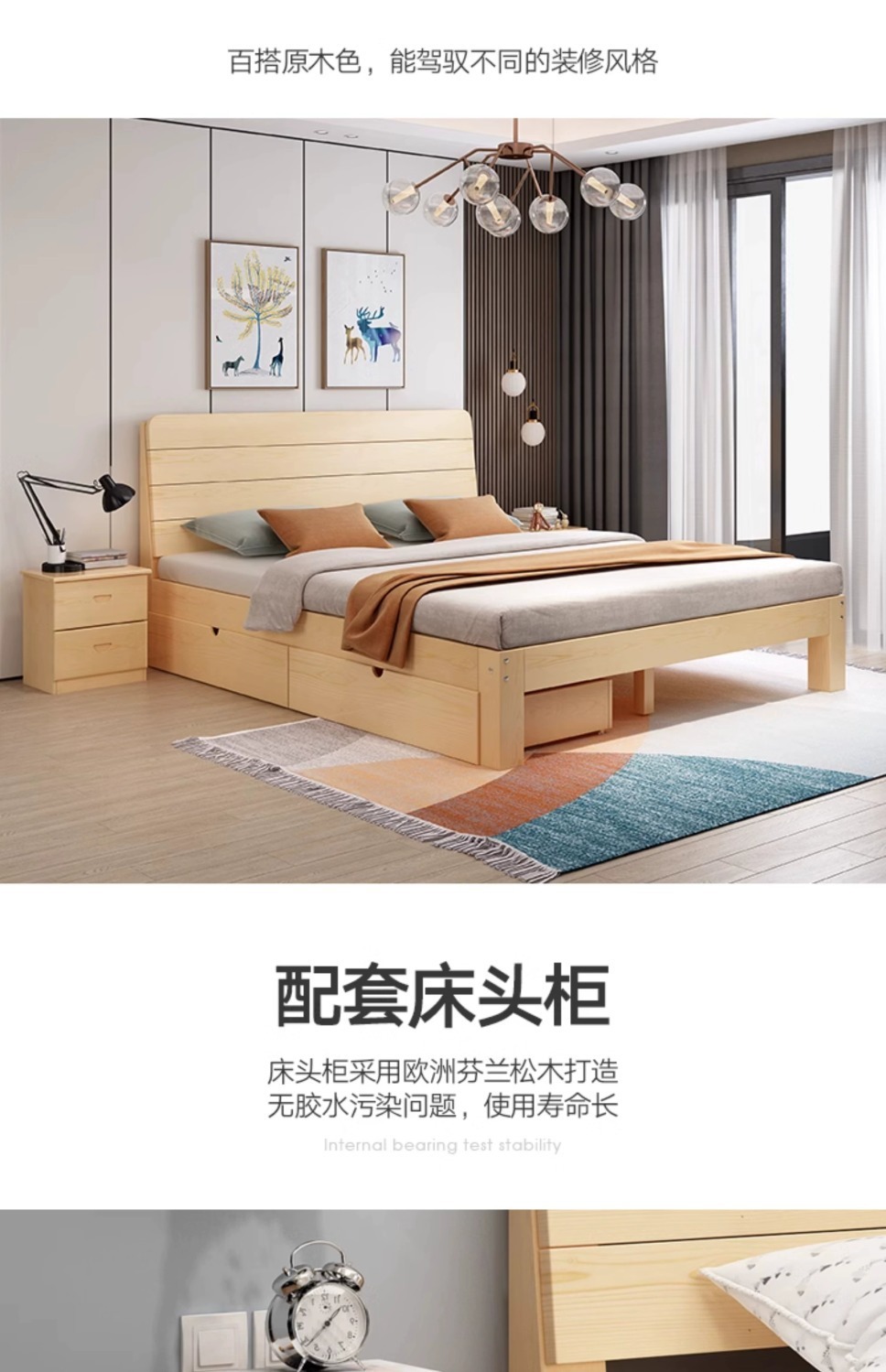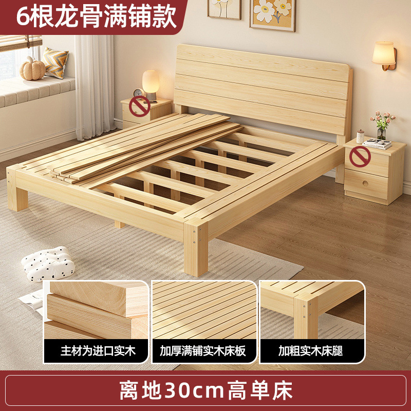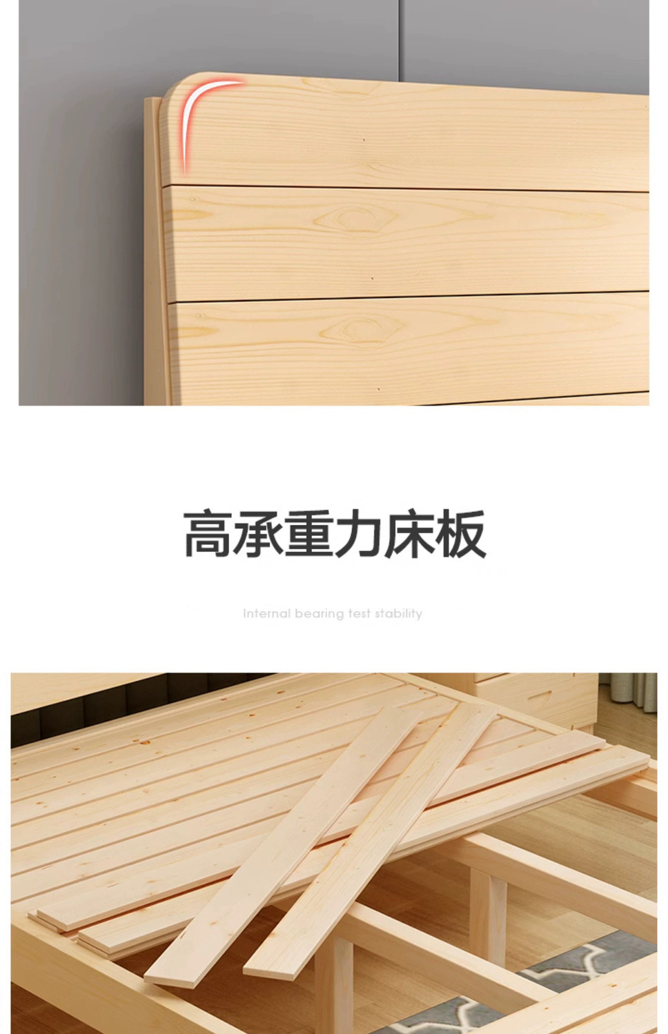 단단한 나무 침대 1.5 m 소나무 간단한 현대 1.8 m 가구 더블 침대 경제적 인 임대 방 1 싱글 침대 프레임스토어 가기