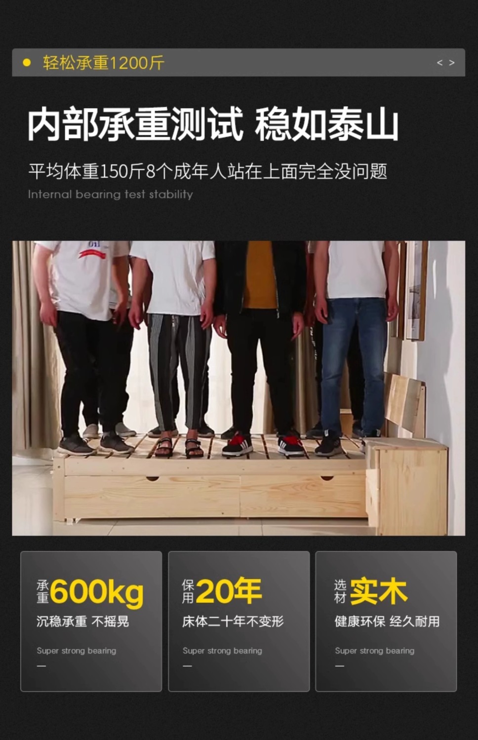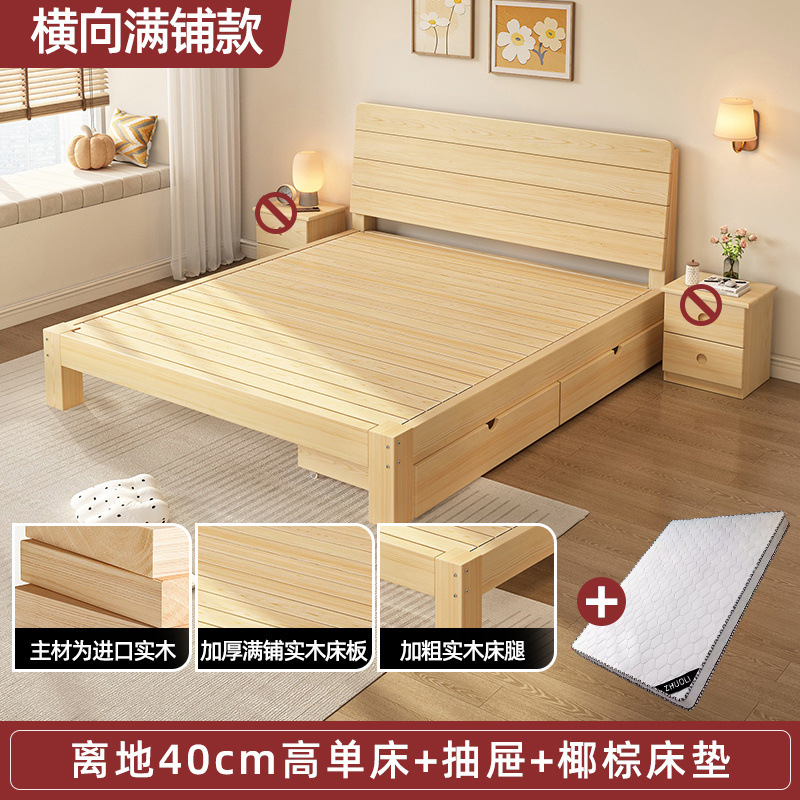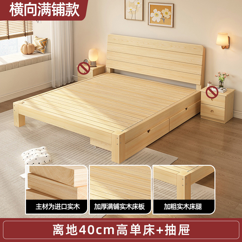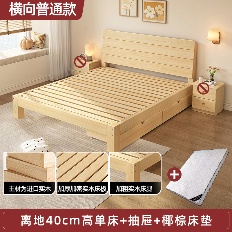 단단한 나무 침대 1.5 m 소나무 간단한 현대 1.8 m 가구 더블 침대 경제적 인 임대 방 1 싱글 침대 프레임스토어 가기