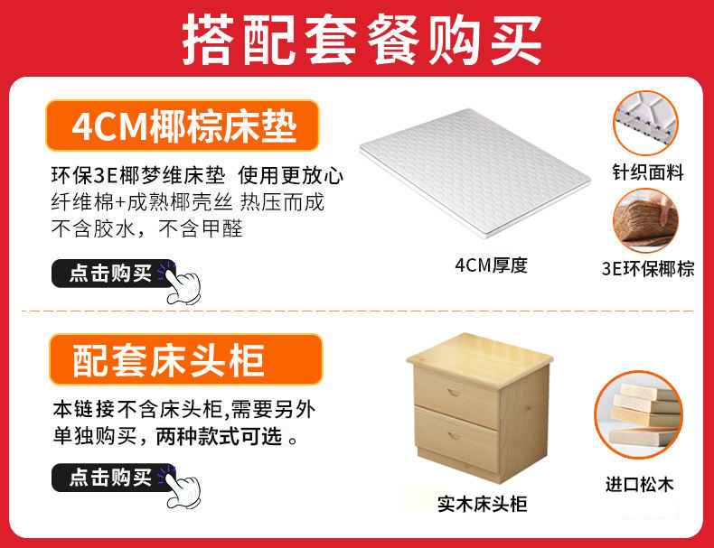 단단한 나무 침대 1.5 m 소나무 간단한 현대 1.8 m 가구 더블 침대 경제적 인 임대 방 1 싱글 침대 프레임