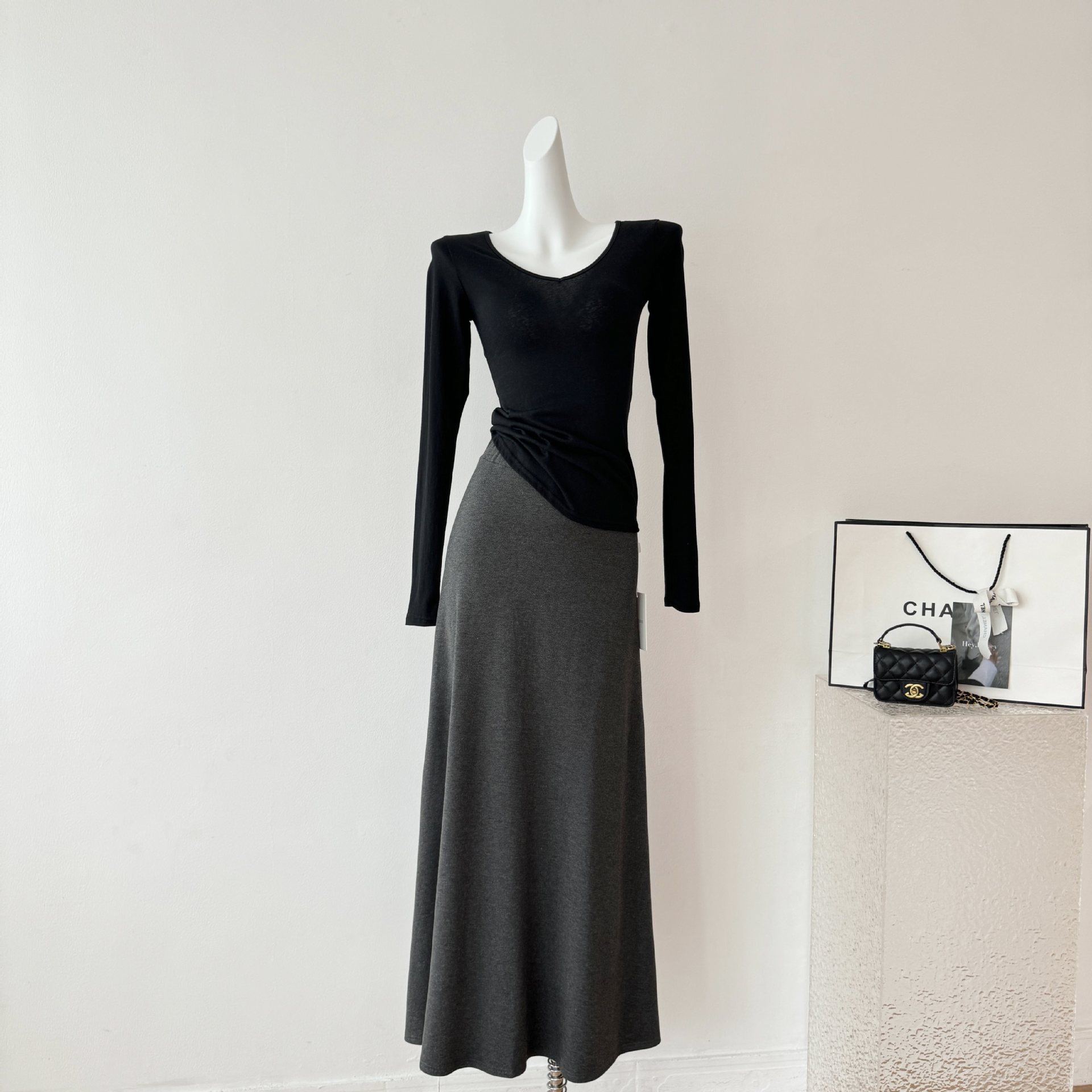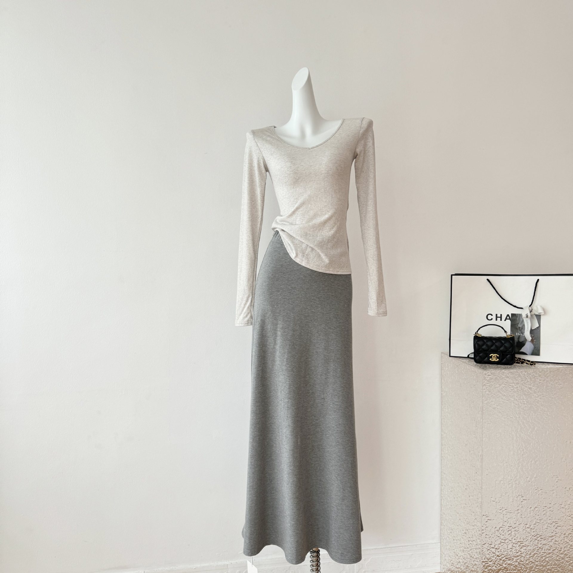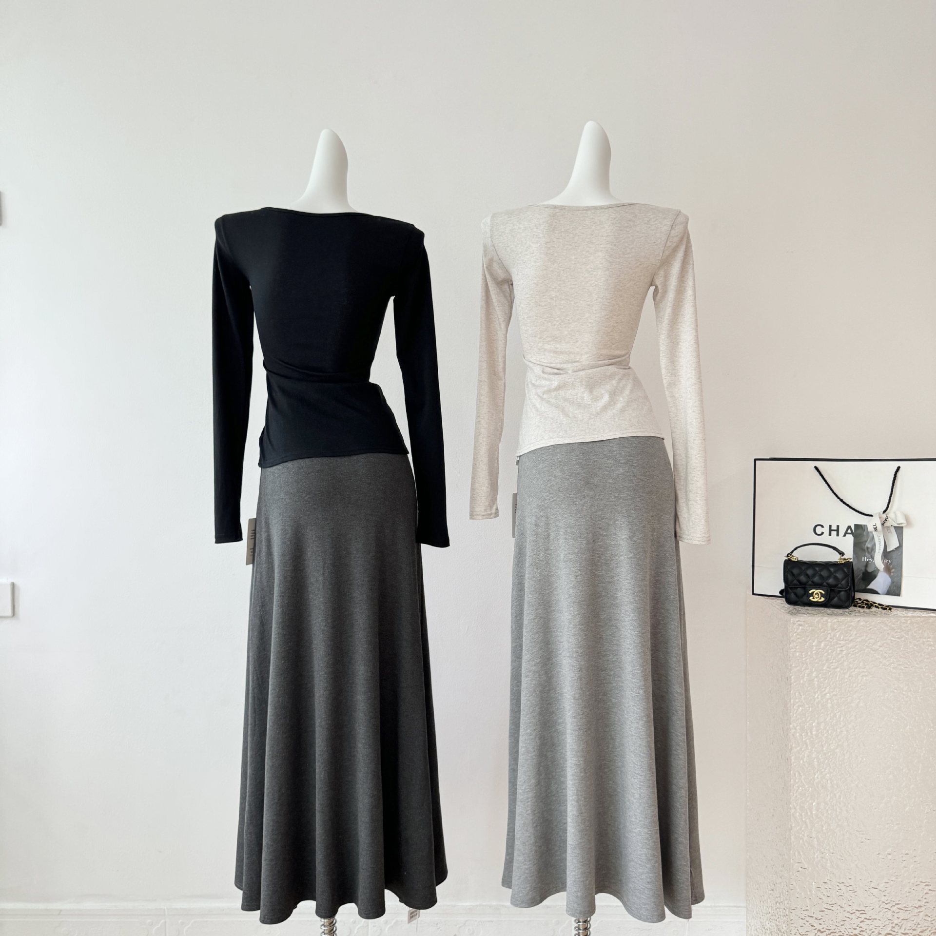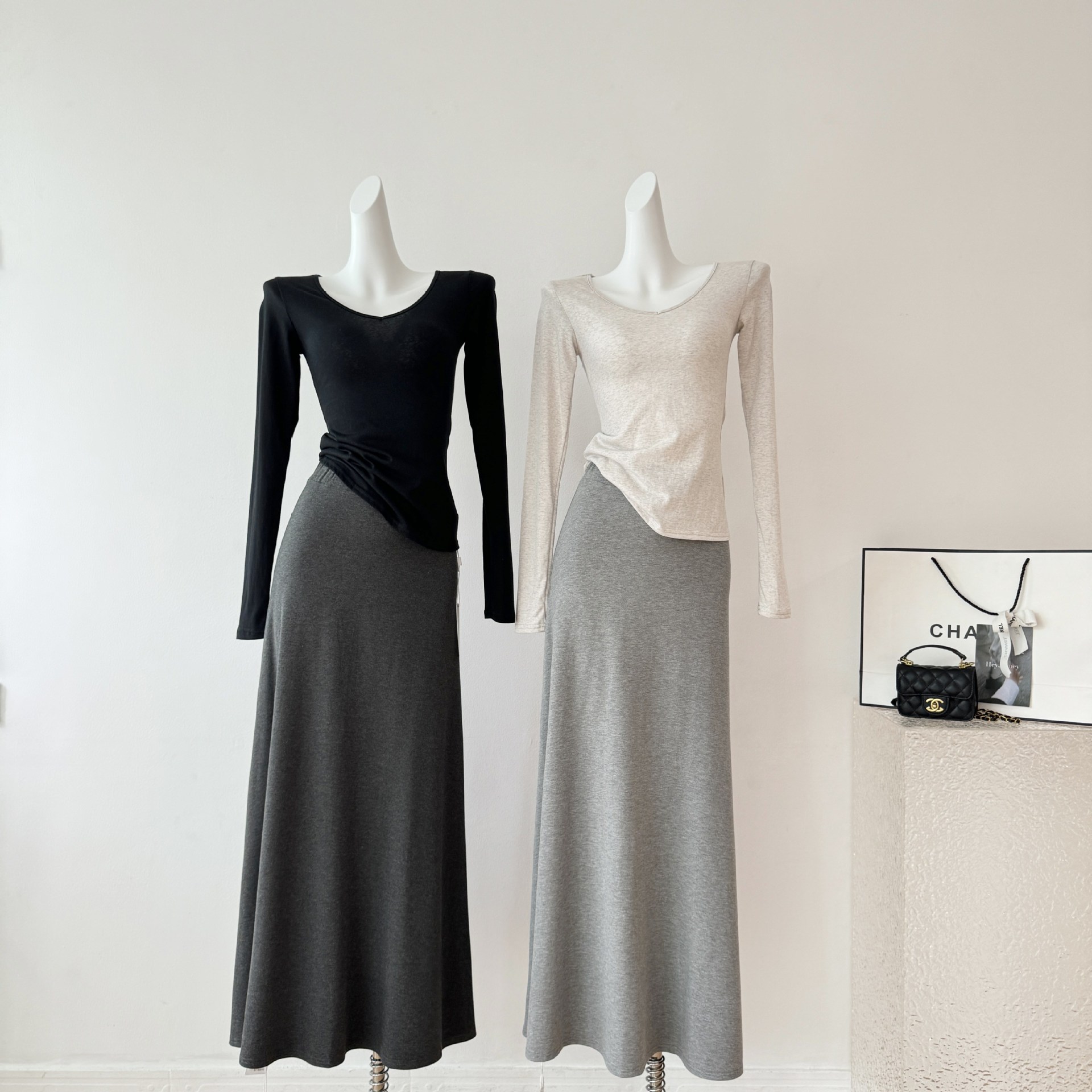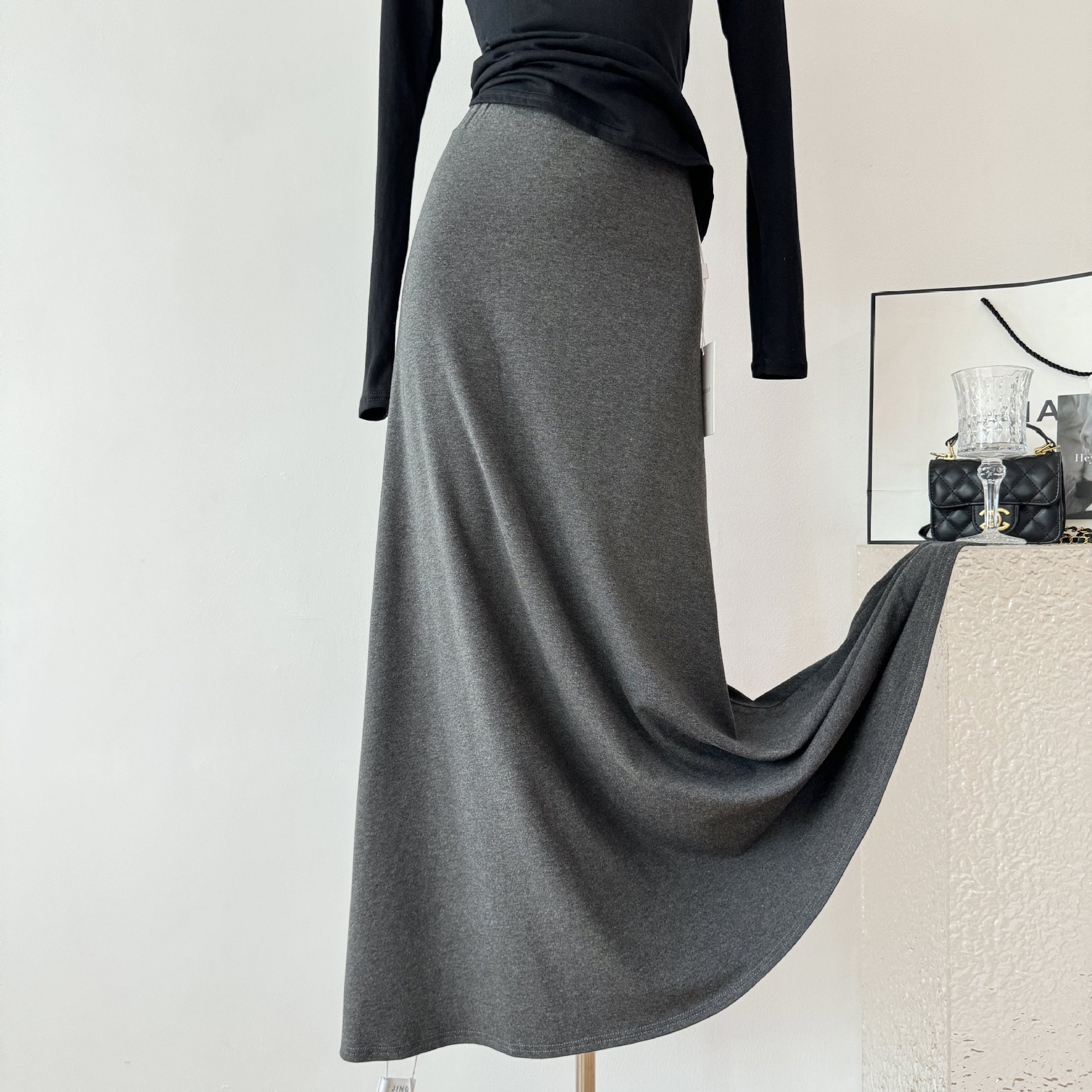Terai 2025 스커트 여자 여름 더미 스크럽 느슨한 올 매치 소프트 왁스 캐주얼 심플 그레이 A 라인 스커트