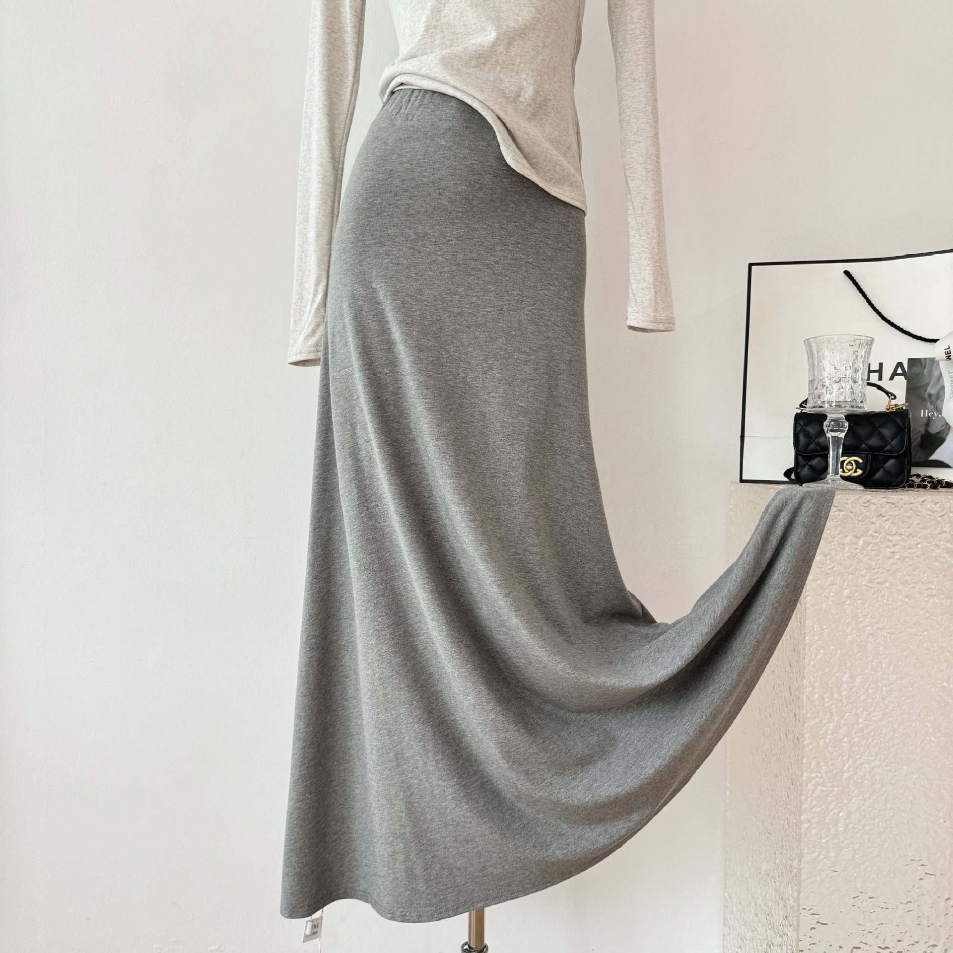 Terai 2025 스커트 여자 여름 더미 스크럽 느슨한 올 매치 소프트 왁스 캐주얼 심플 그레이 A 라인 스커트스토어 가기