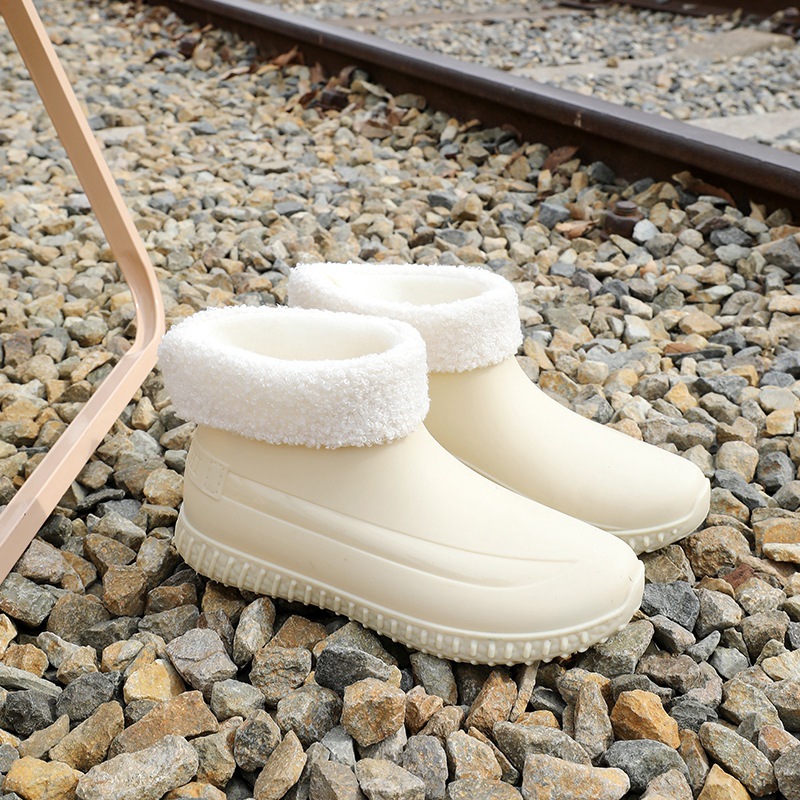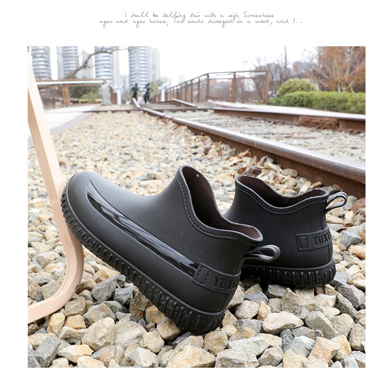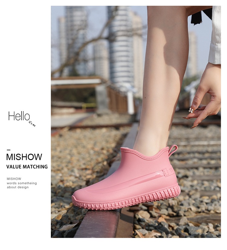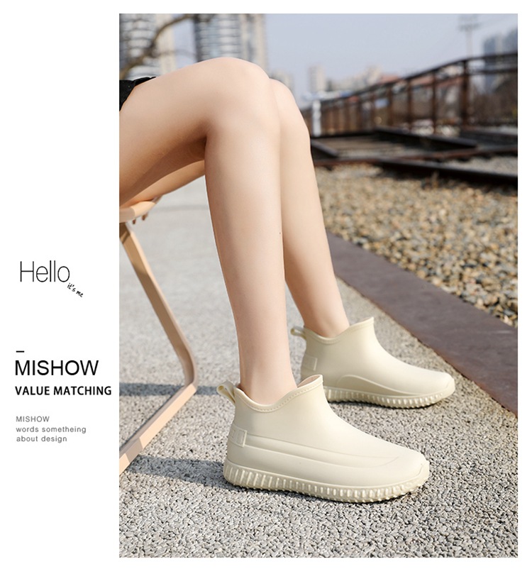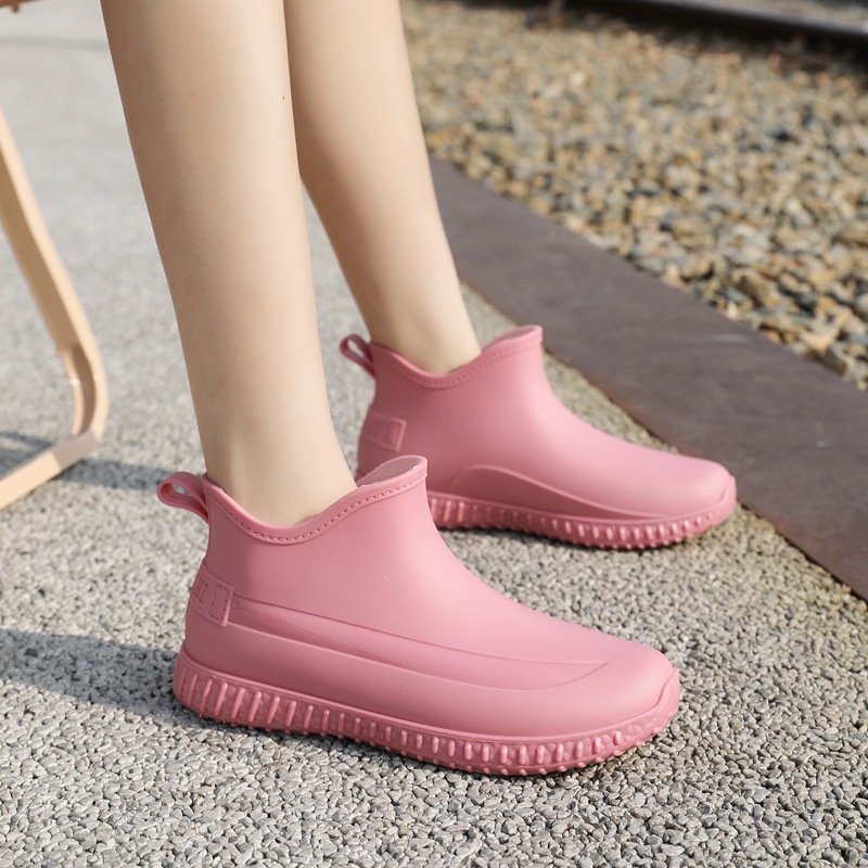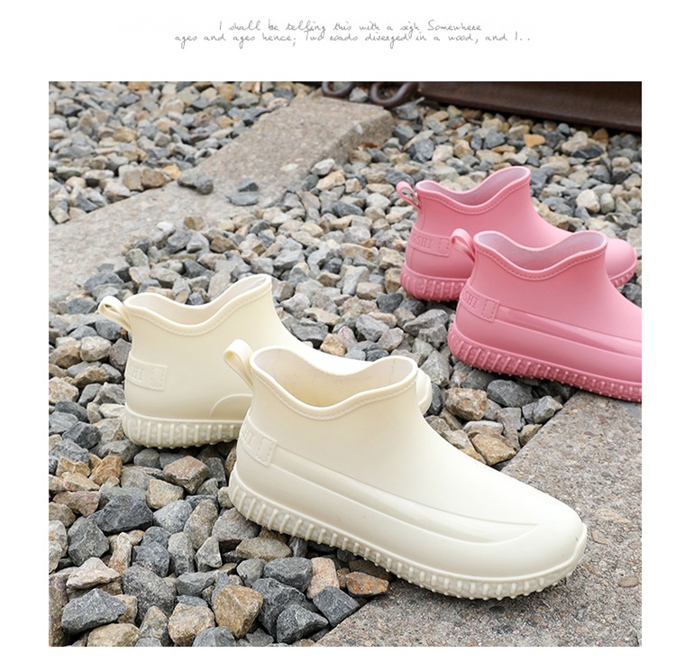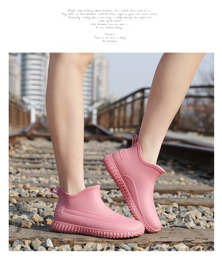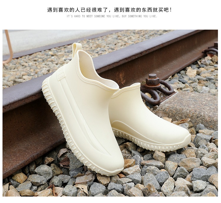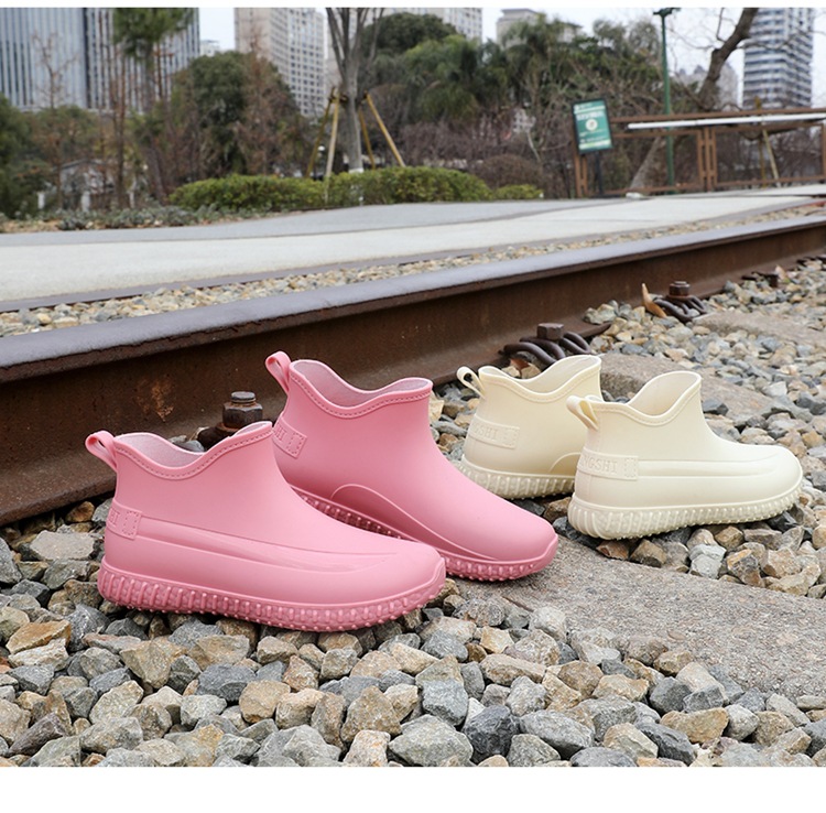 새로운 일본 스타일 간단한 짧은 장화 여성용 여름 방수 미끄럼 방지 두꺼운 바닥 사이버 유명 패션 착용 방지 고무 신발 워터 부츠스토어 가기