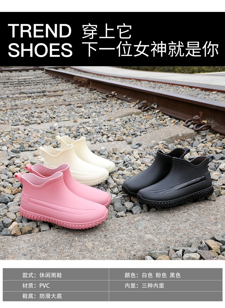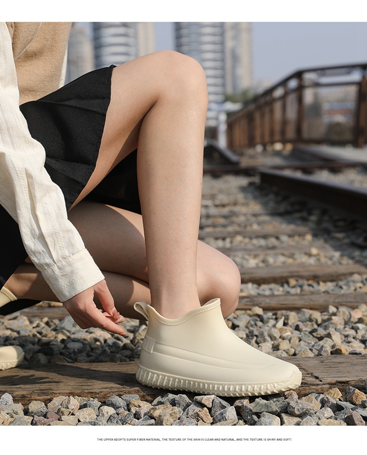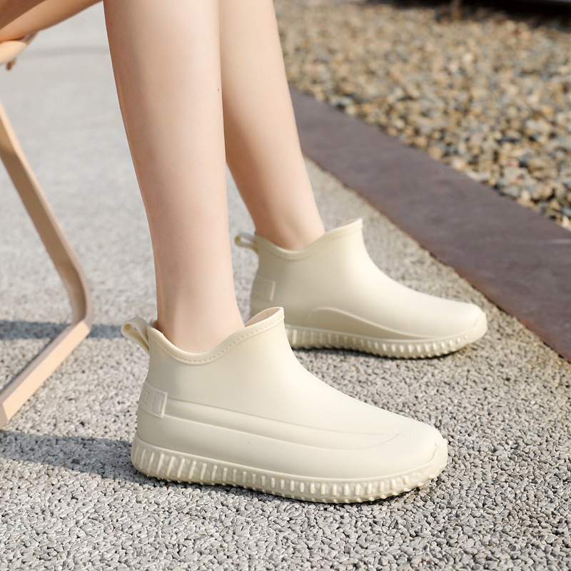 새로운 일본 스타일 간단한 짧은 장화 여성용 여름 방수 미끄럼 방지 두꺼운 바닥 사이버 유명 패션 착용 방지 고무 신발 워터 부츠