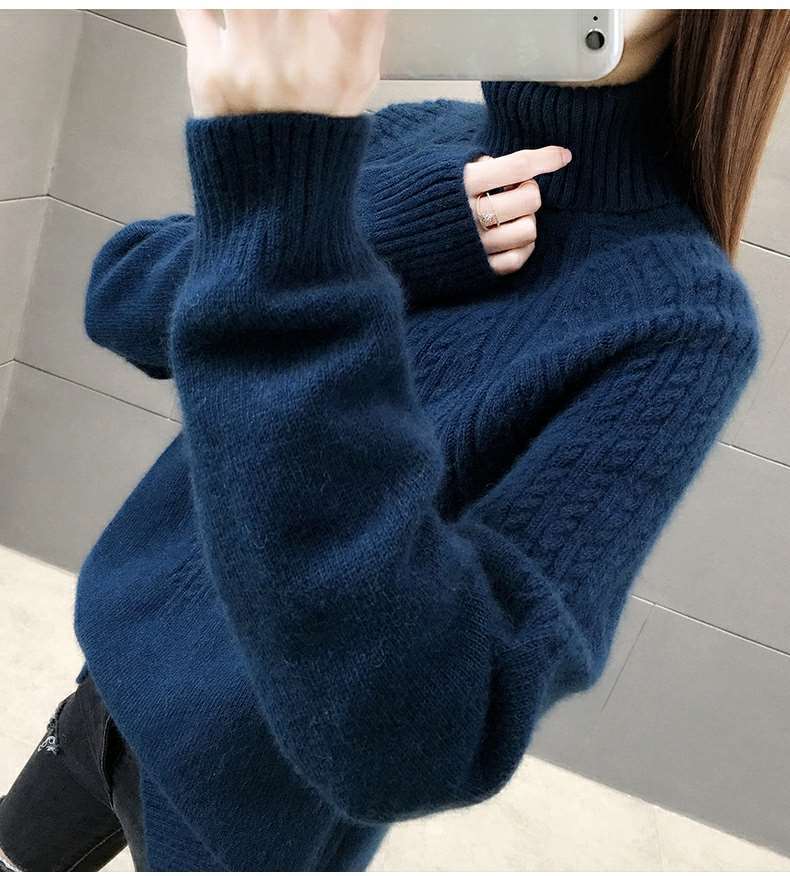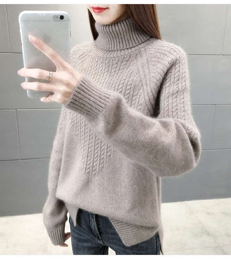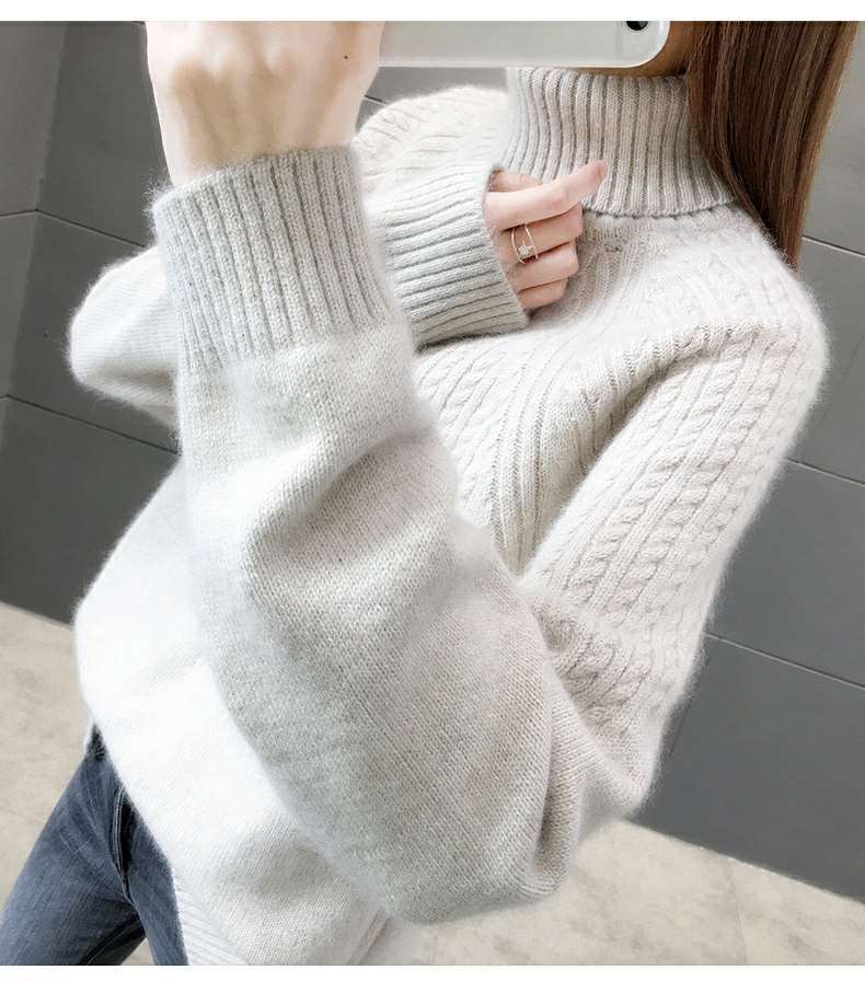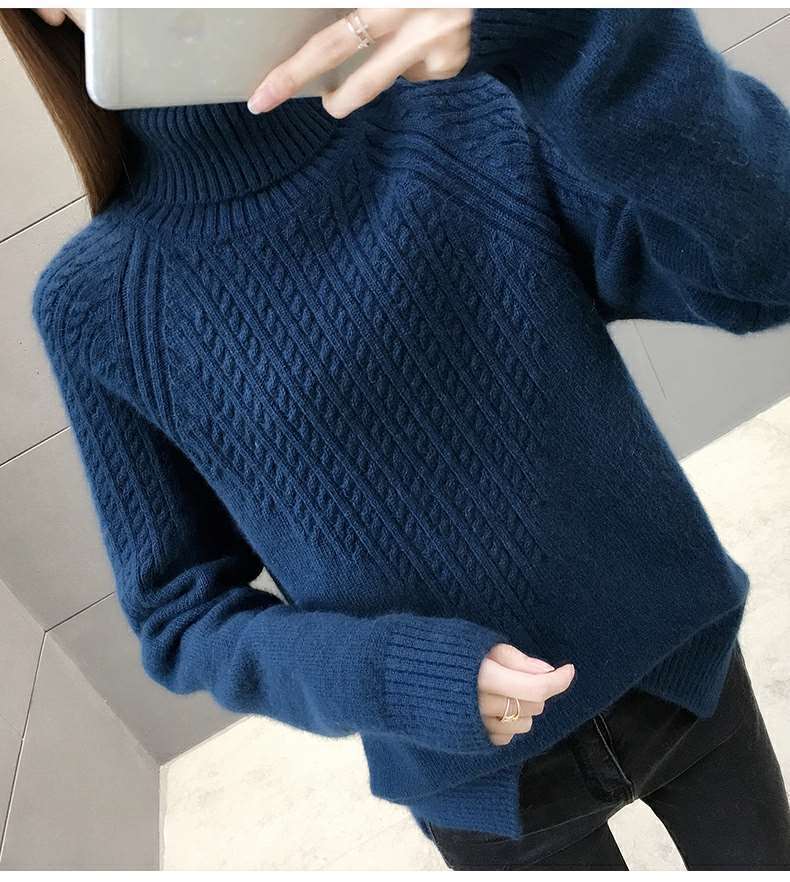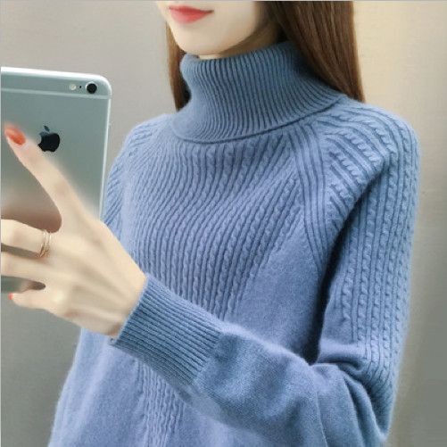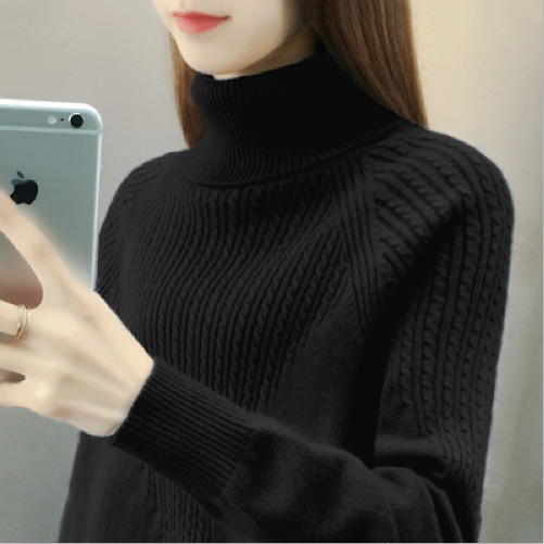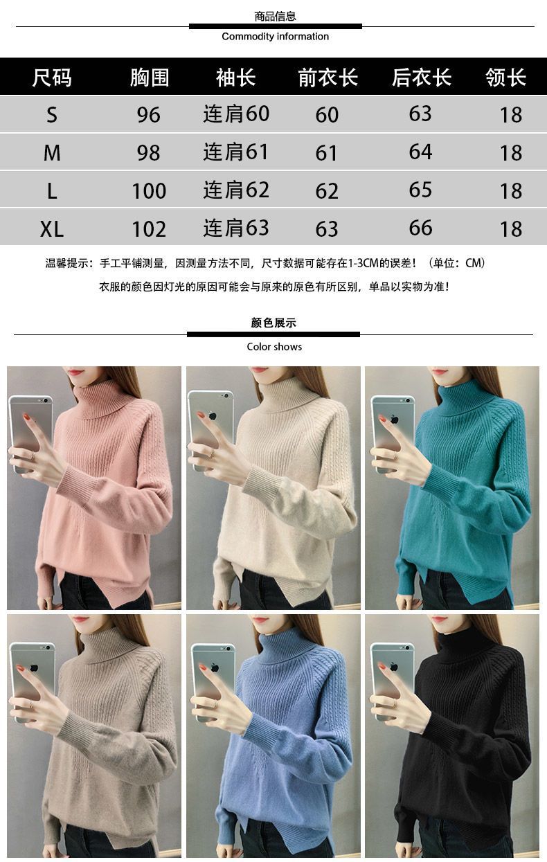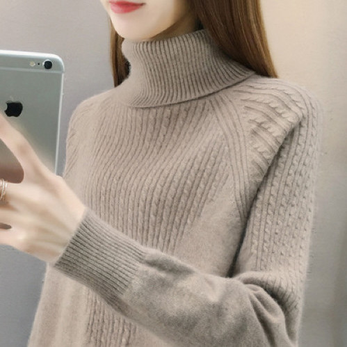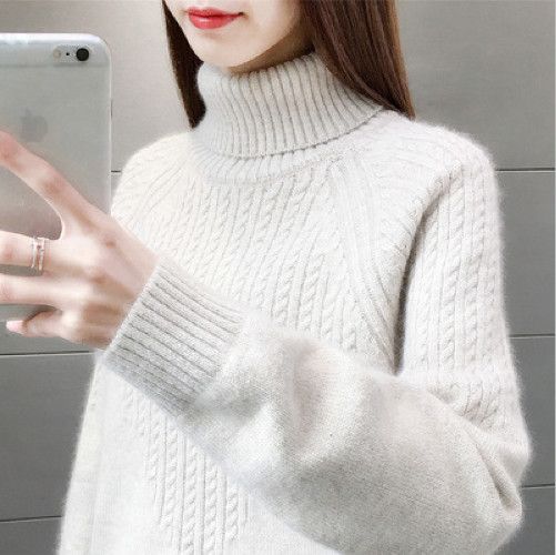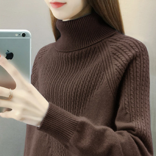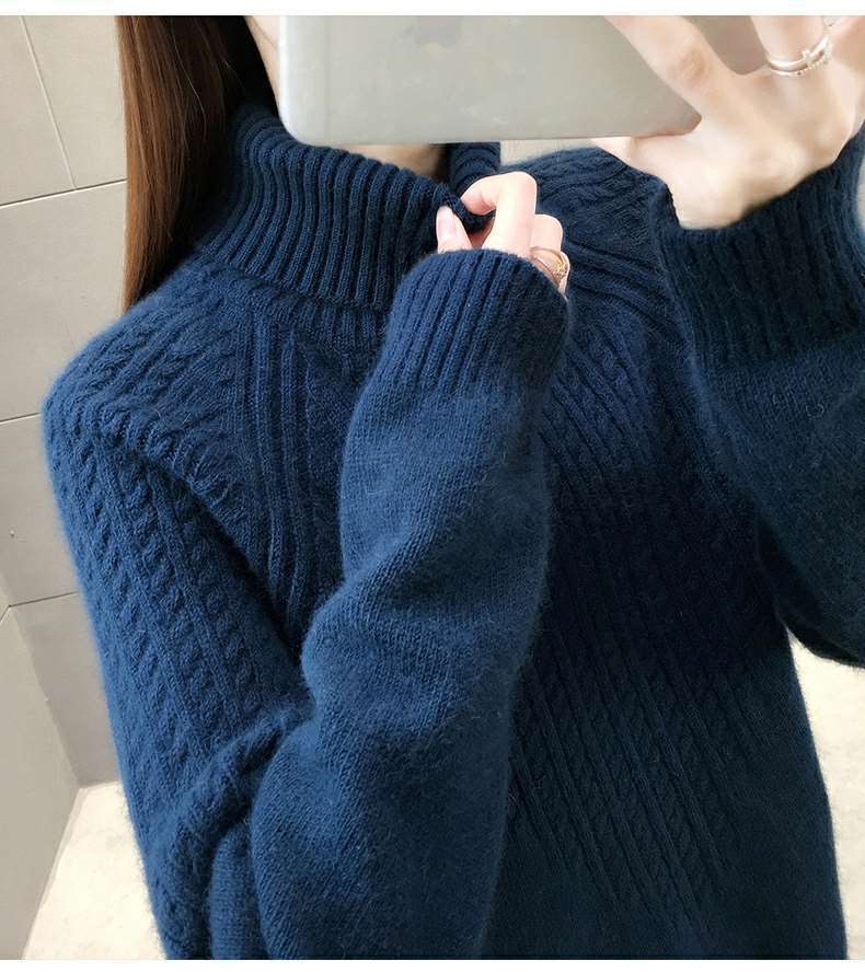 터틀넥 풀오버 스웨터 여성의 느슨한 게으른 스타일 가을과 겨울 여성의 긴 소매 단색 두꺼운 니트베이스 셔츠스토어 가기