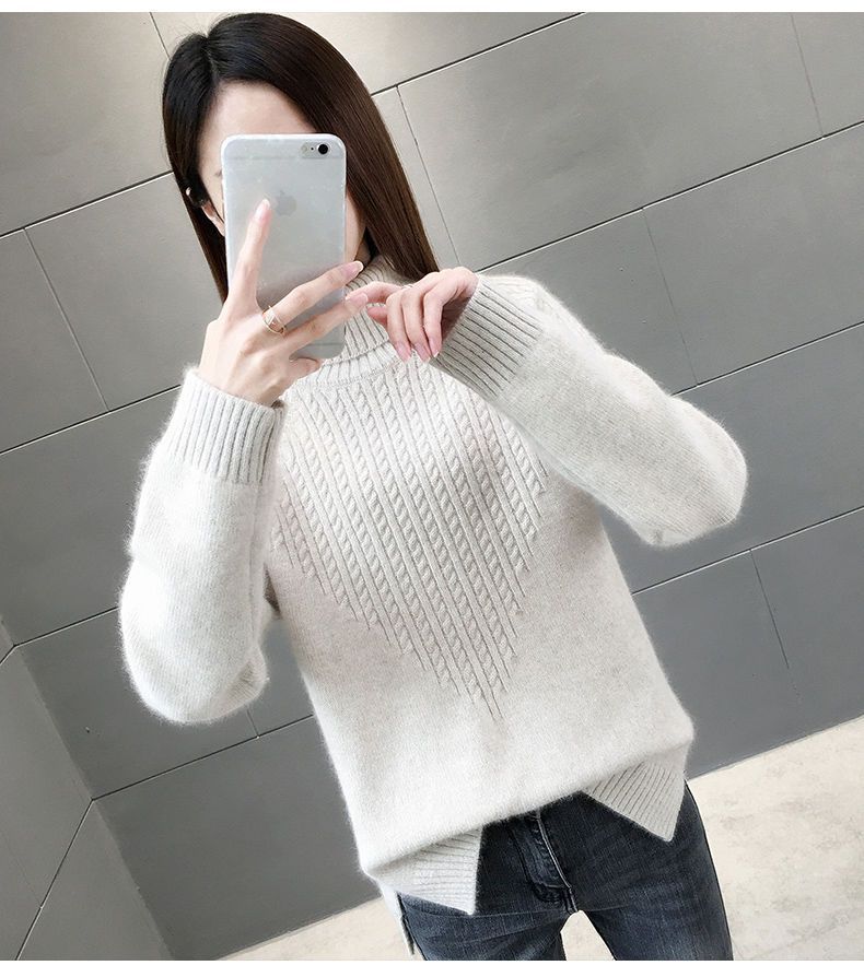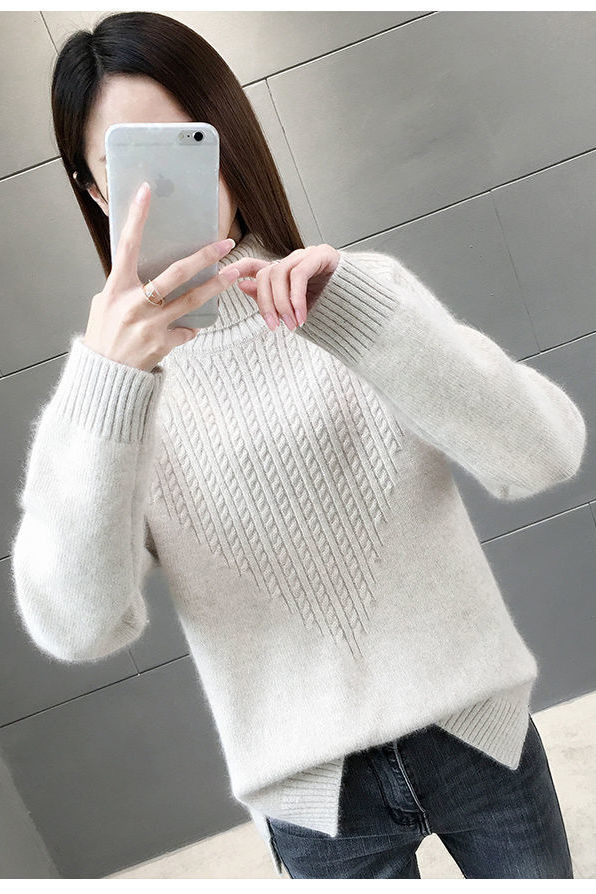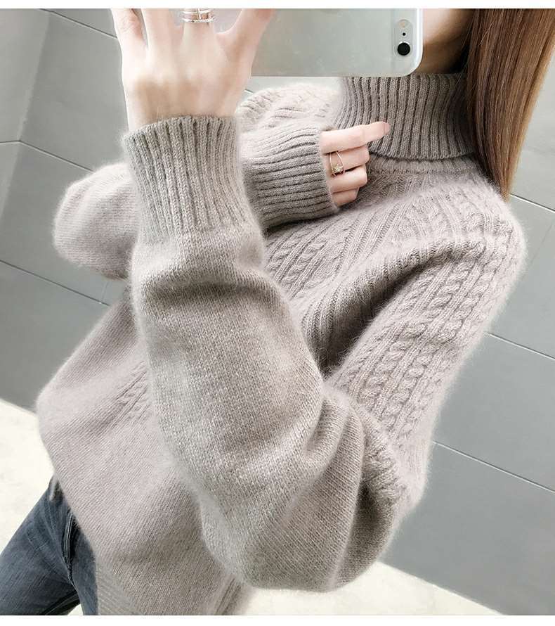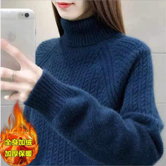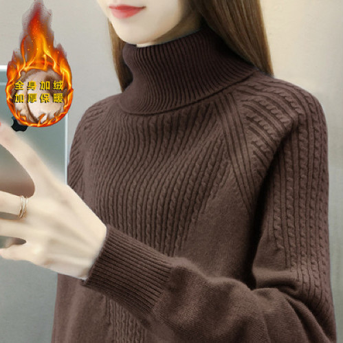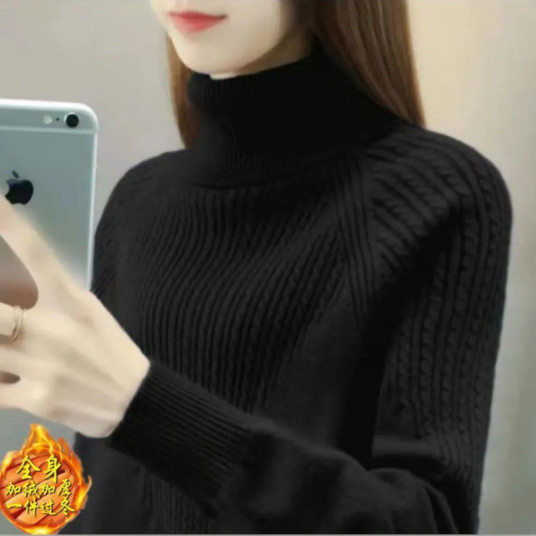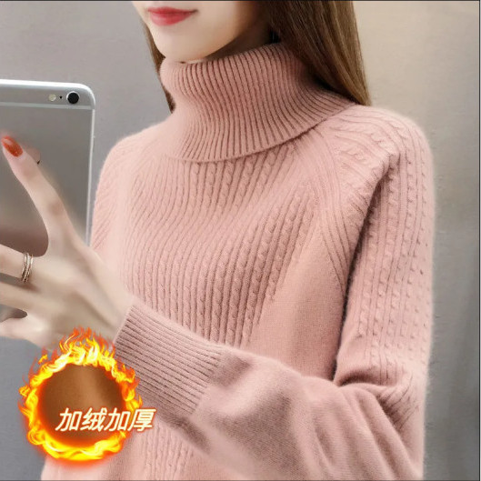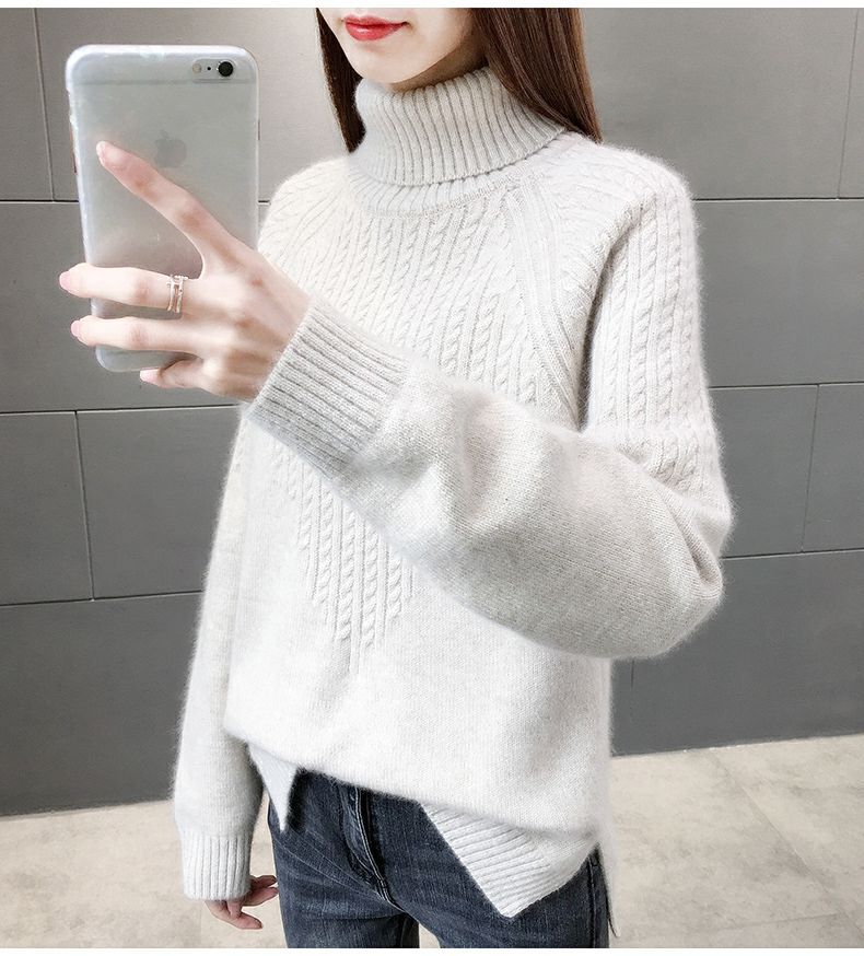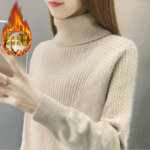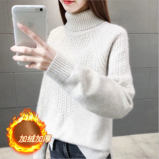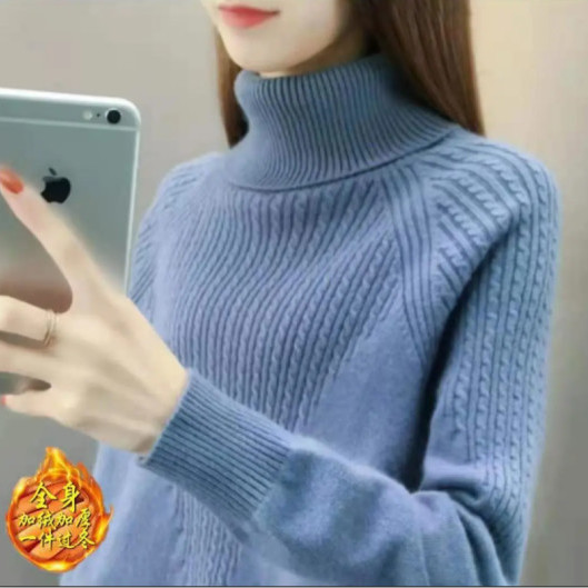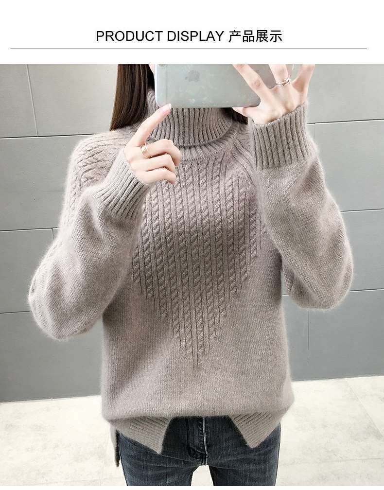 터틀넥 풀오버 스웨터 여성의 느슨한 게으른 스타일 가을과 겨울 여성의 긴 소매 단색 두꺼운 니트베이스 셔츠스토어 가기