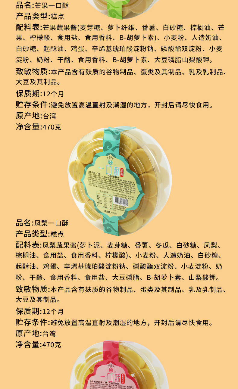 대만 전문 파인애플 케이크 한 입 페이스트리 손 선물 전통 중국 과자 스낵 스낵 수입 과일 케이크스토어 가기